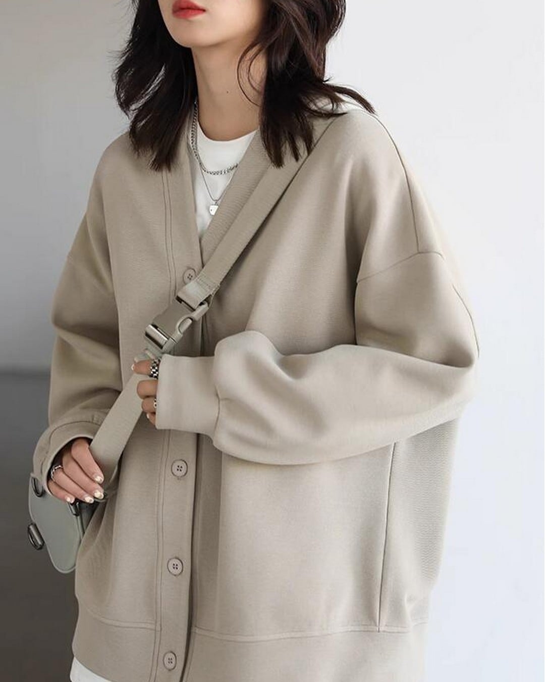 カジュアルルーズ Vネックカーディガン 2color A0213