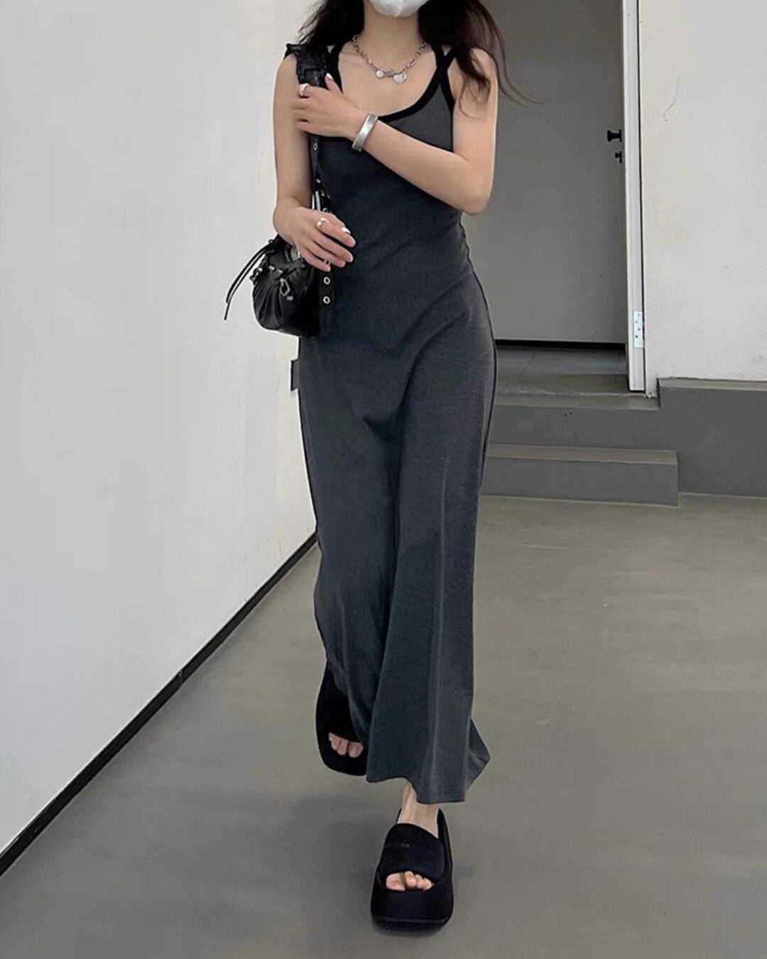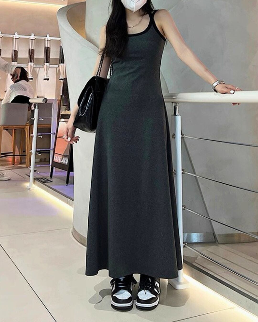 スポーティー&モードな雰囲気のバイカラーロングワンピース。
