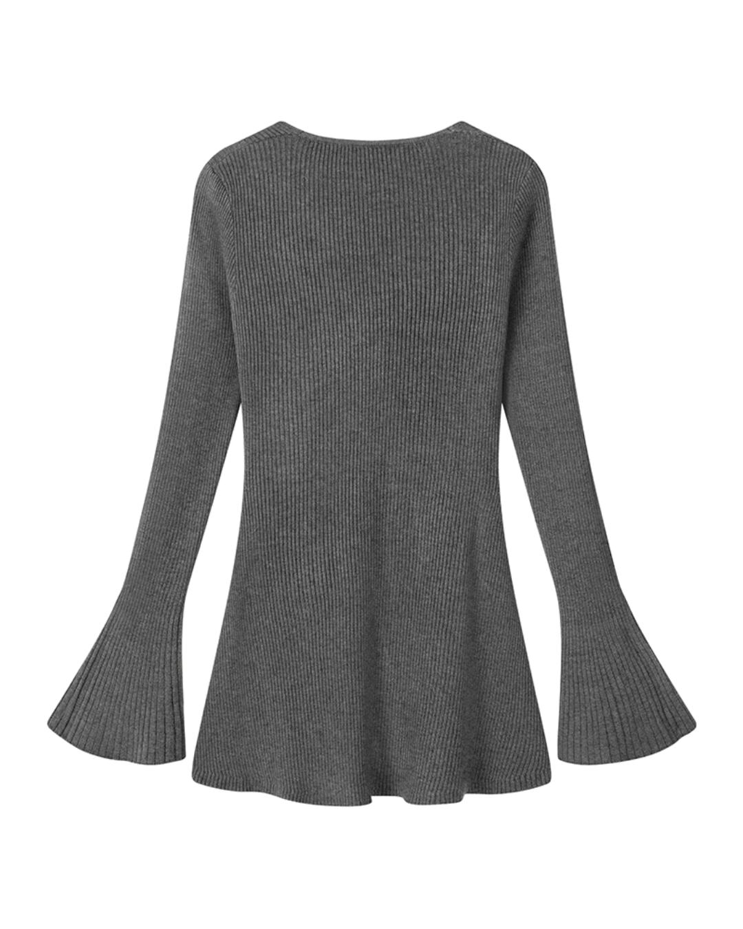 リブ素材のVネックトップスにフレアスリーブをプラスした女性らしい一枚。