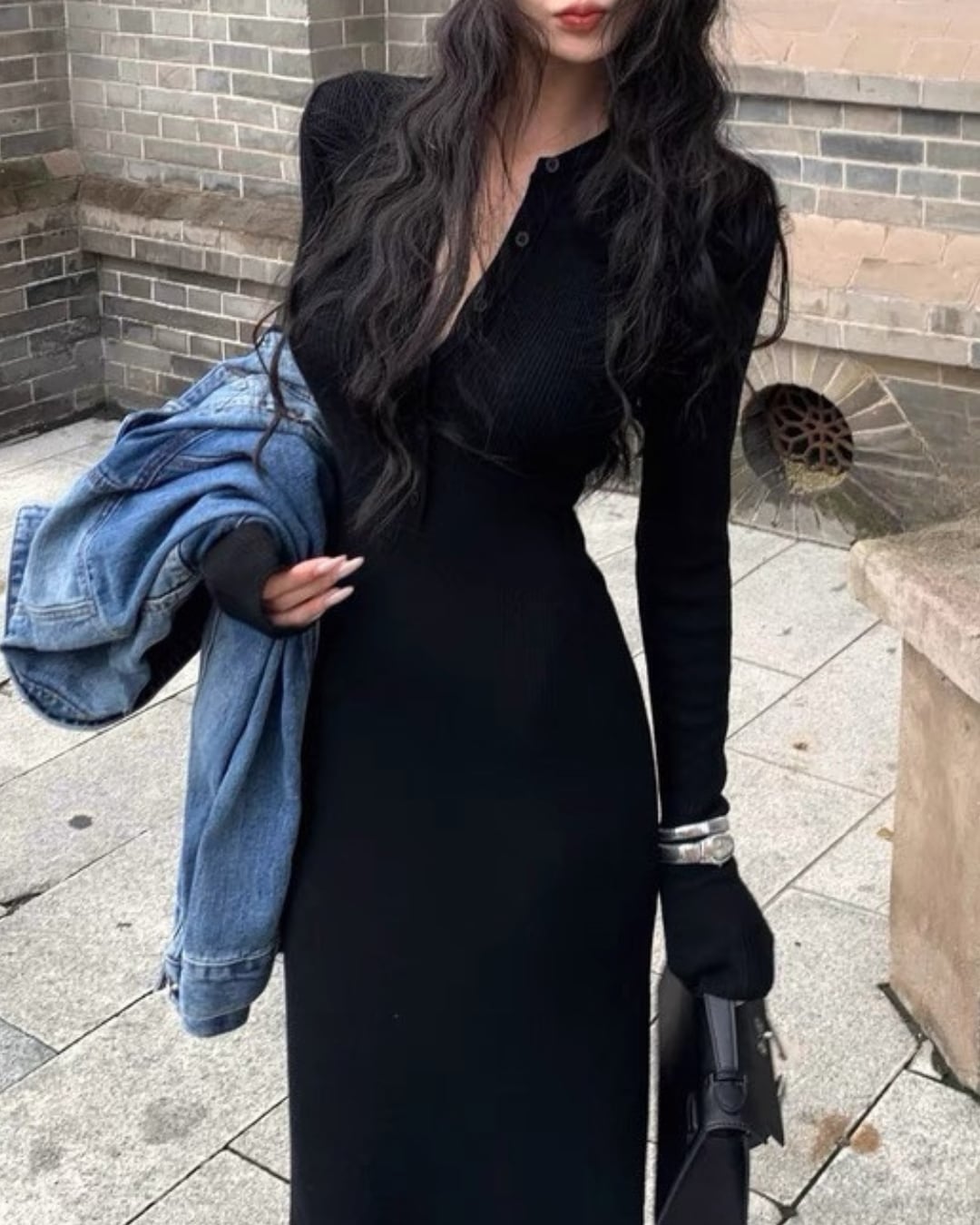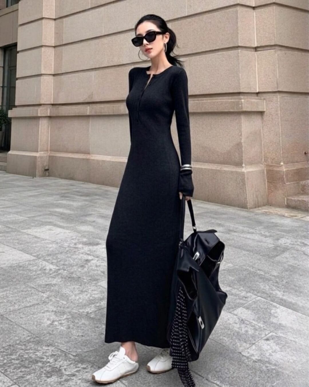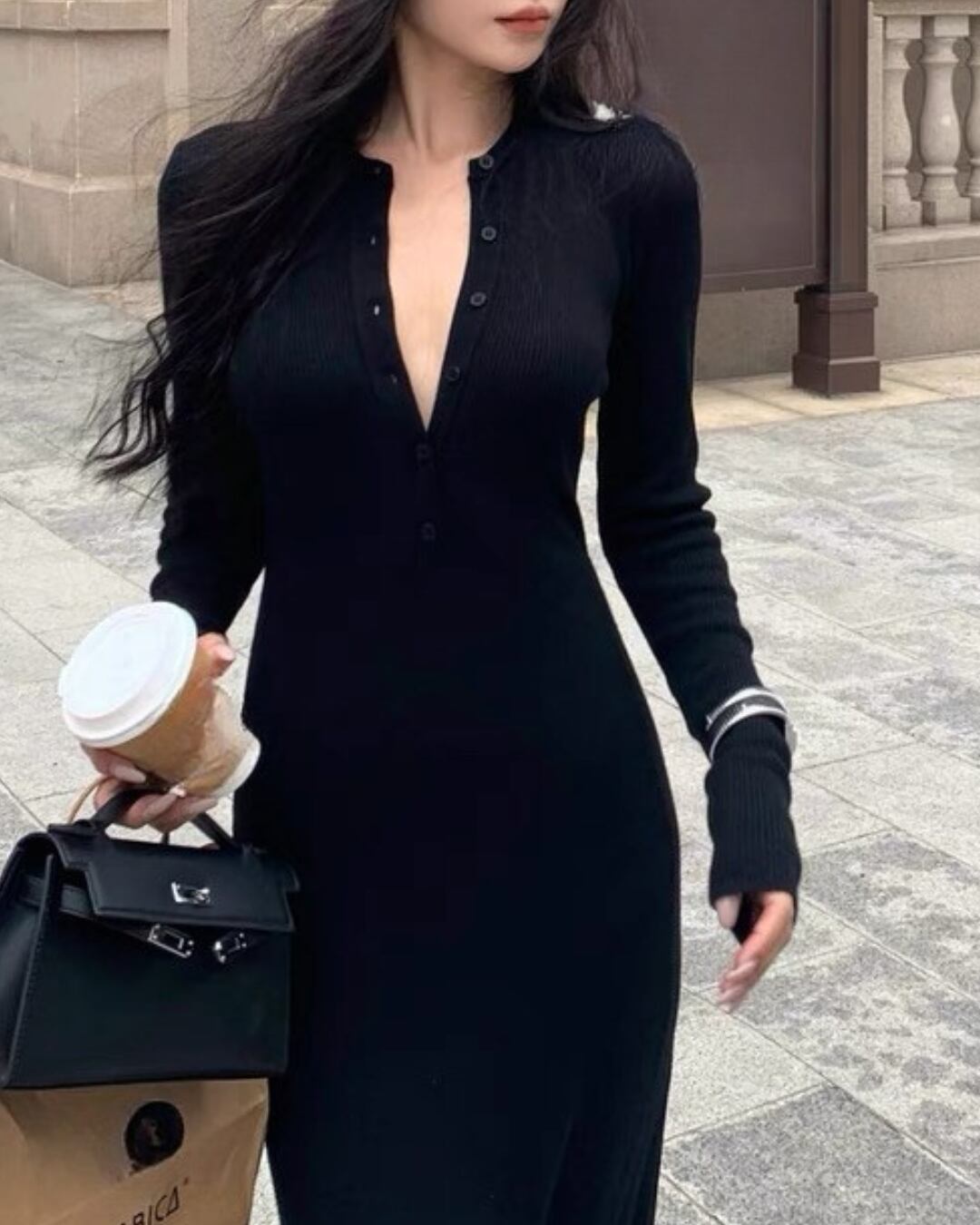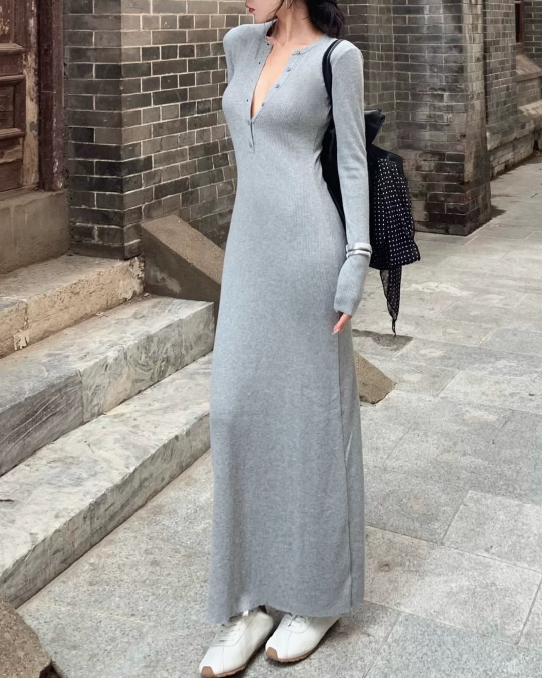 スリムなシルエットがボディラインを美しく見せ、深めのネックデザインが抜け感と色気をプラス。デイリーからお出かけまで幅広く活躍します。