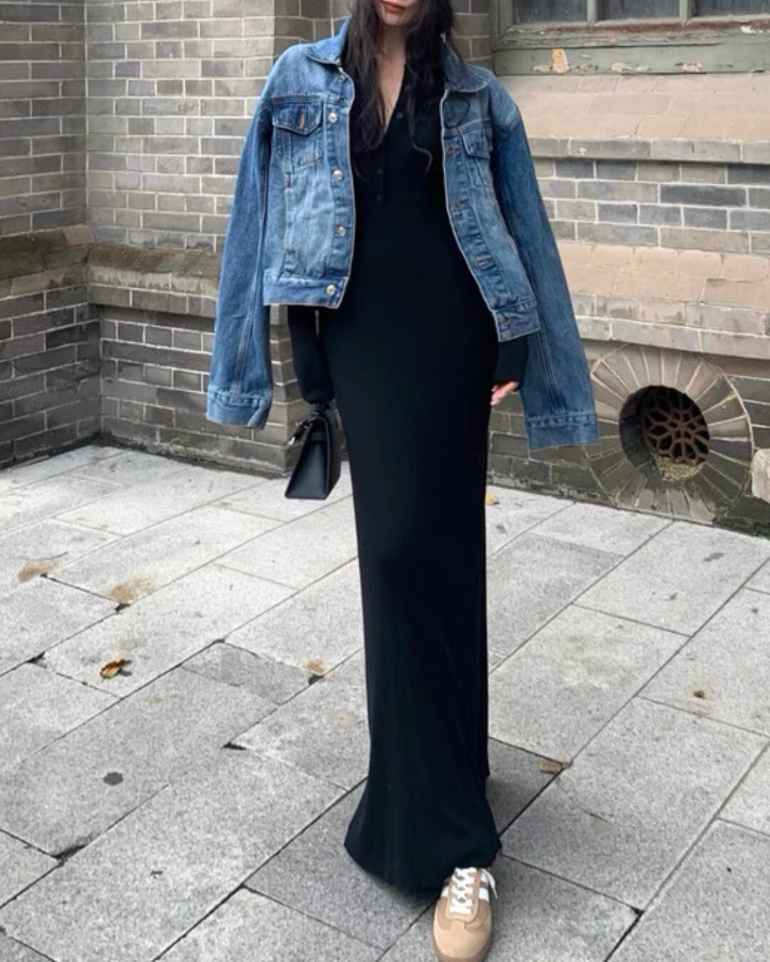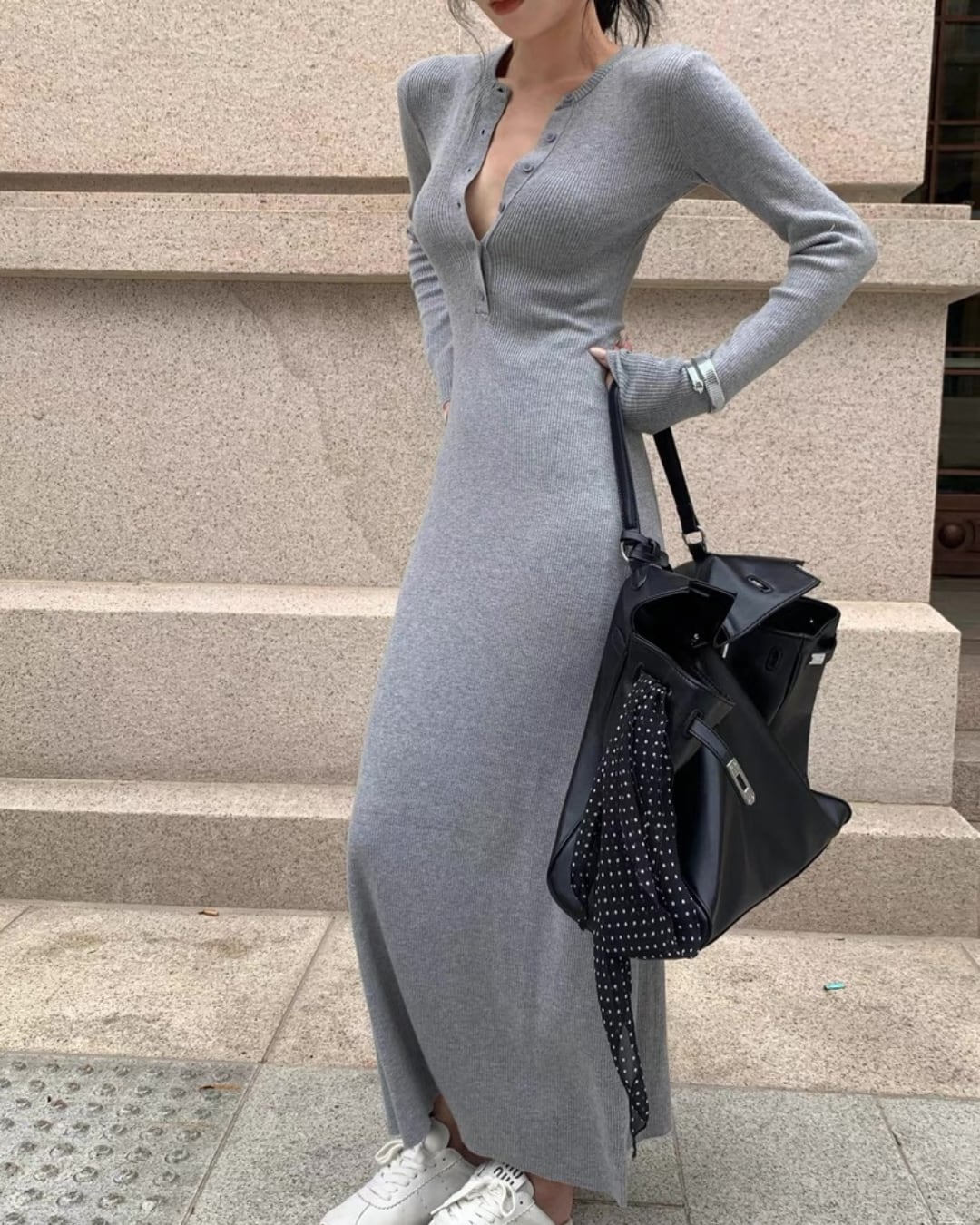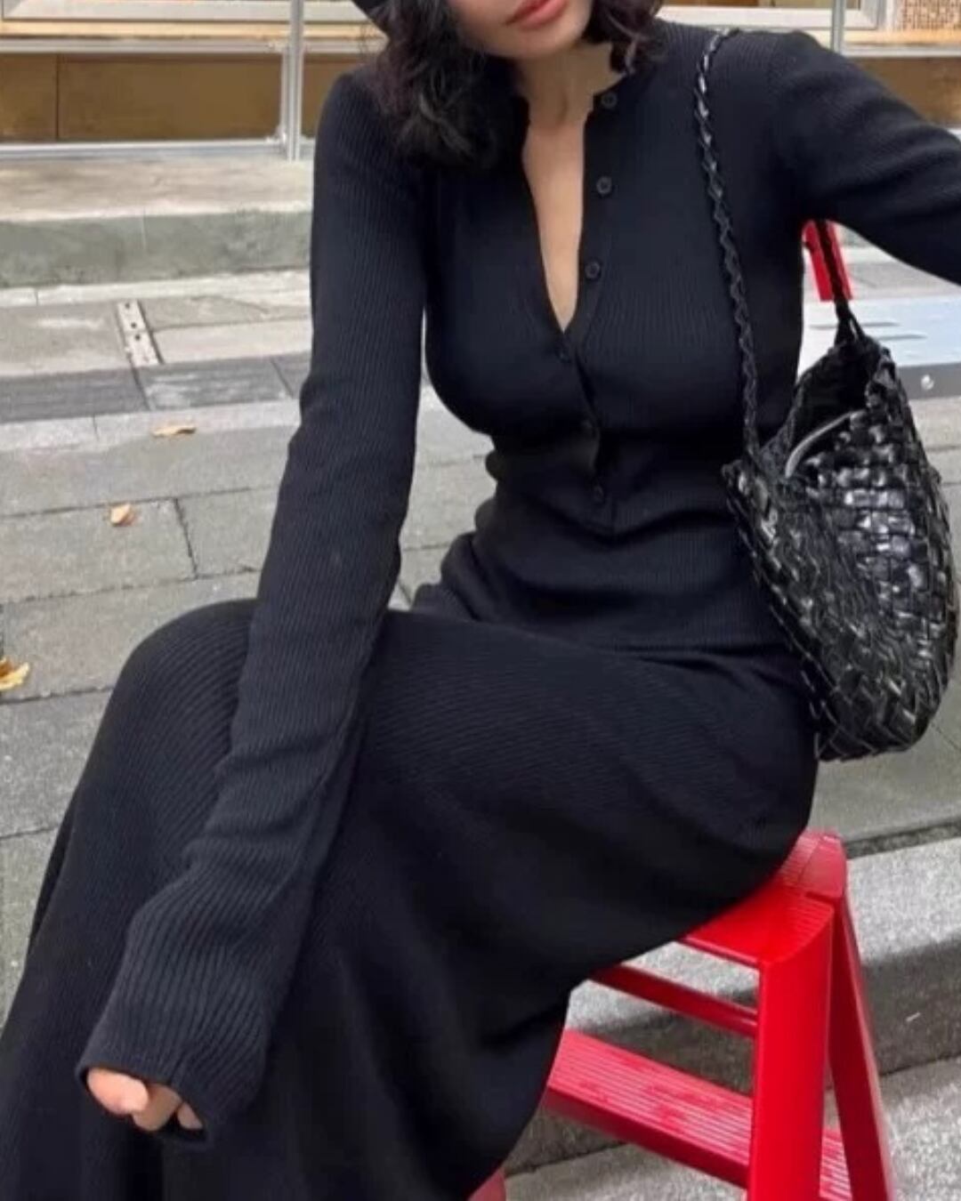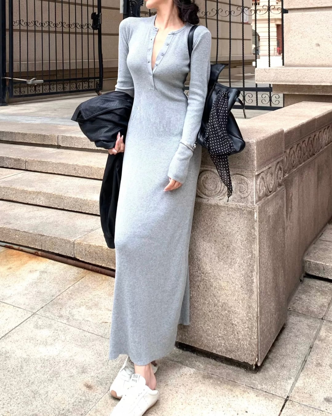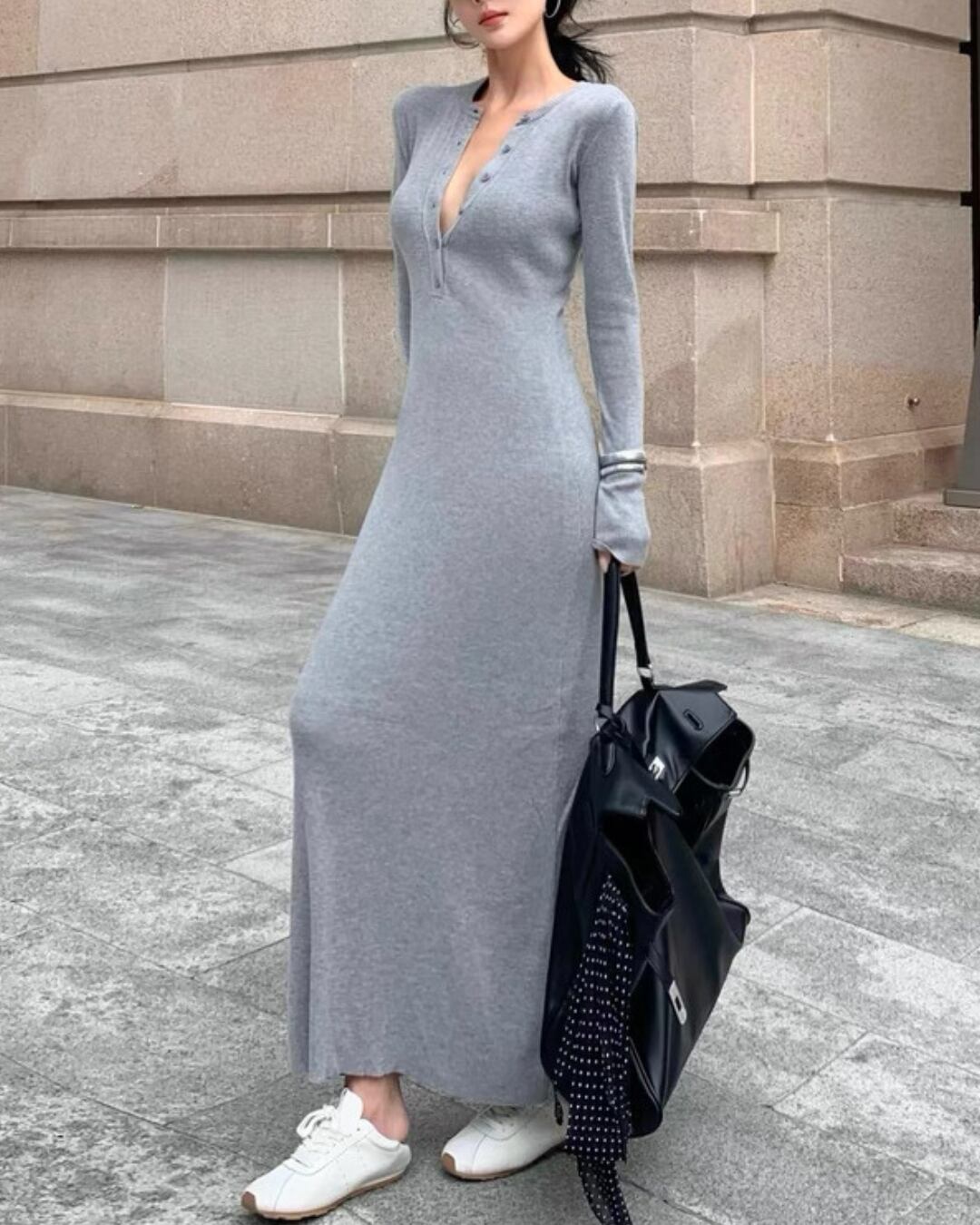 スリムなシルエットがボディラインを美しく見せ、深めのネックデザインが抜け感と色気をプラス。デイリーからお出かけまで幅広く活躍します。