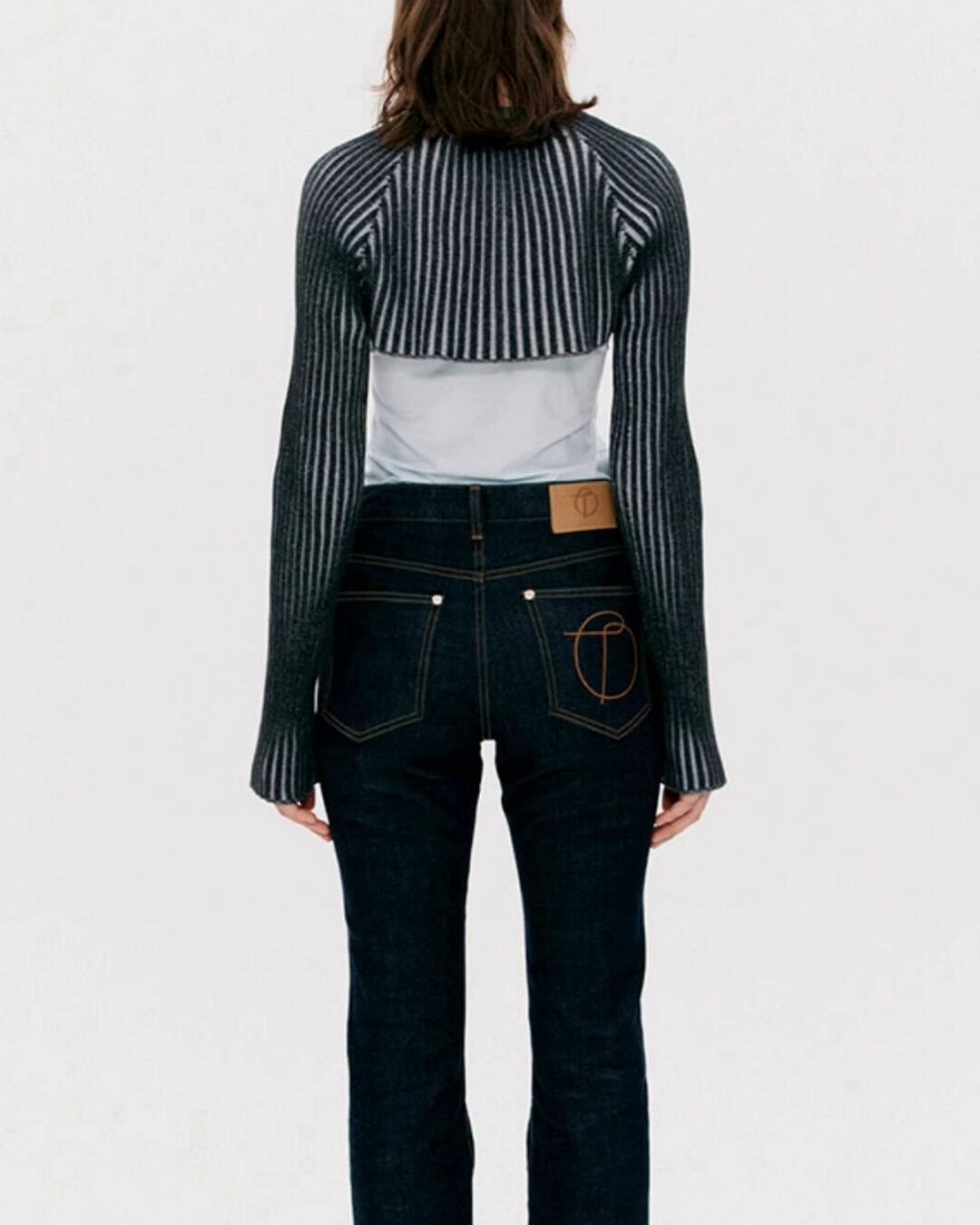 デコルテを美しく見せるスクエアネックデザインのタイトニット。