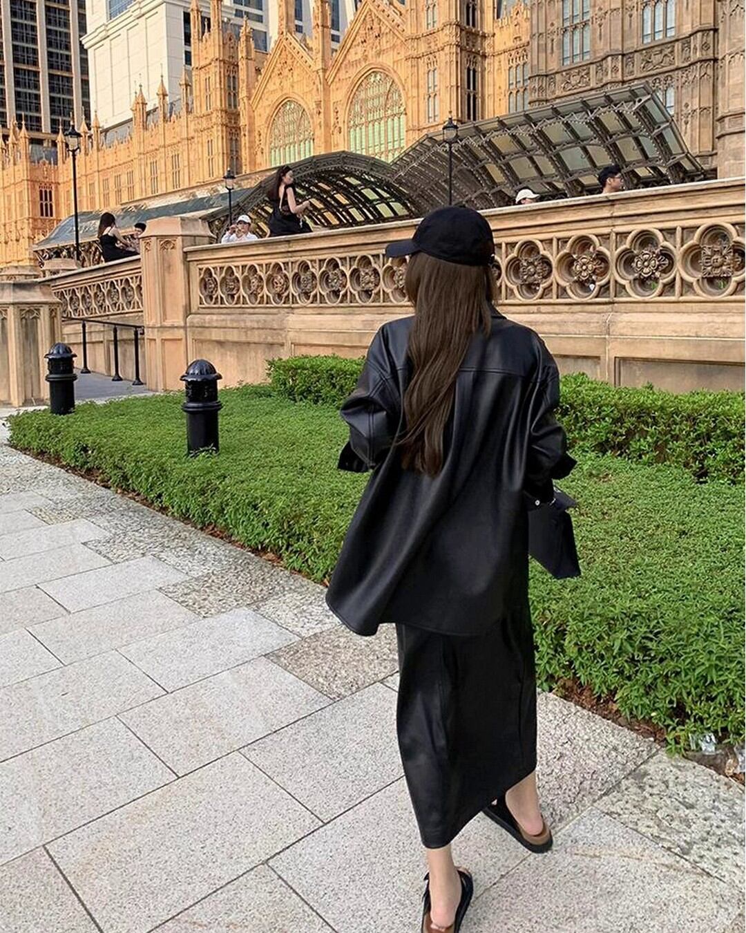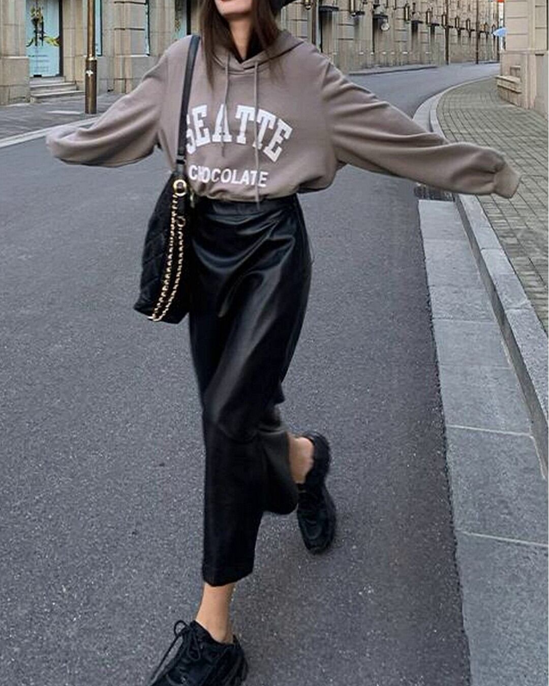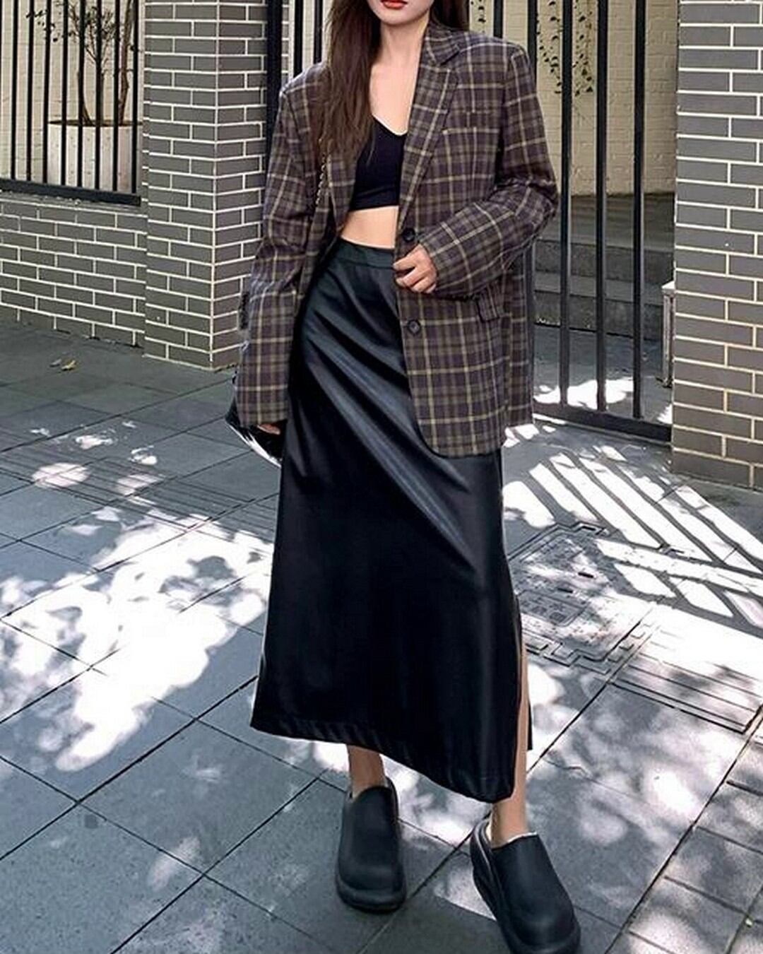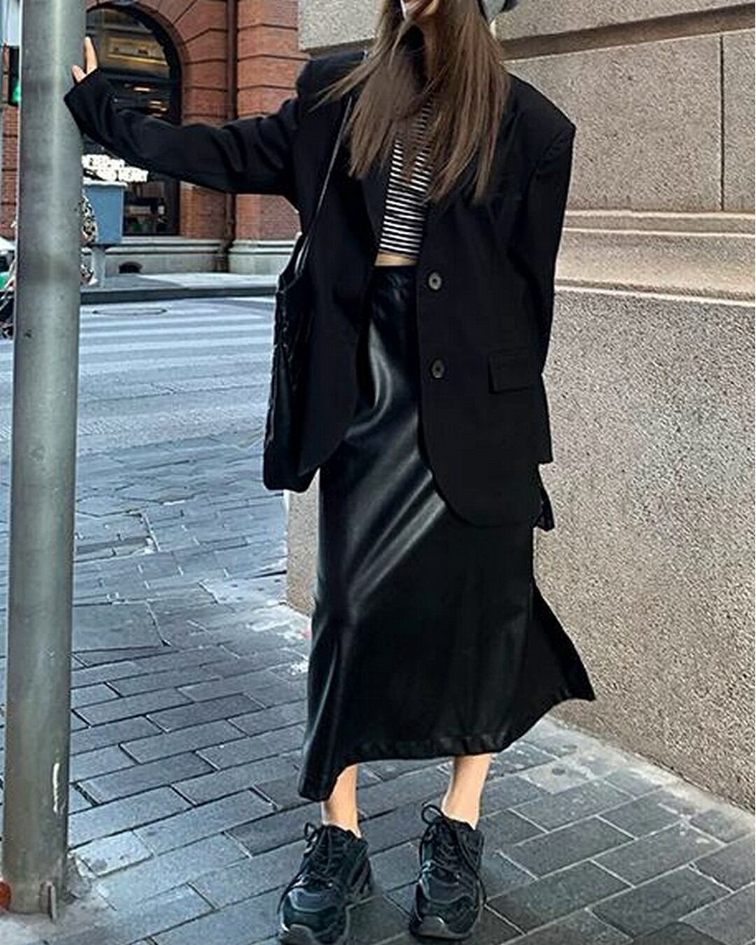 ハイウエストデザインがスタイルアップを叶えるPUレザースカート。