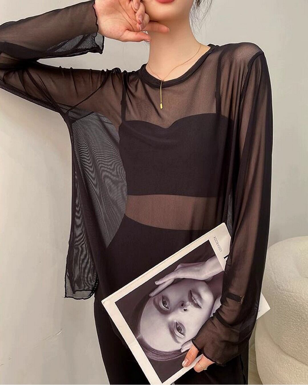 透け感のあるシアーメッシュが魅力のロングスリーブTです。