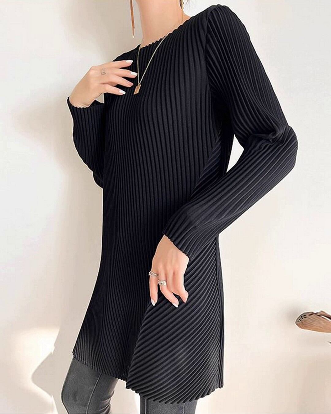 すっきりとしたシルエットで体のラインを拾いすぎず、スマートに着こなせます。