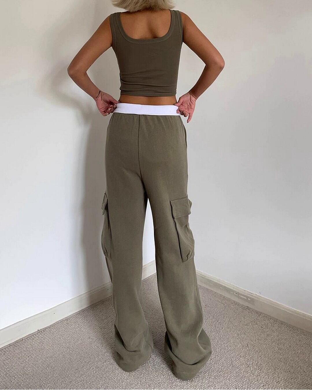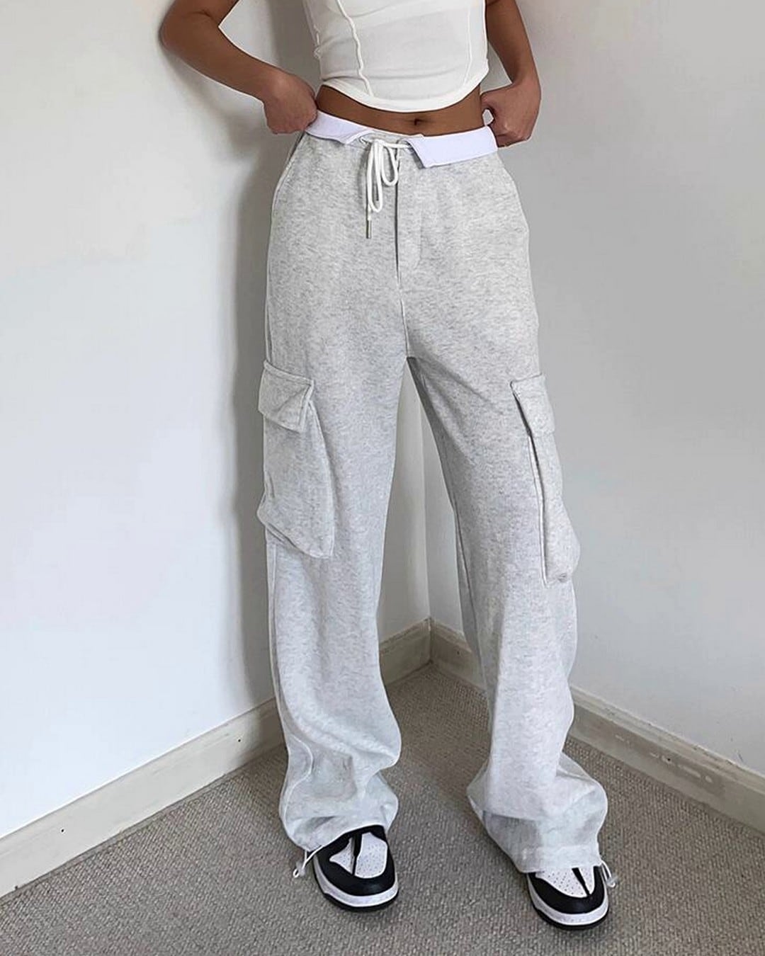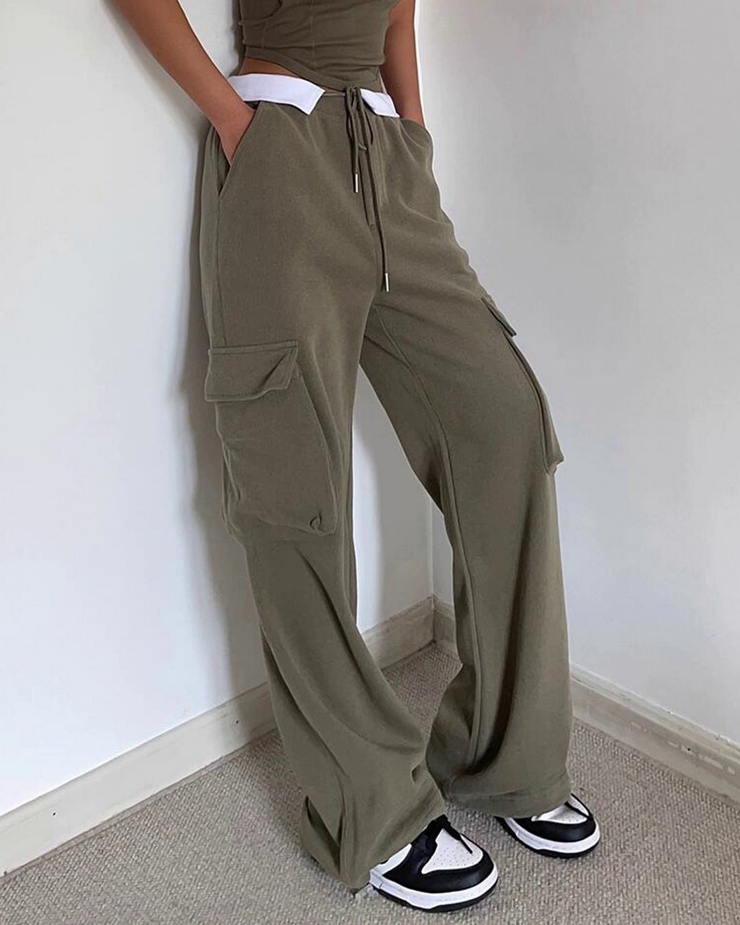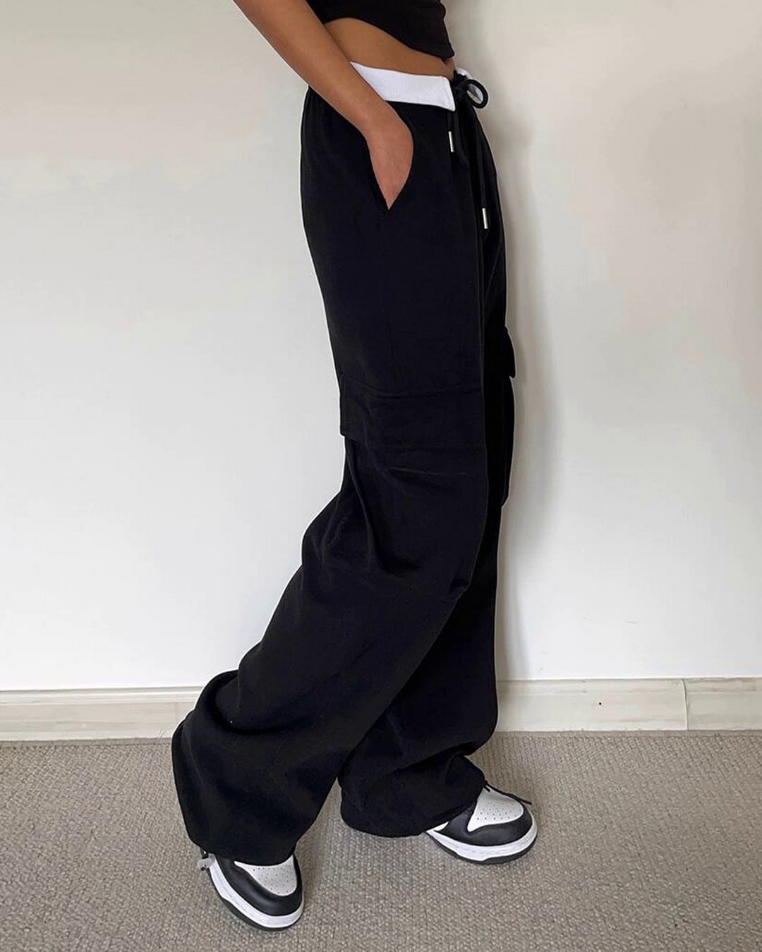 裾のストリングでシルエットを調整できるワイドカーゴパンツ。