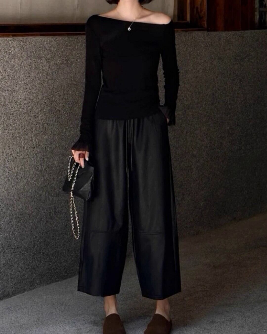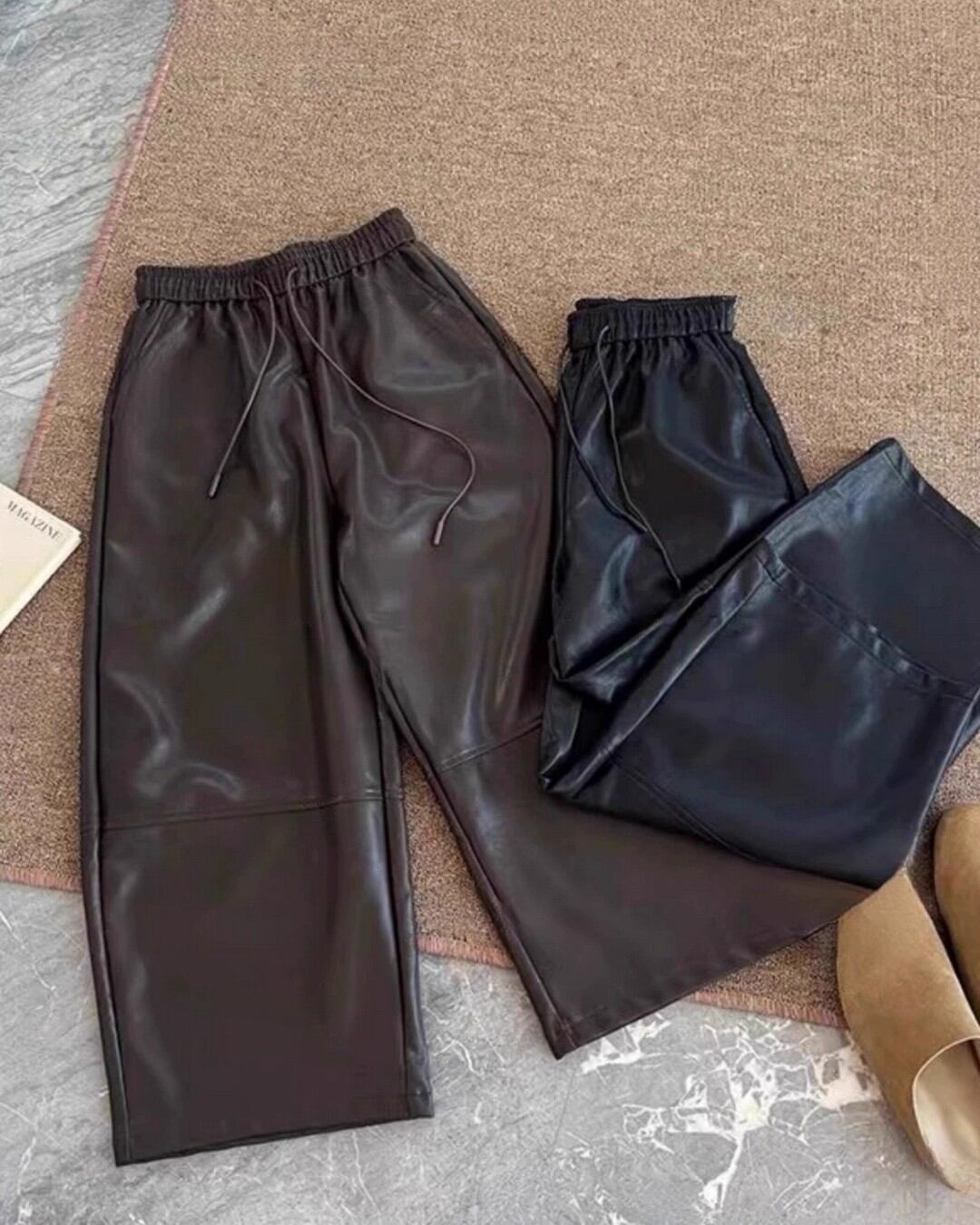 ハイウエストフェイクレザーワイドパンツ 2color A0591