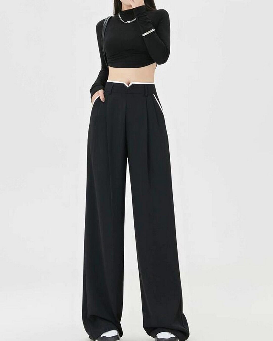 モードな雰囲気を演出するワイドレッグスーツパンツ。