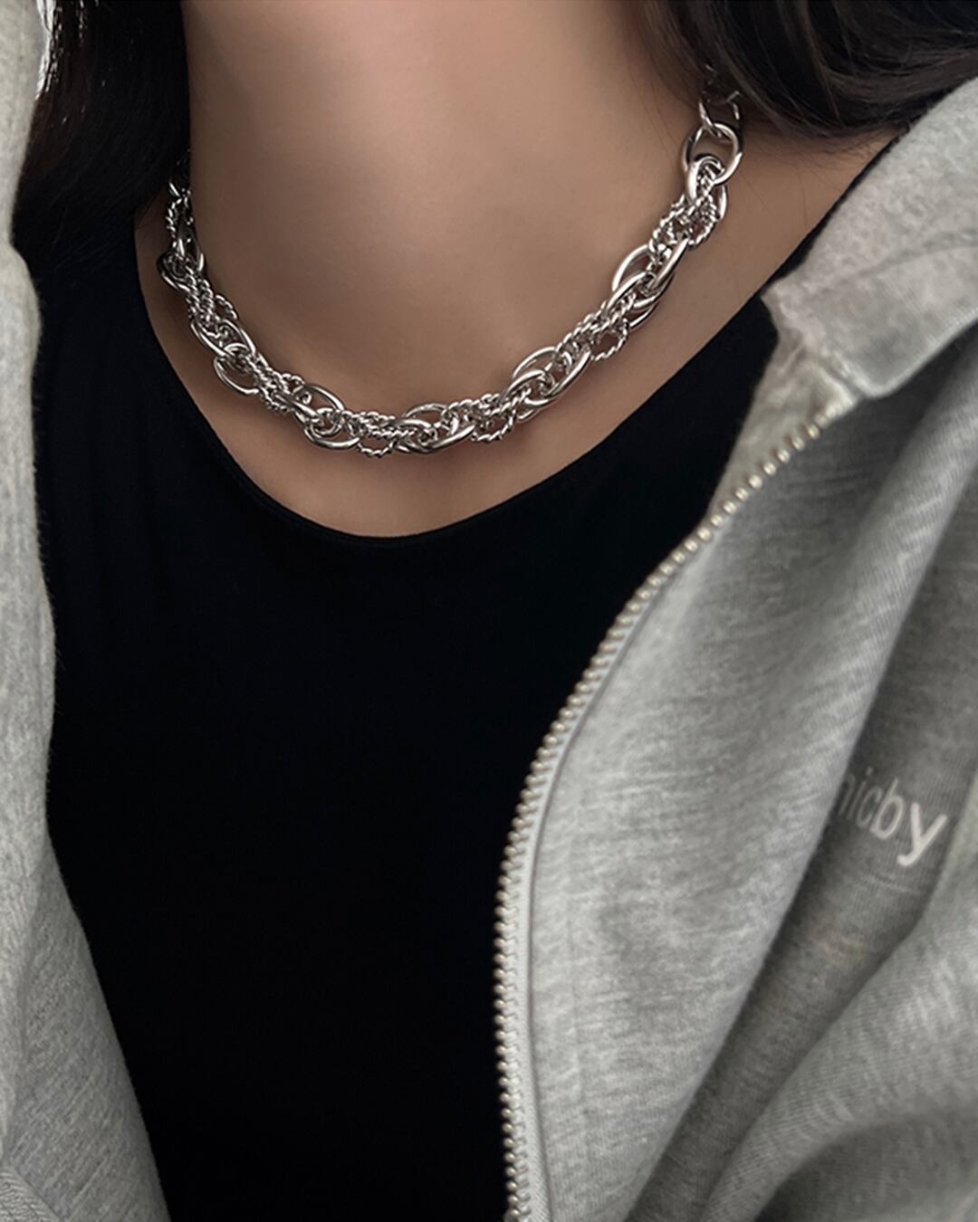 スパイラル状に編み込まれたチェーンが印象的なシルバーネックレスです。