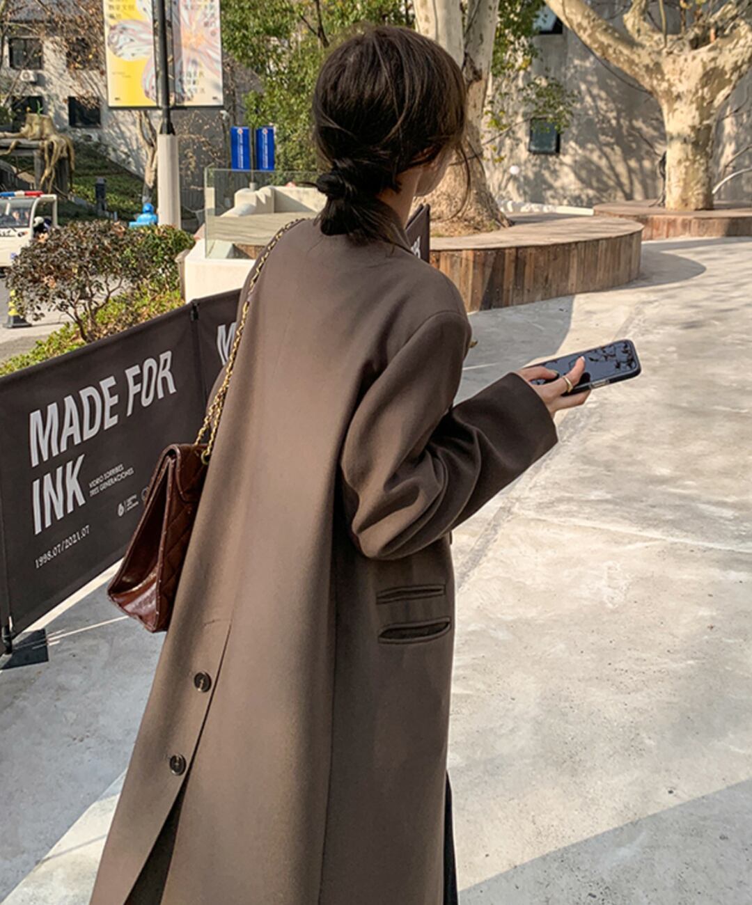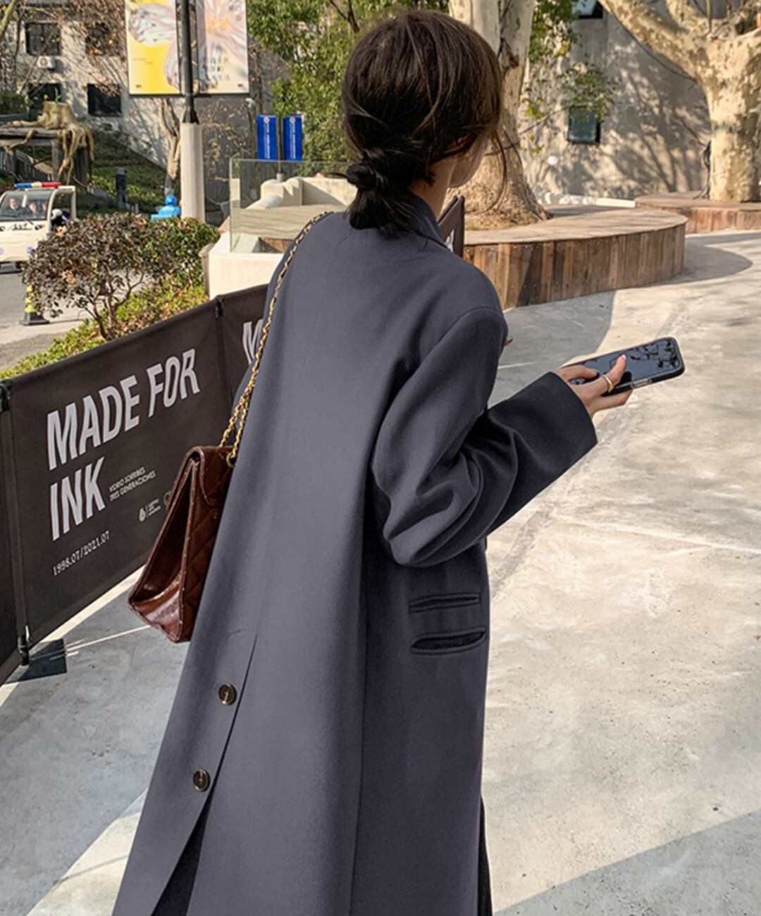 落ち感のあるロングシルエットが魅力のジャケットコートです。