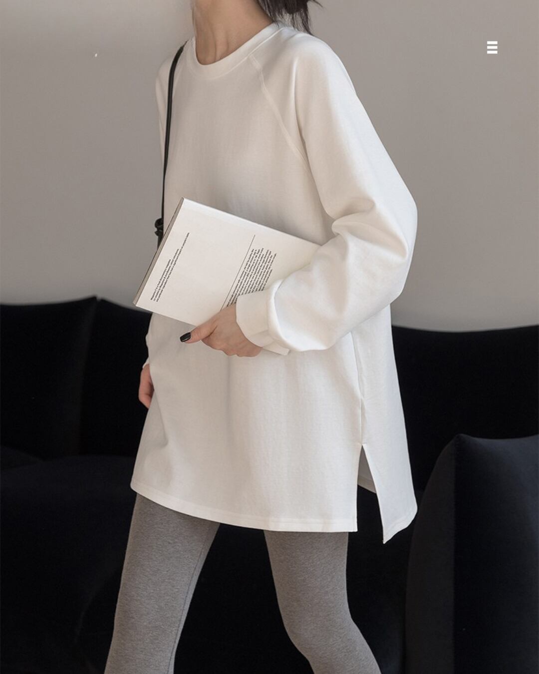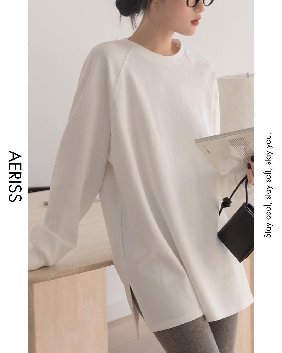 ミニマルでクリーンな印象のオーバーサイズスウェット。