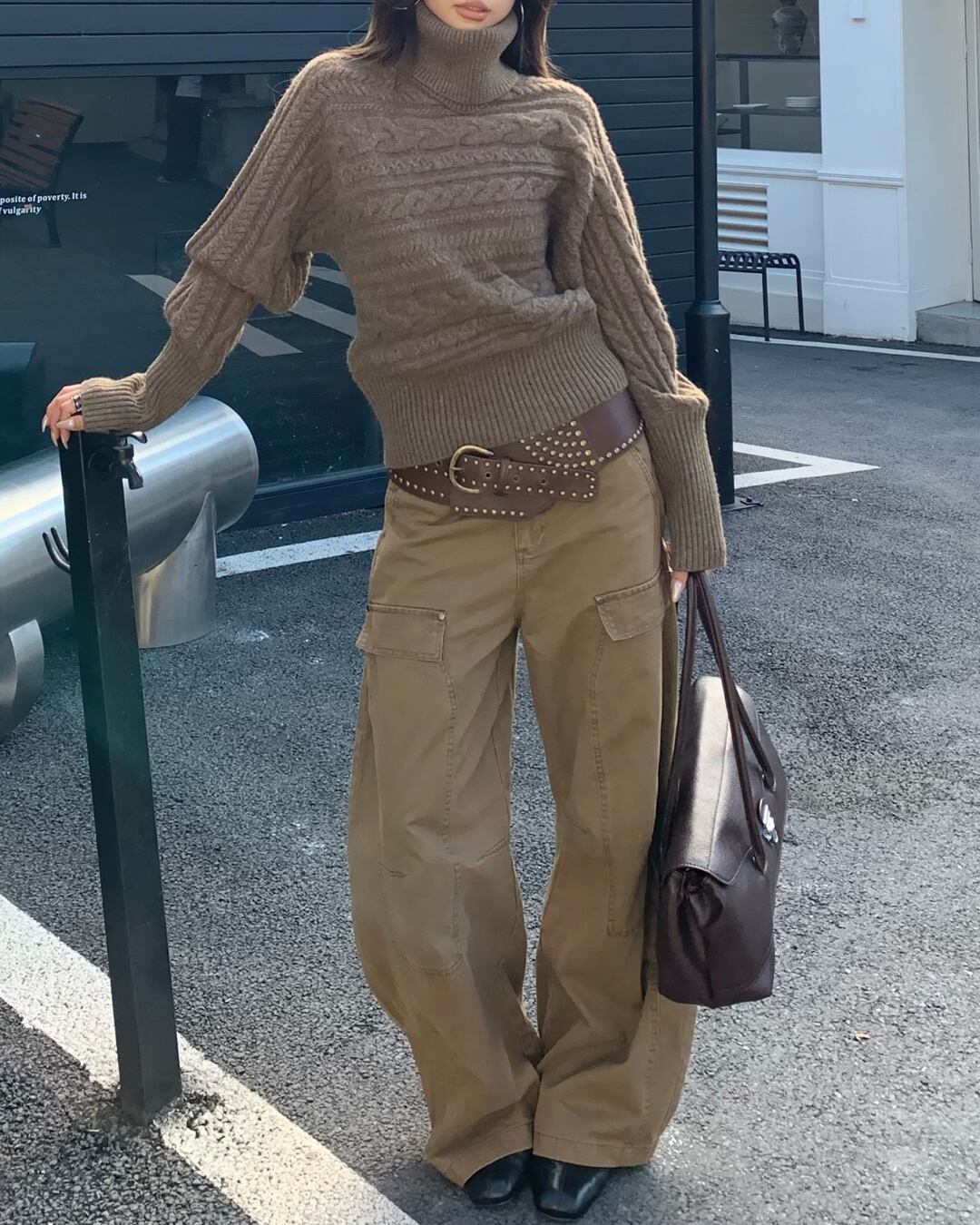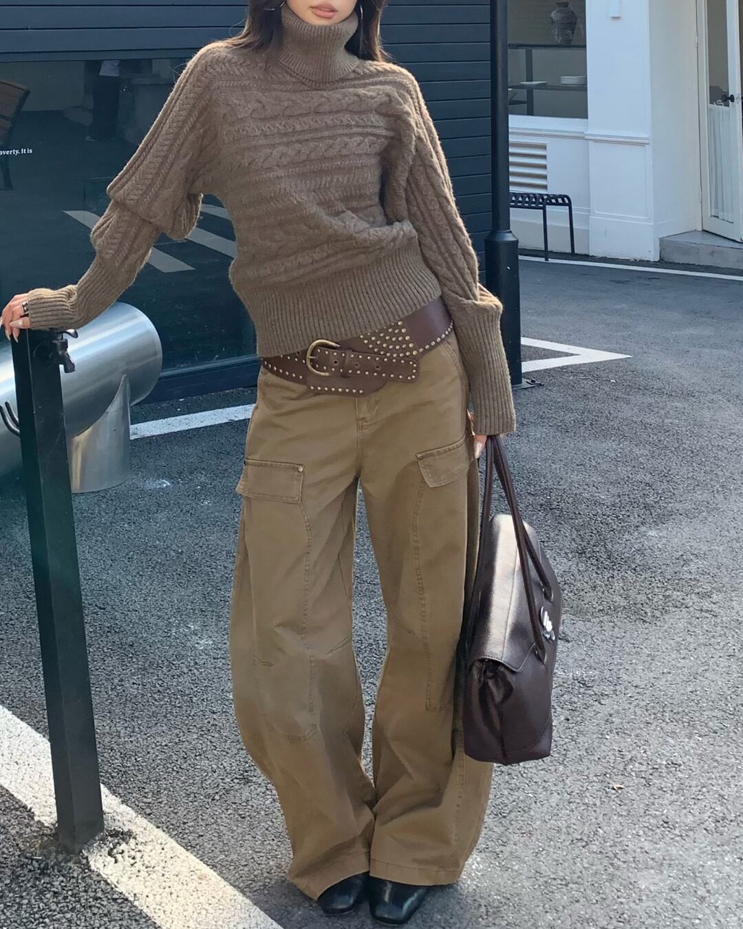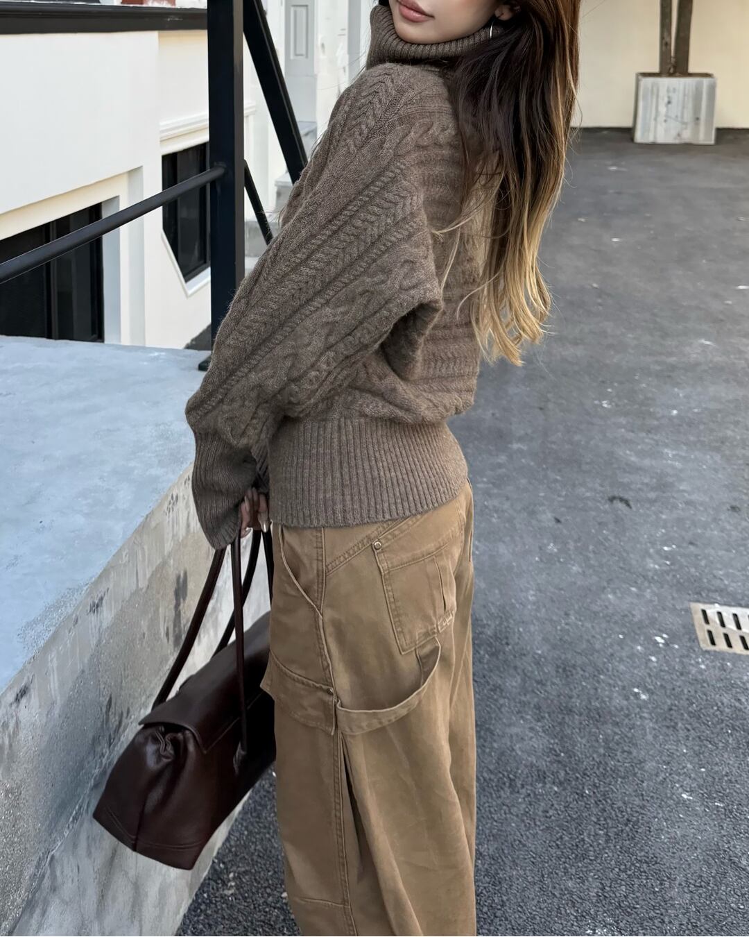 暖かみのあるケーブル編みが魅力のニット。