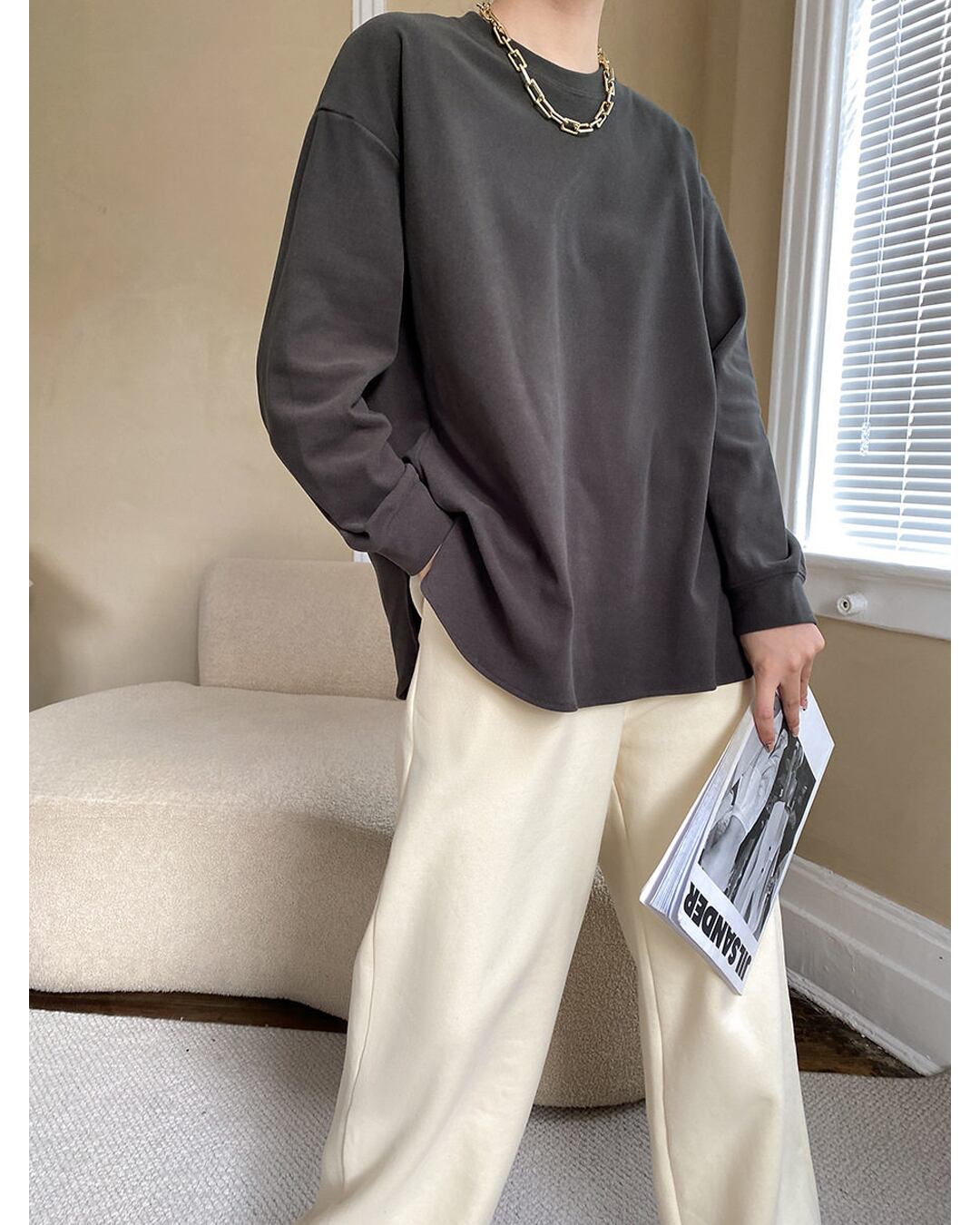 ゆったりとしたオーバーサイズで、リラックスした着心地を提供します。