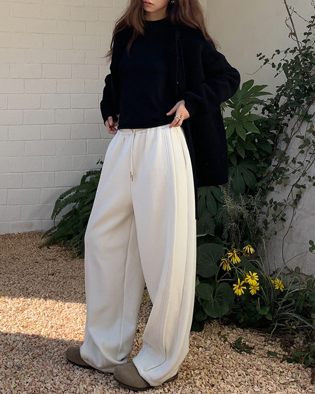 ゆったりとしたシルエットでリラックス感漂う丈長スウェットパンツ。