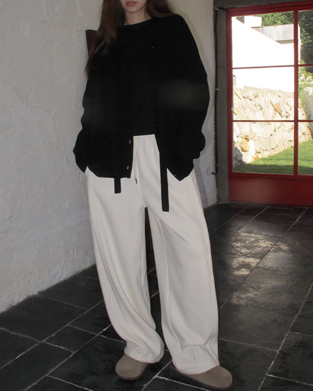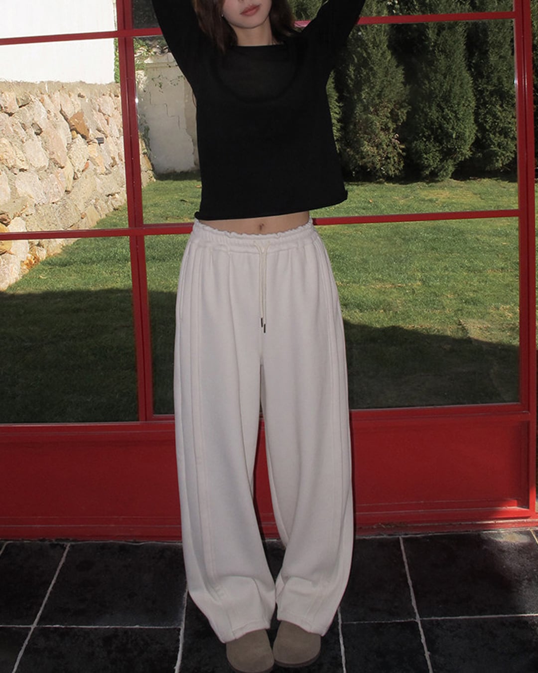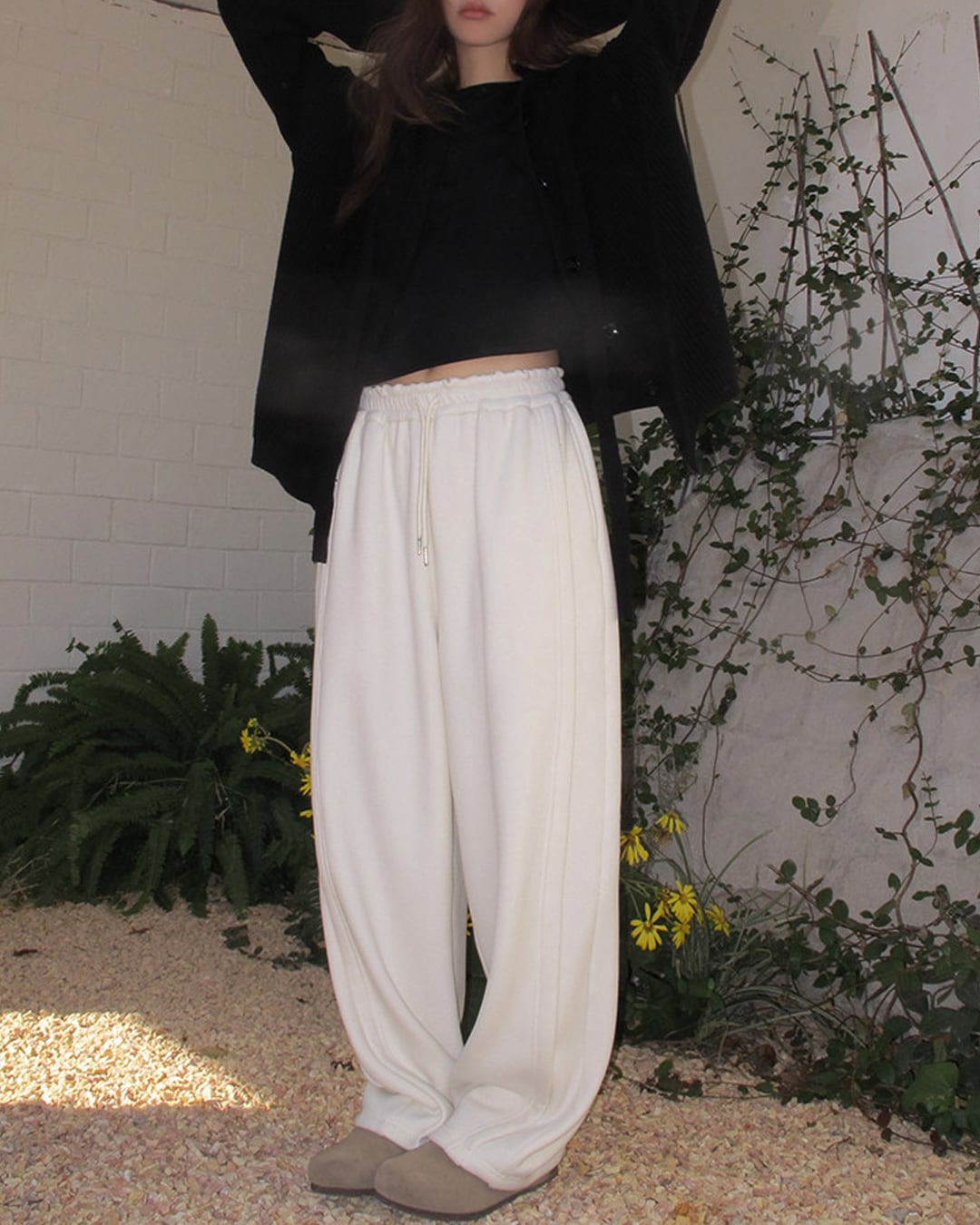 ウエストはドローストリング仕様で、お好みのフィット感に調整可能です。