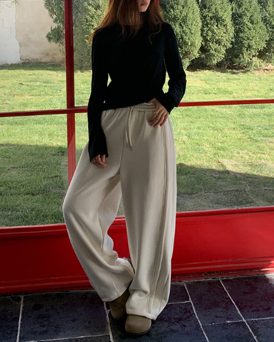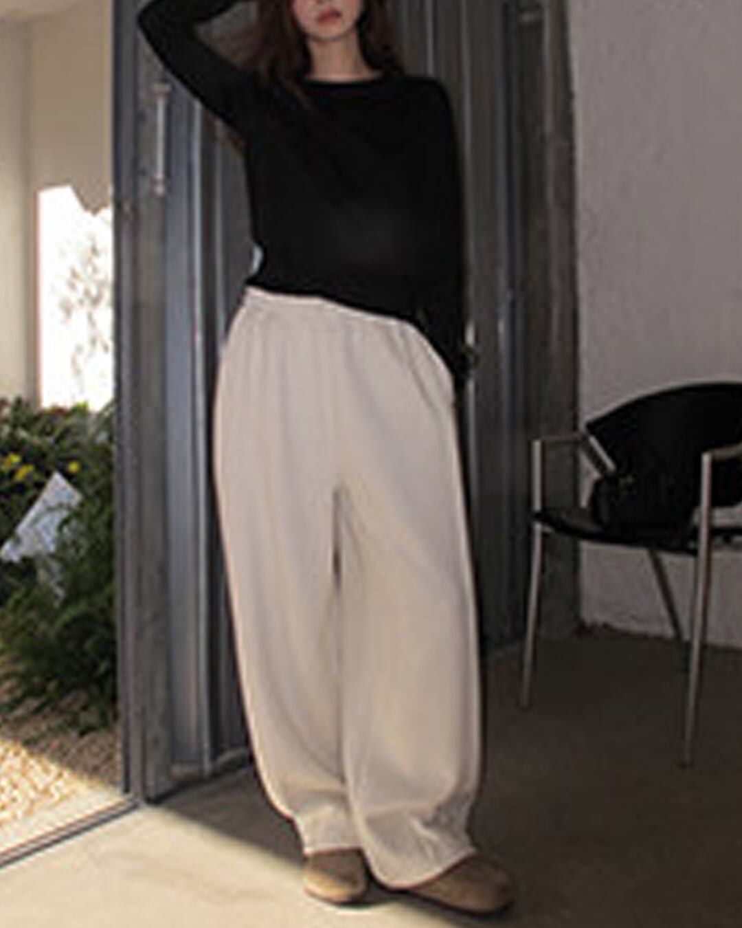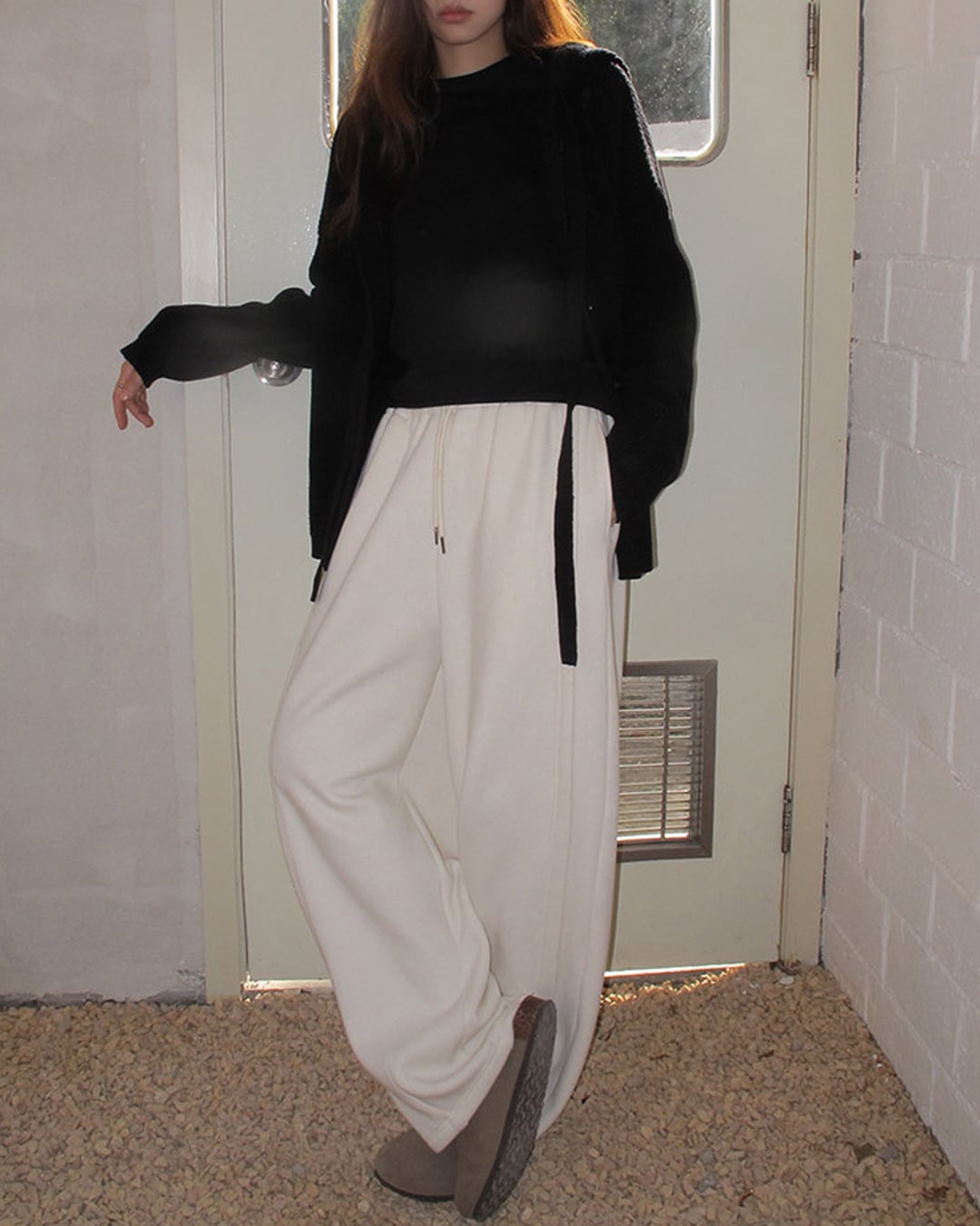 ウエストはドローストリング仕様で、お好みのフィット感に調整可能です。