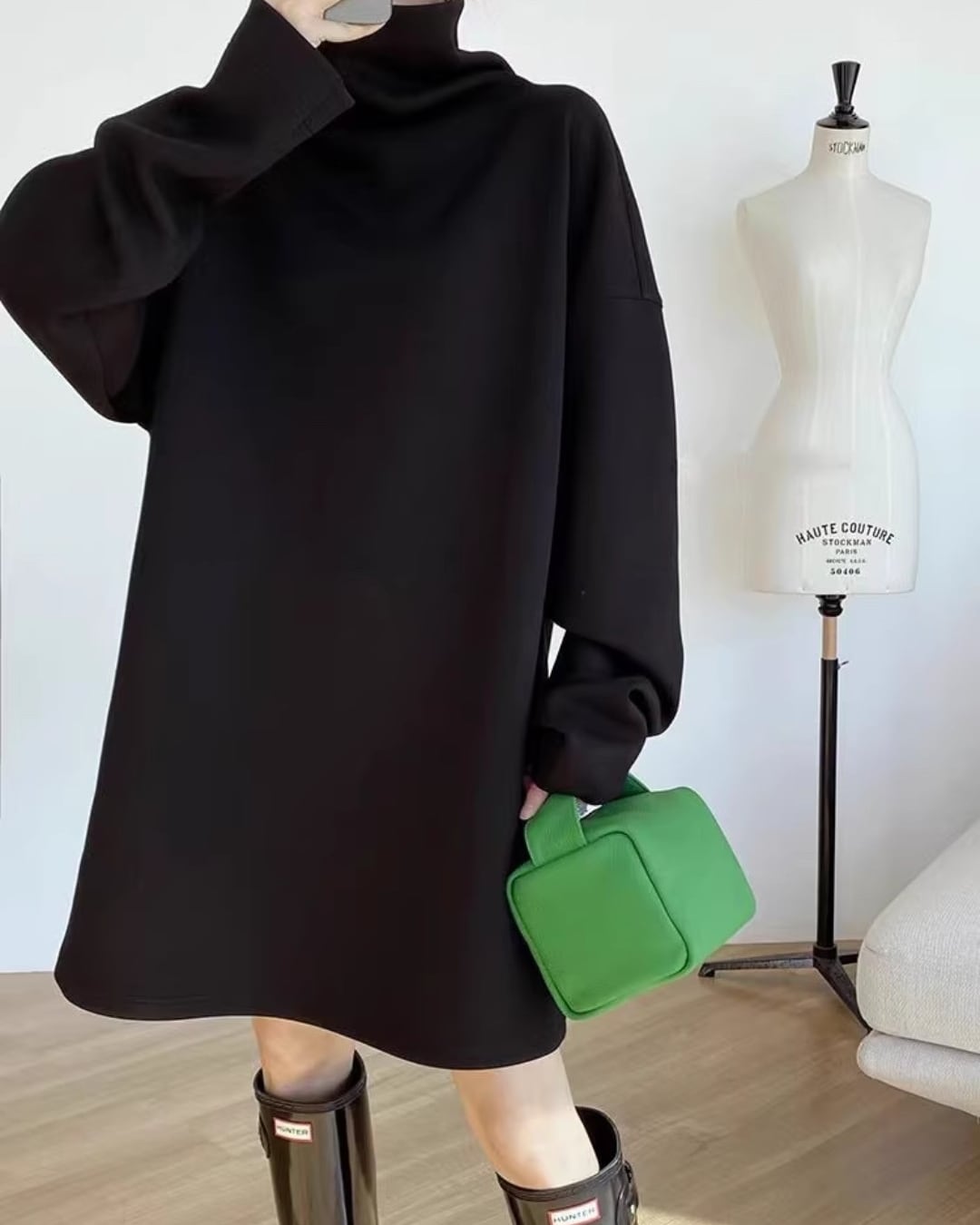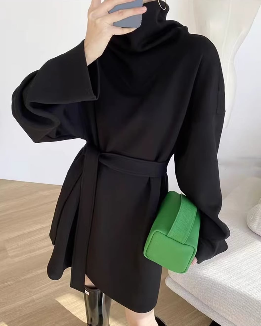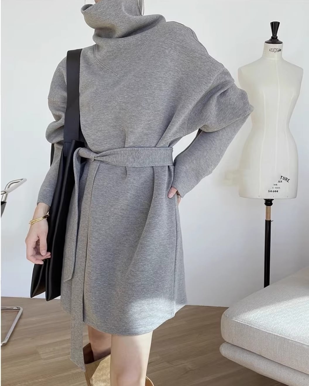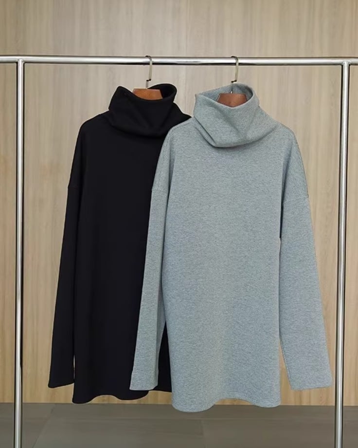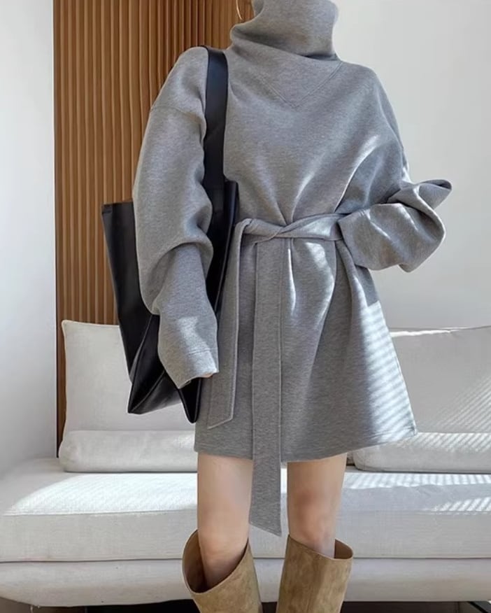 ハイネックが首元を優しく包み込み、暖かさと上品さをプラスします。