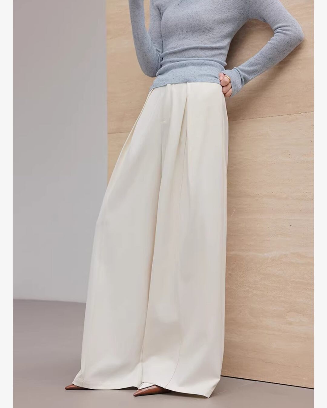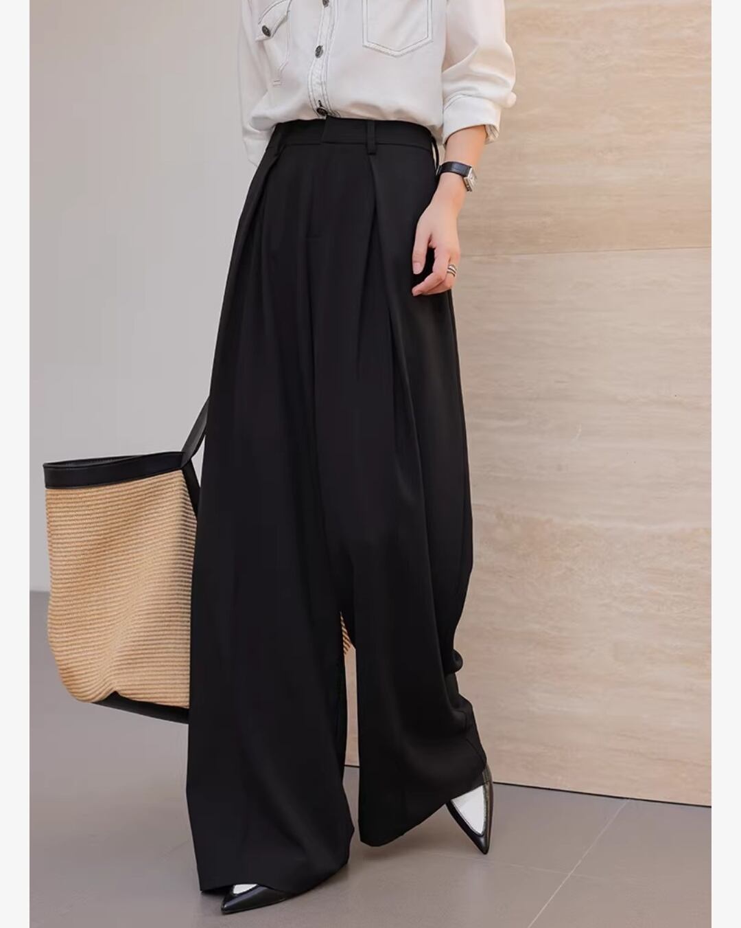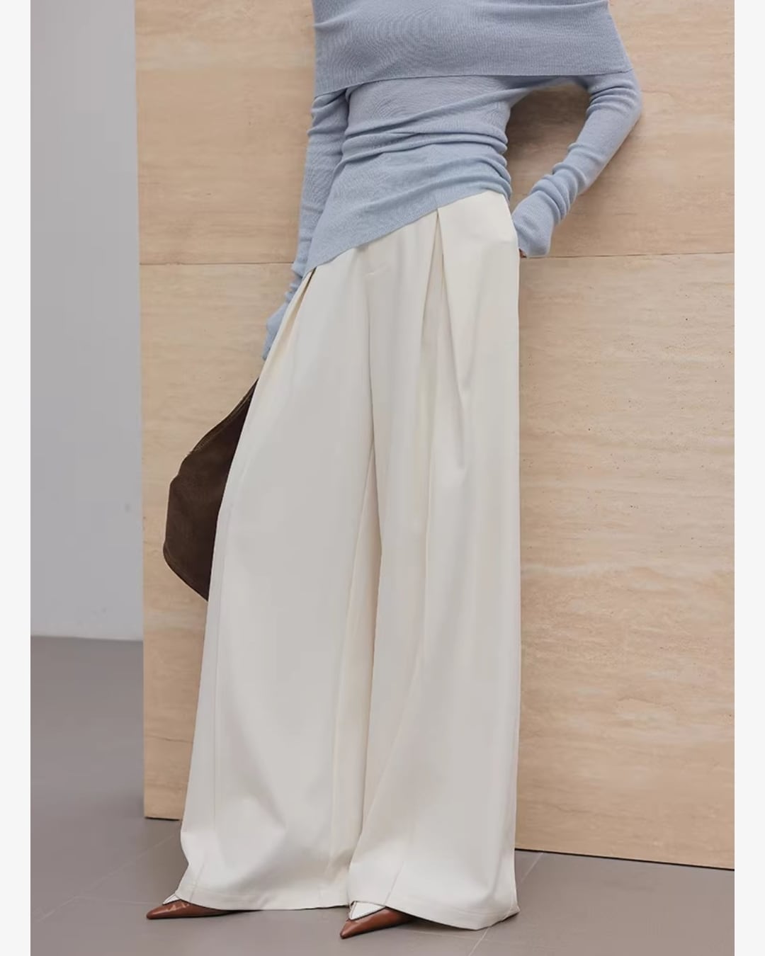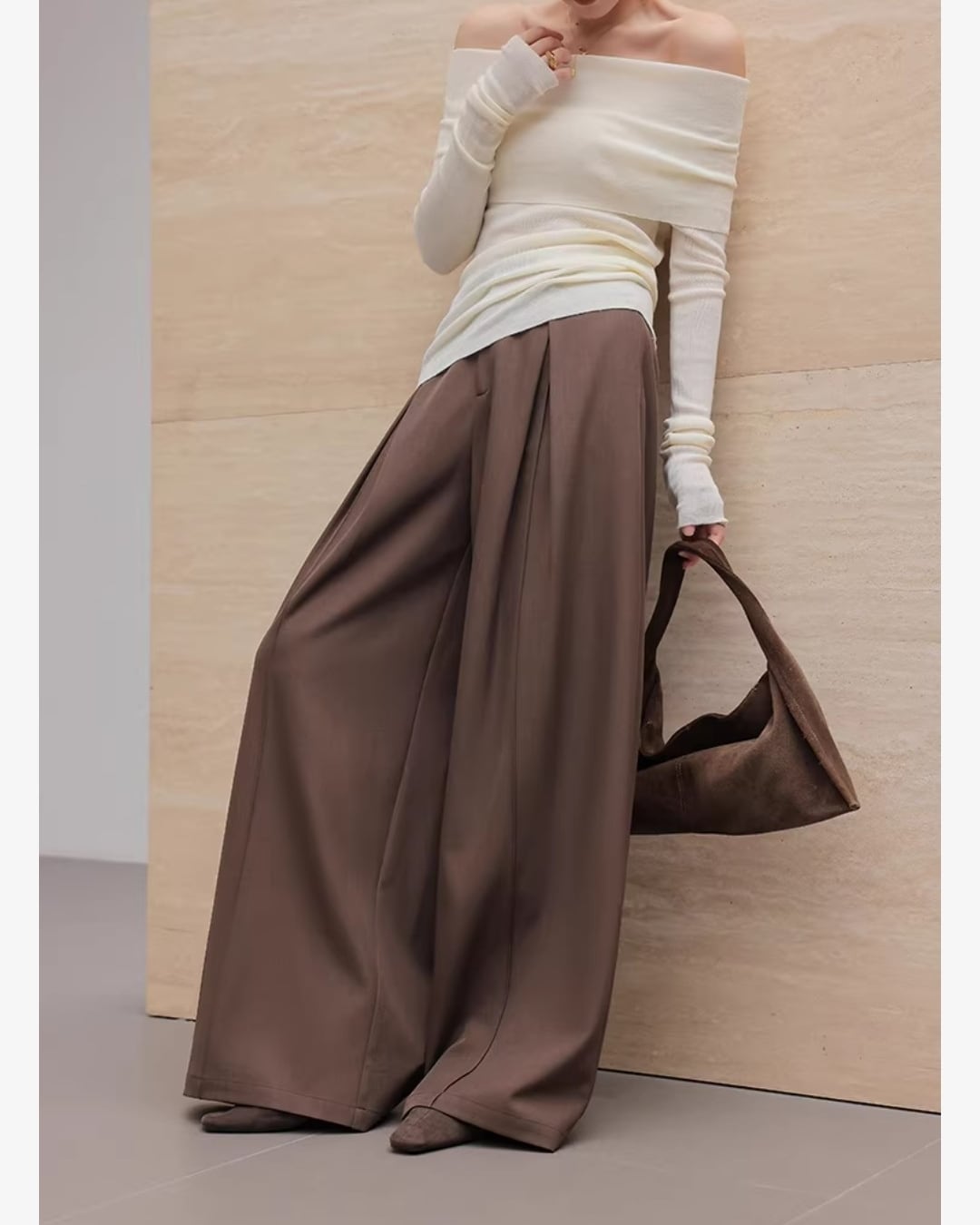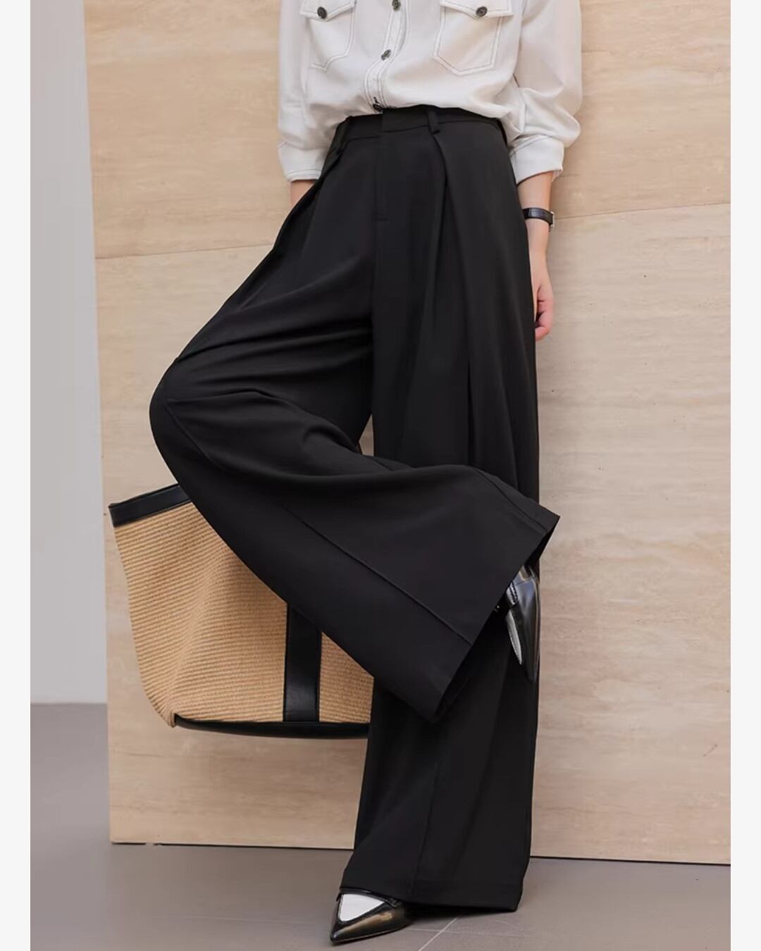 上品なシルエットが魅力のワイドパンツです。
