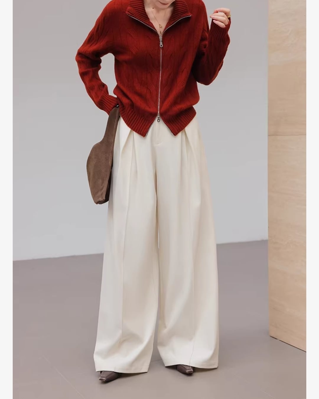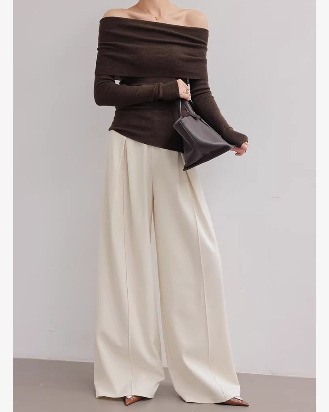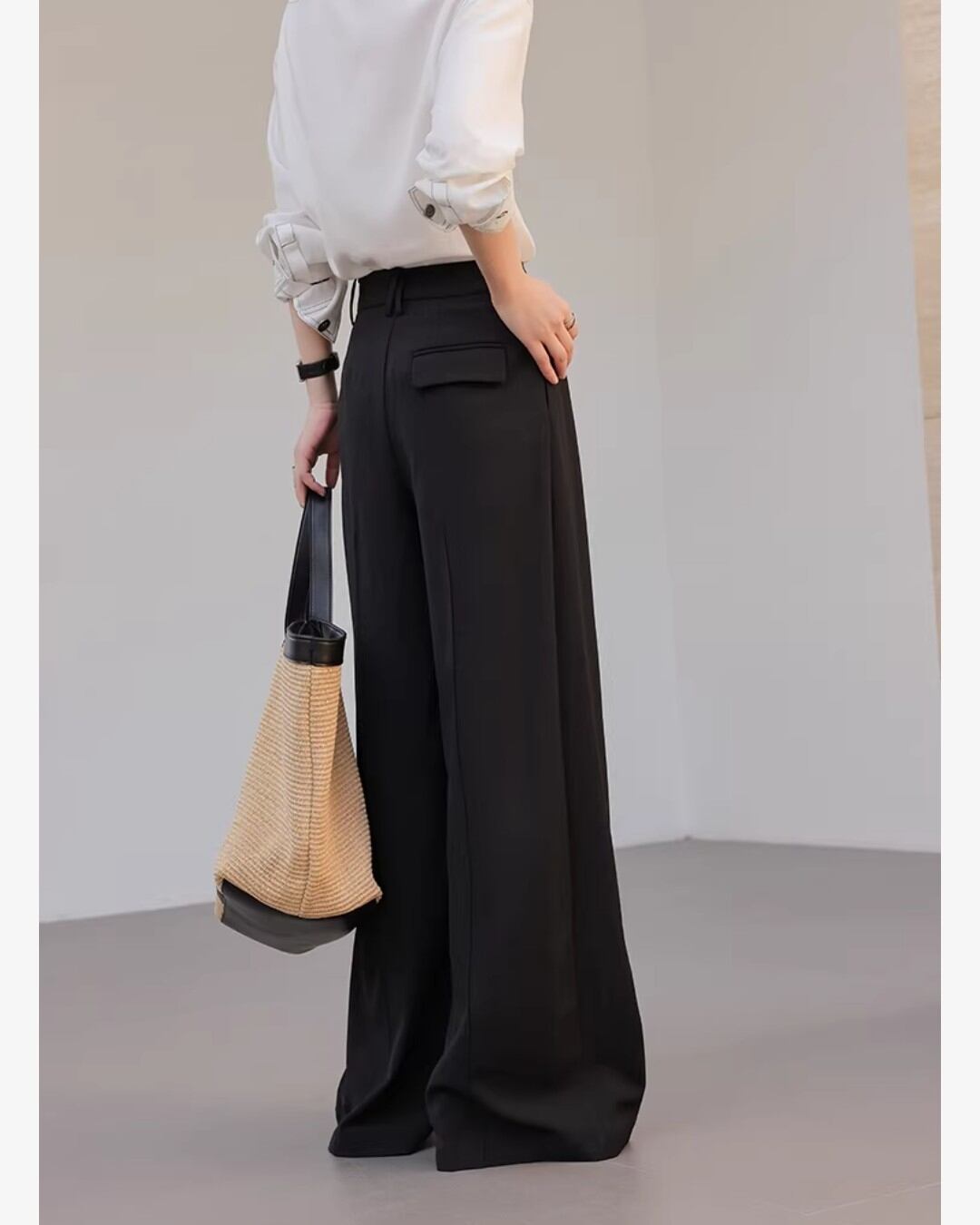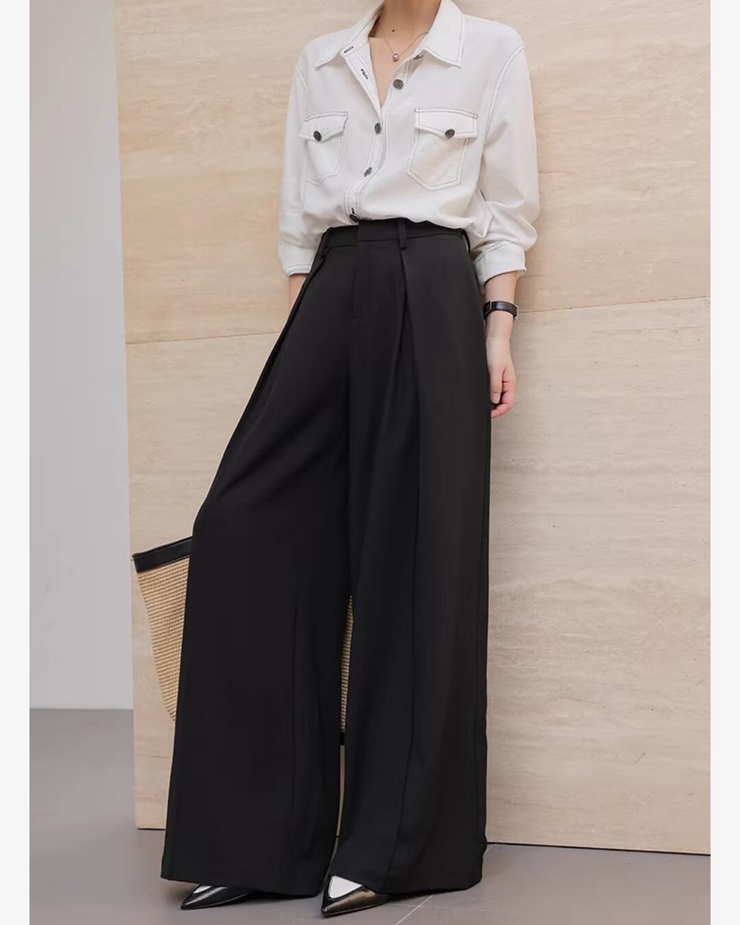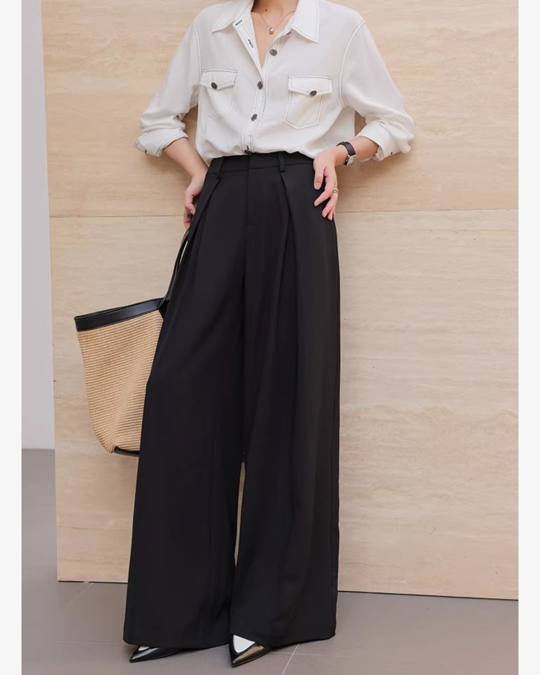 上品なシルエットが魅力のワイドパンツです。