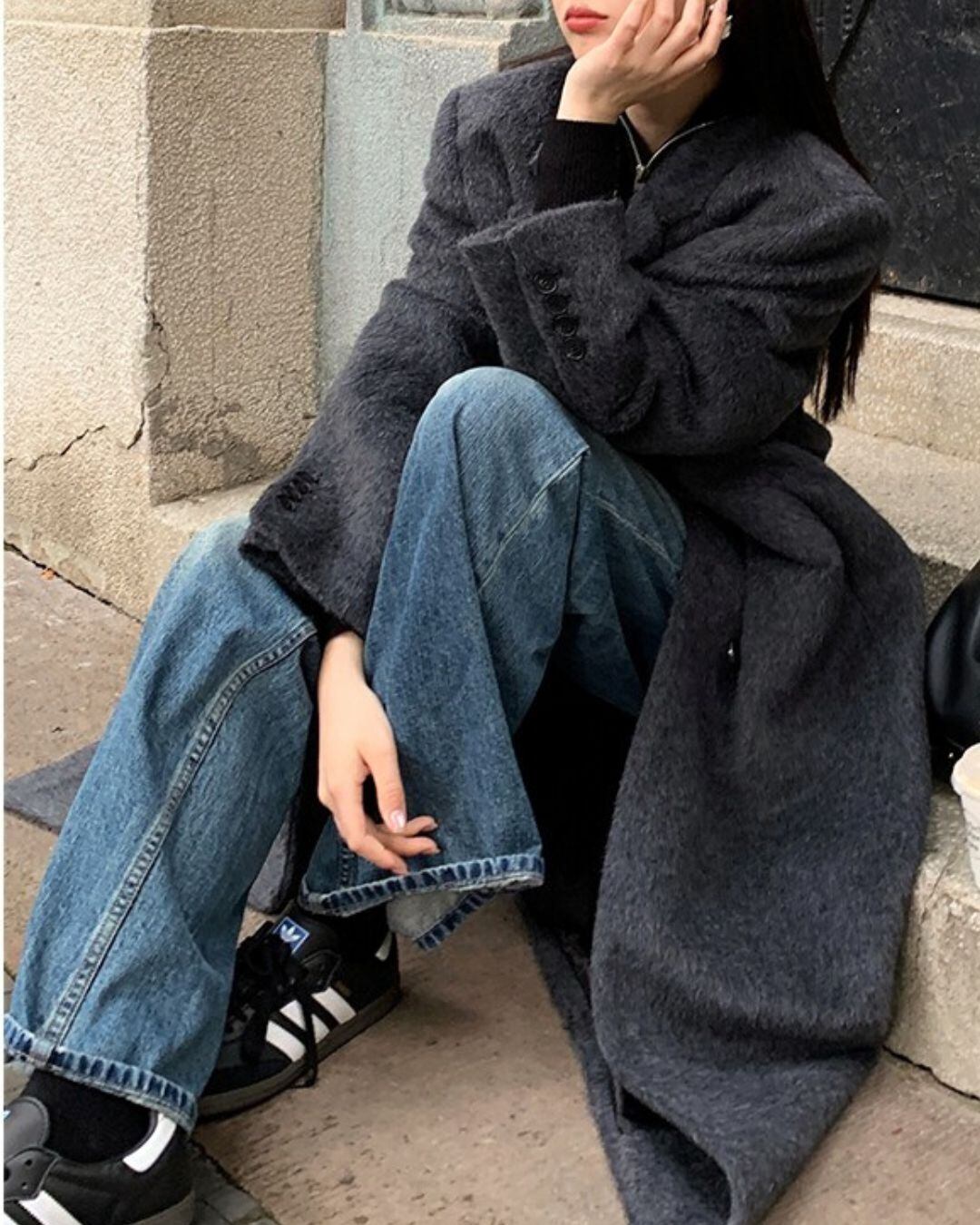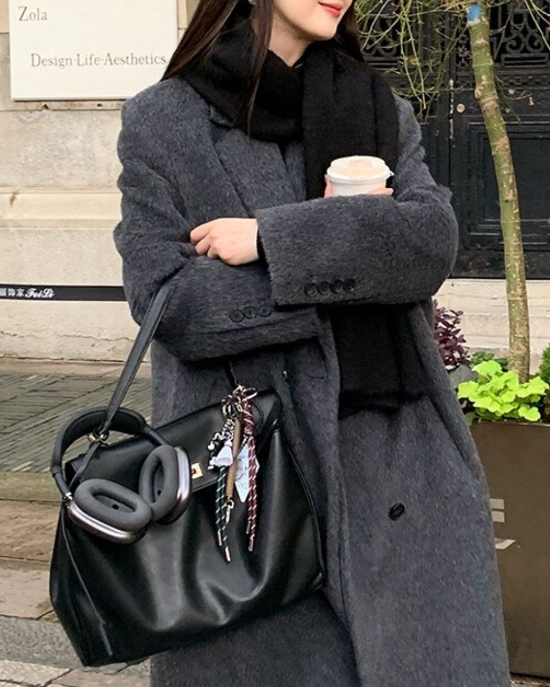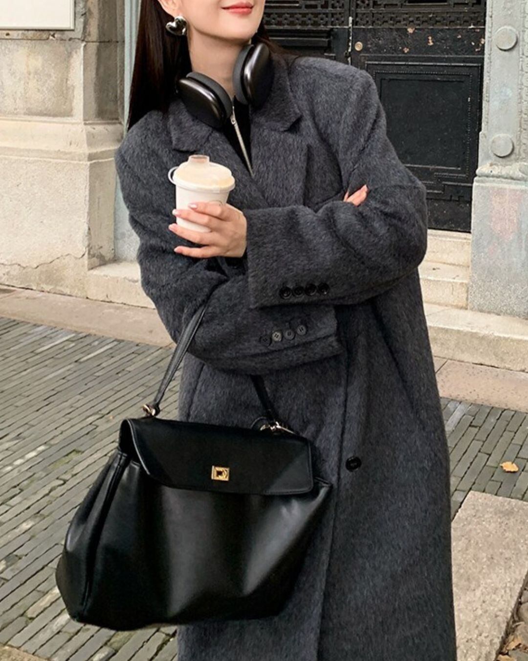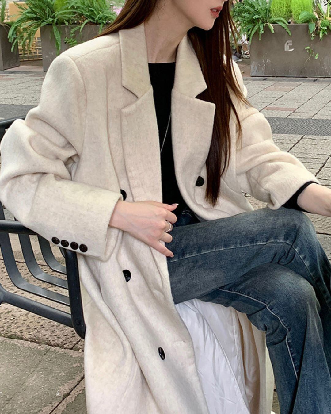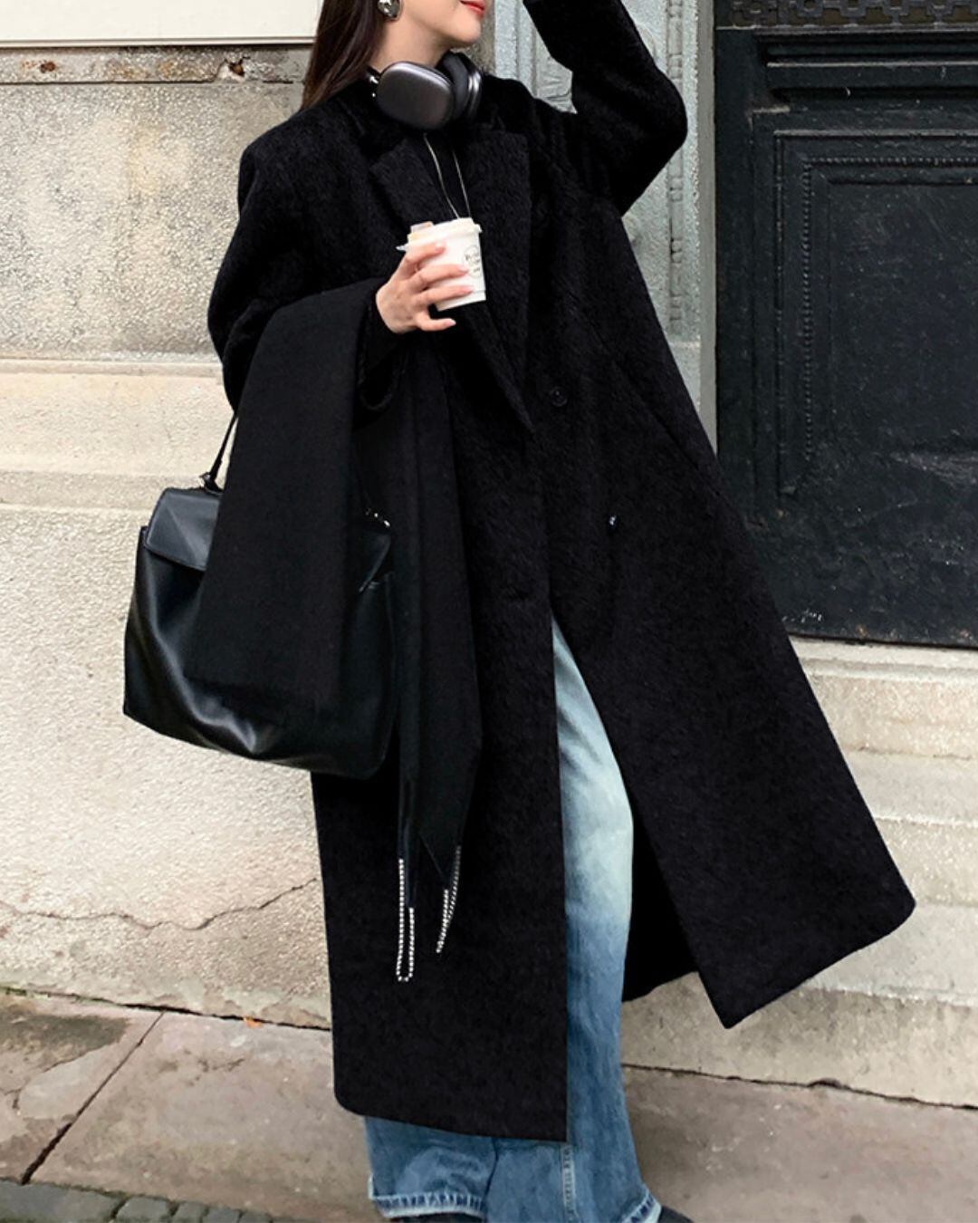 ミニマルなデザインが魅力のロングウールコート。