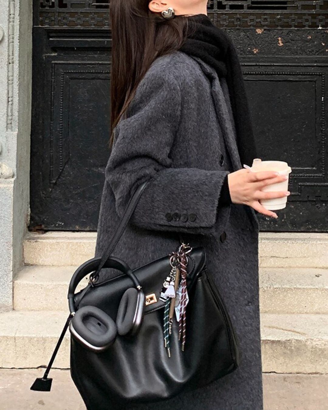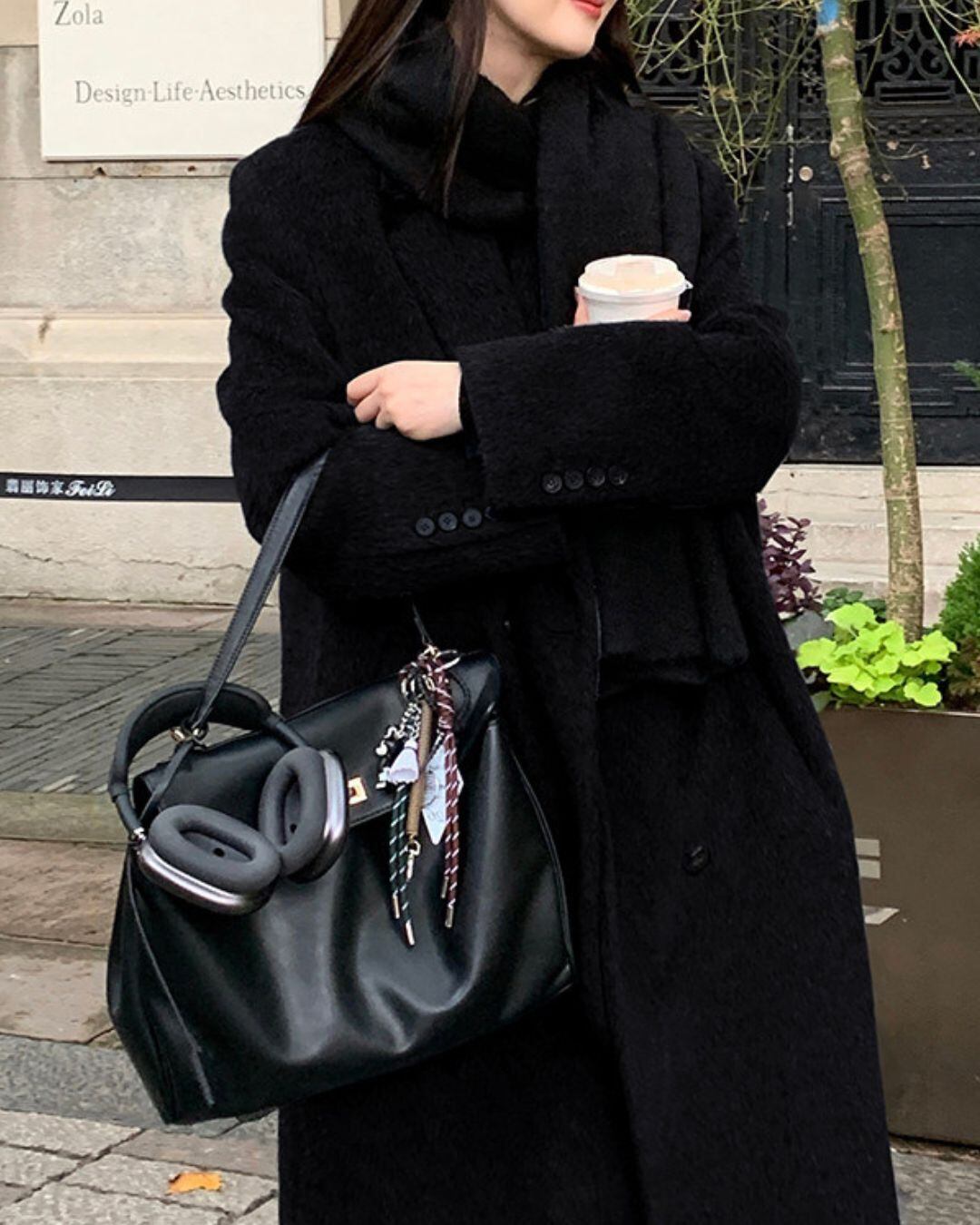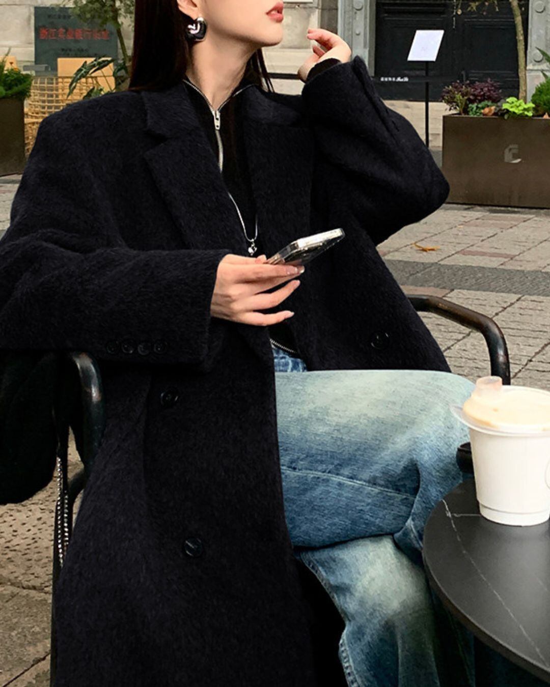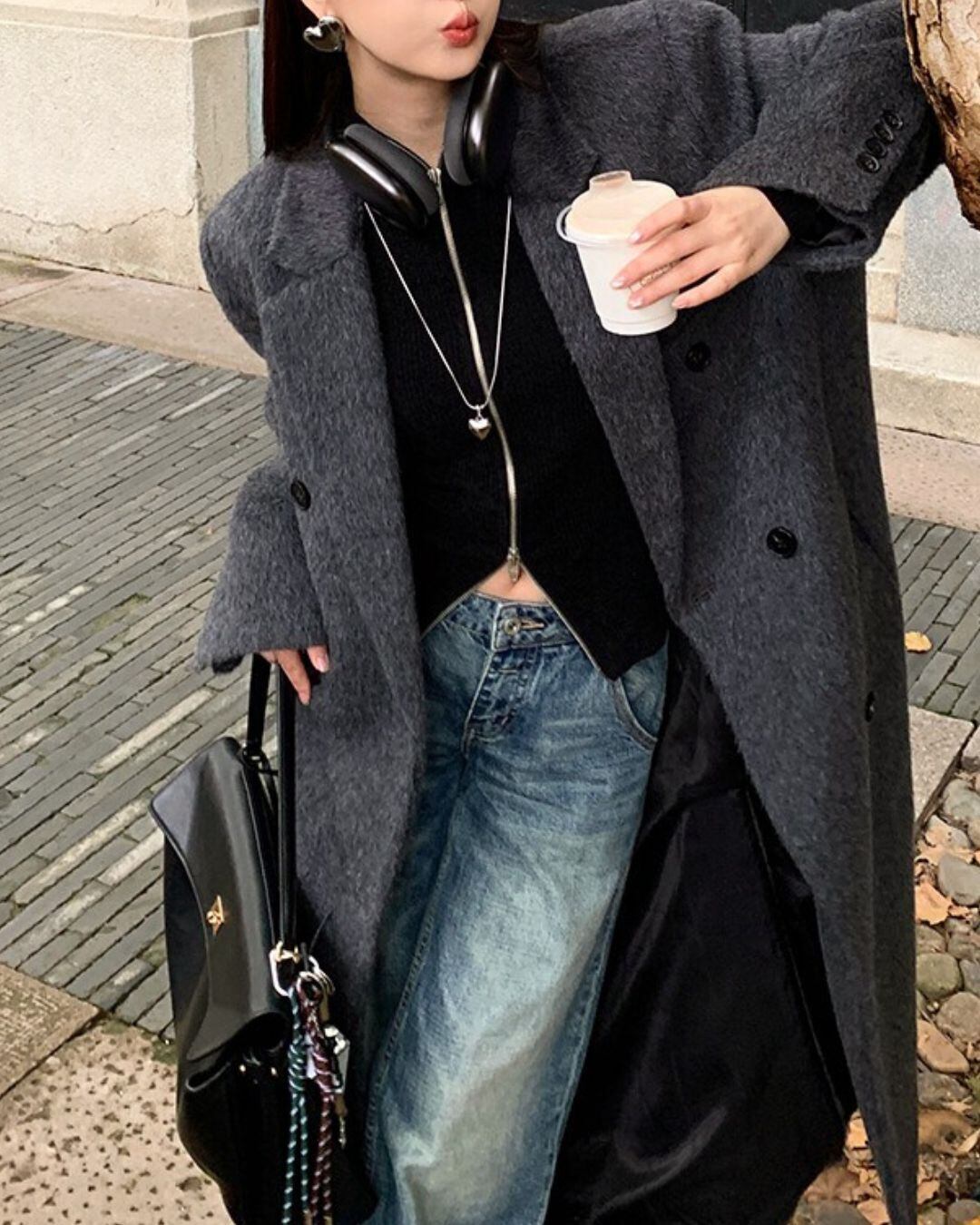 ミニマルなデザインが魅力のロングウールコート。