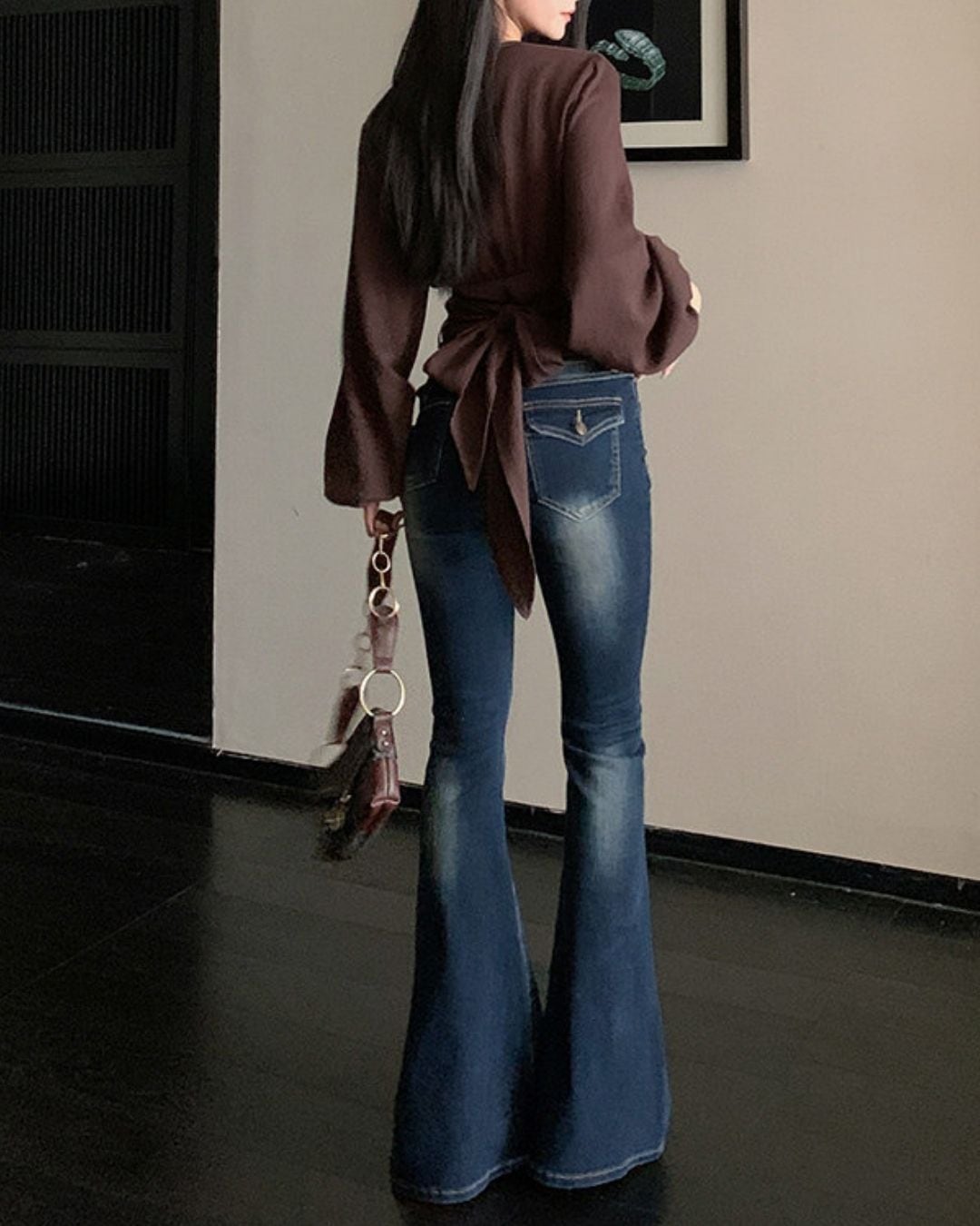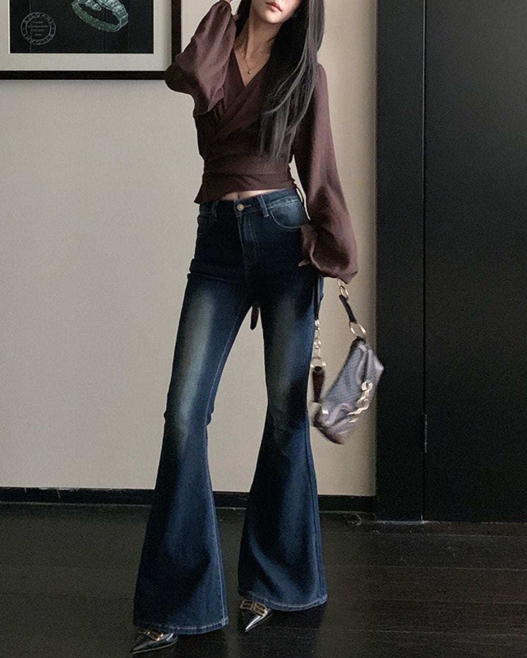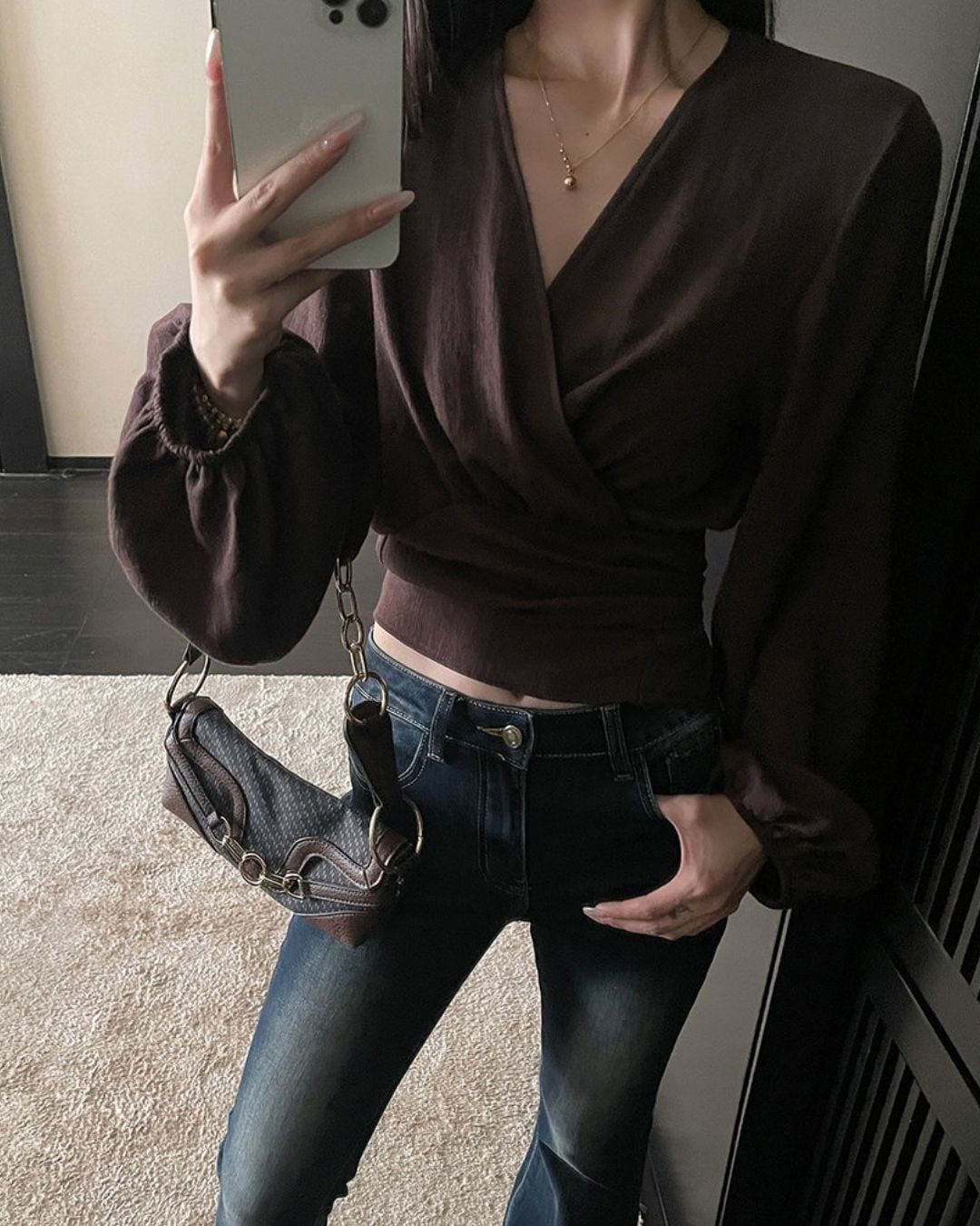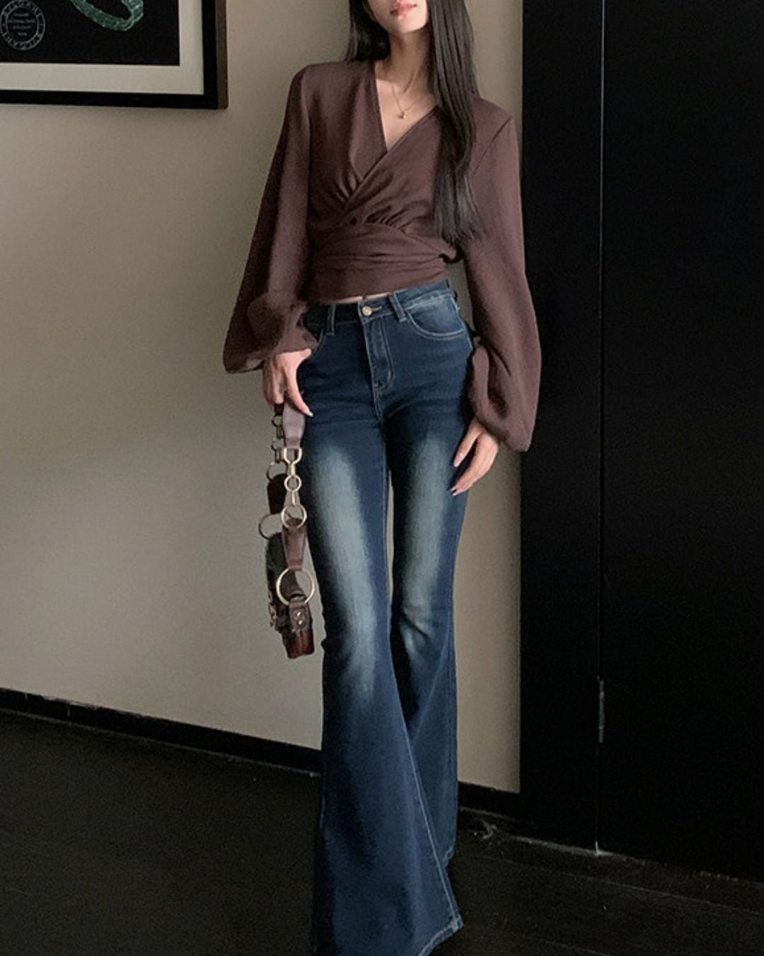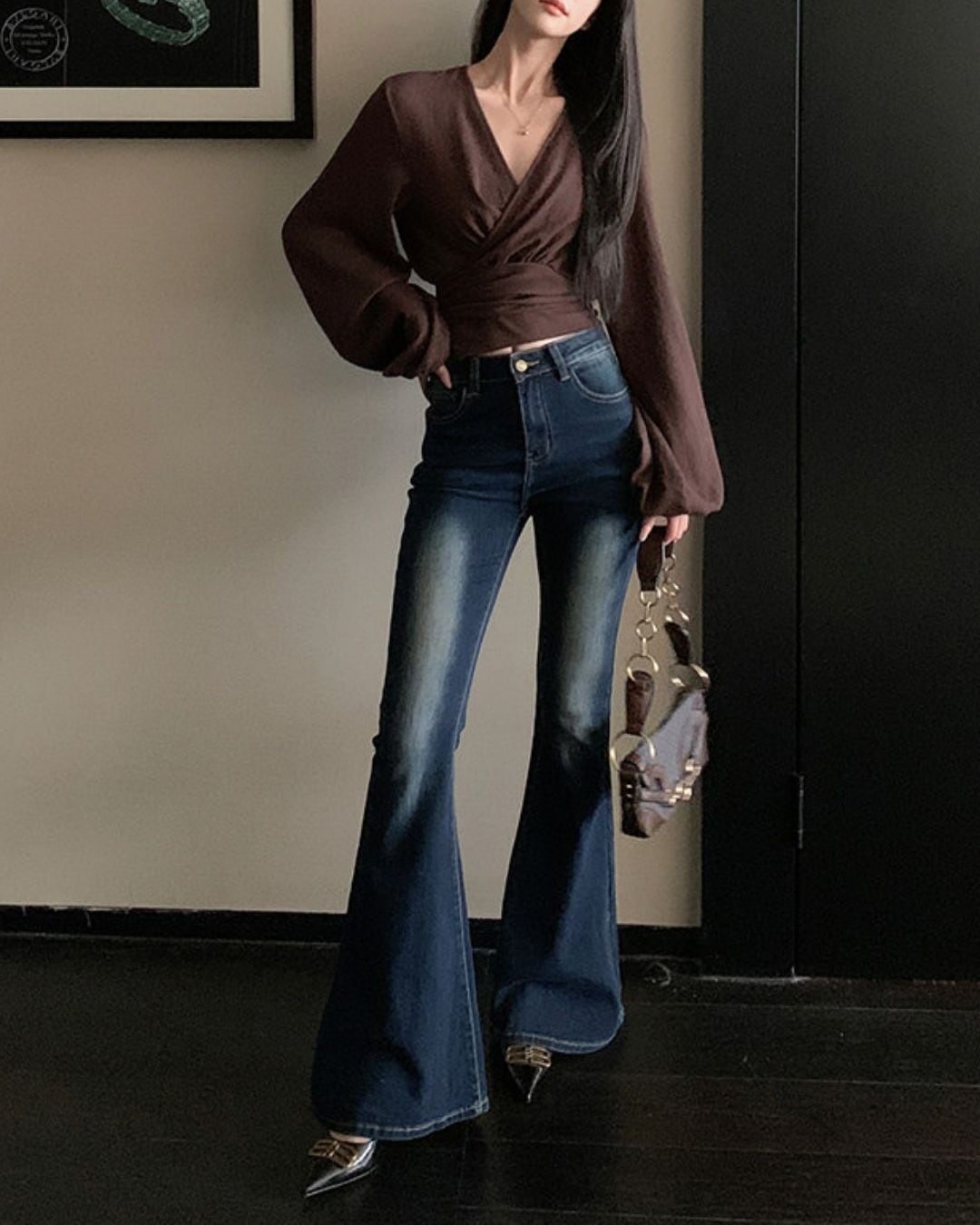 ラップデザインが目を引く長袖ブラウスです。