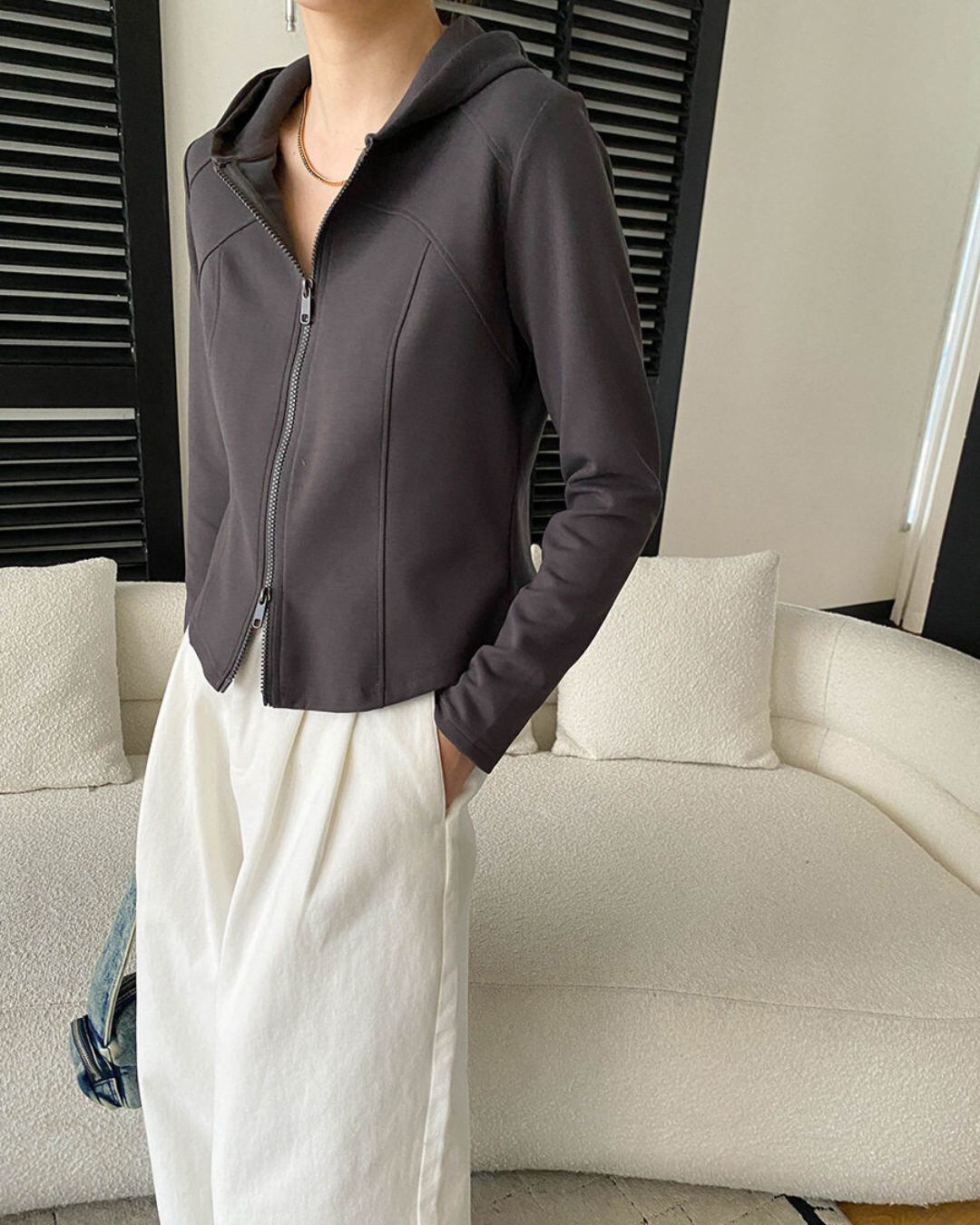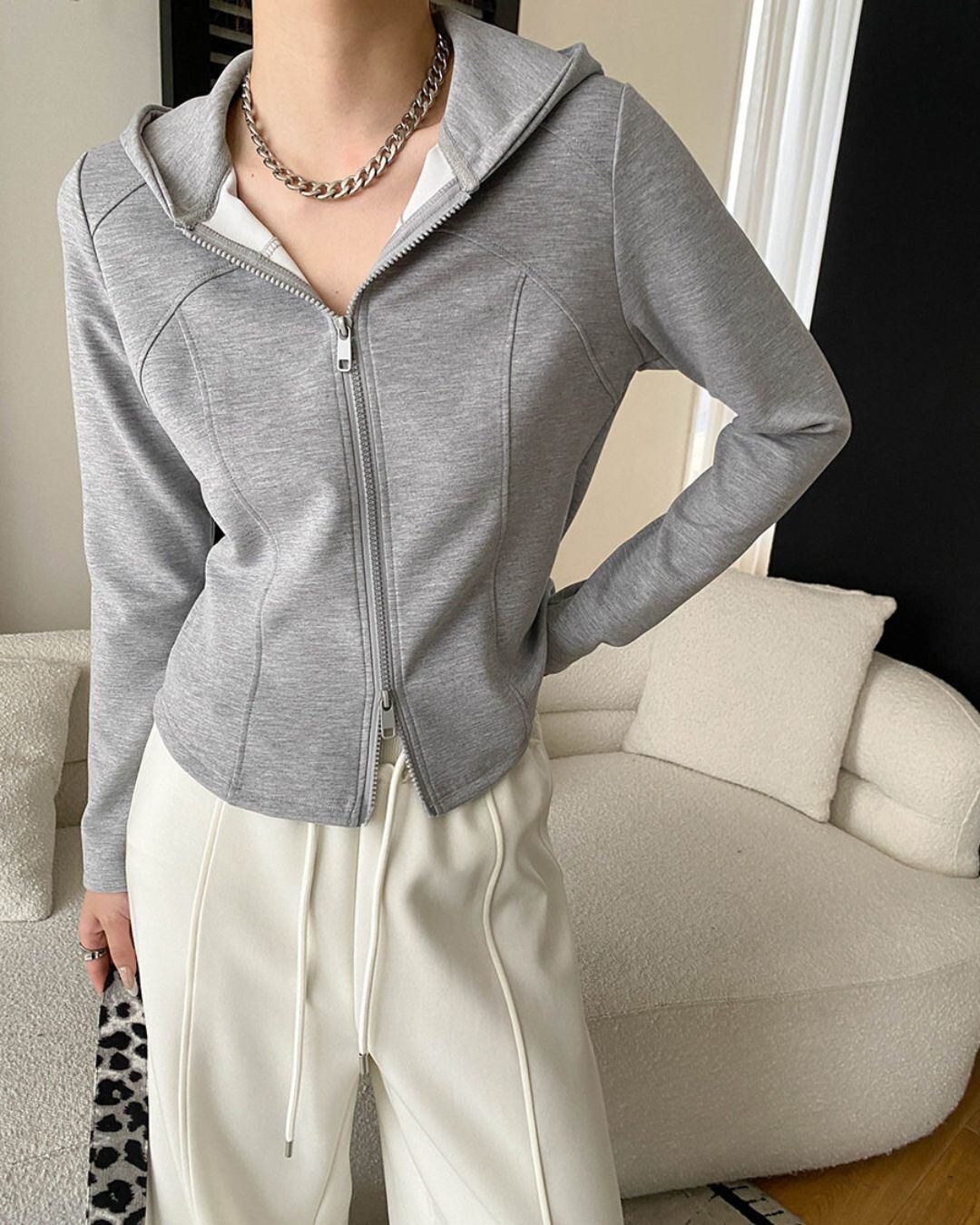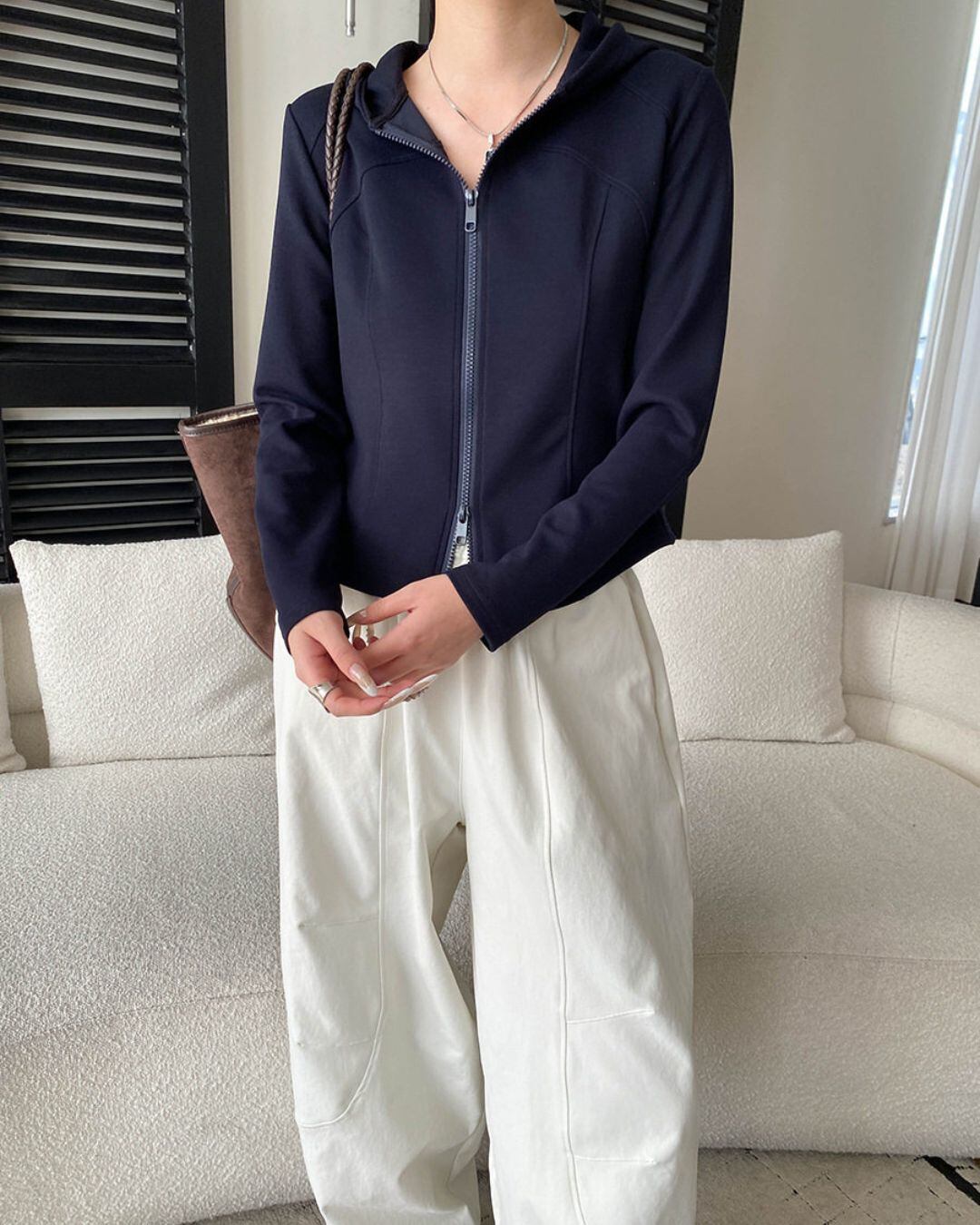 クロップド丈がトレンド感を演出するジップアップパーカーです。