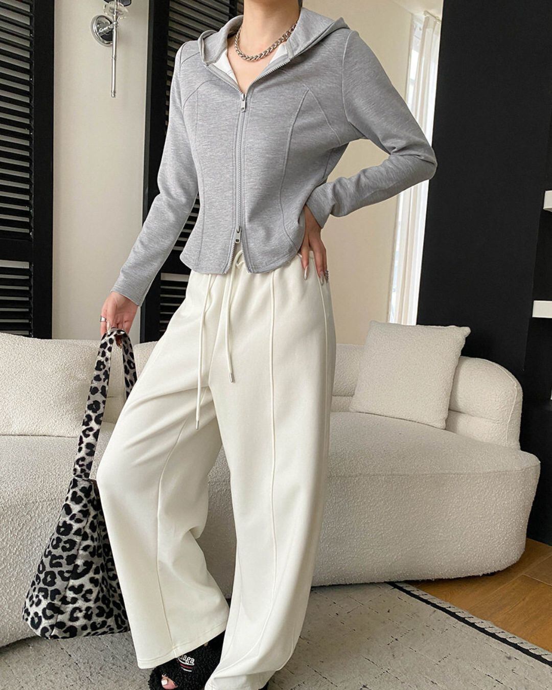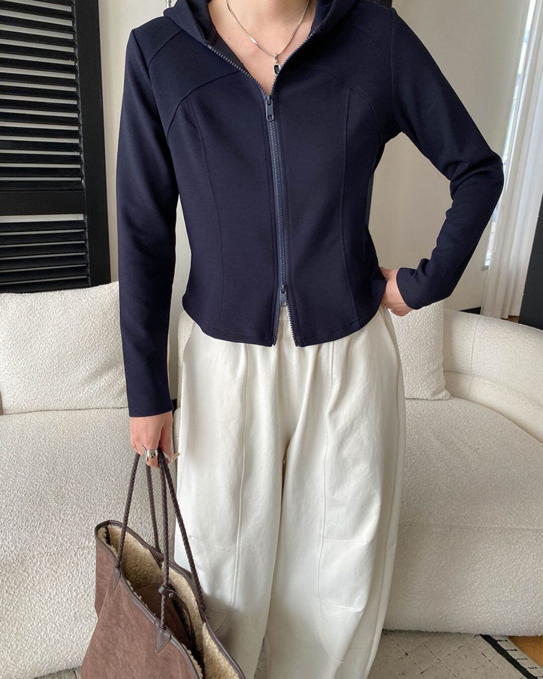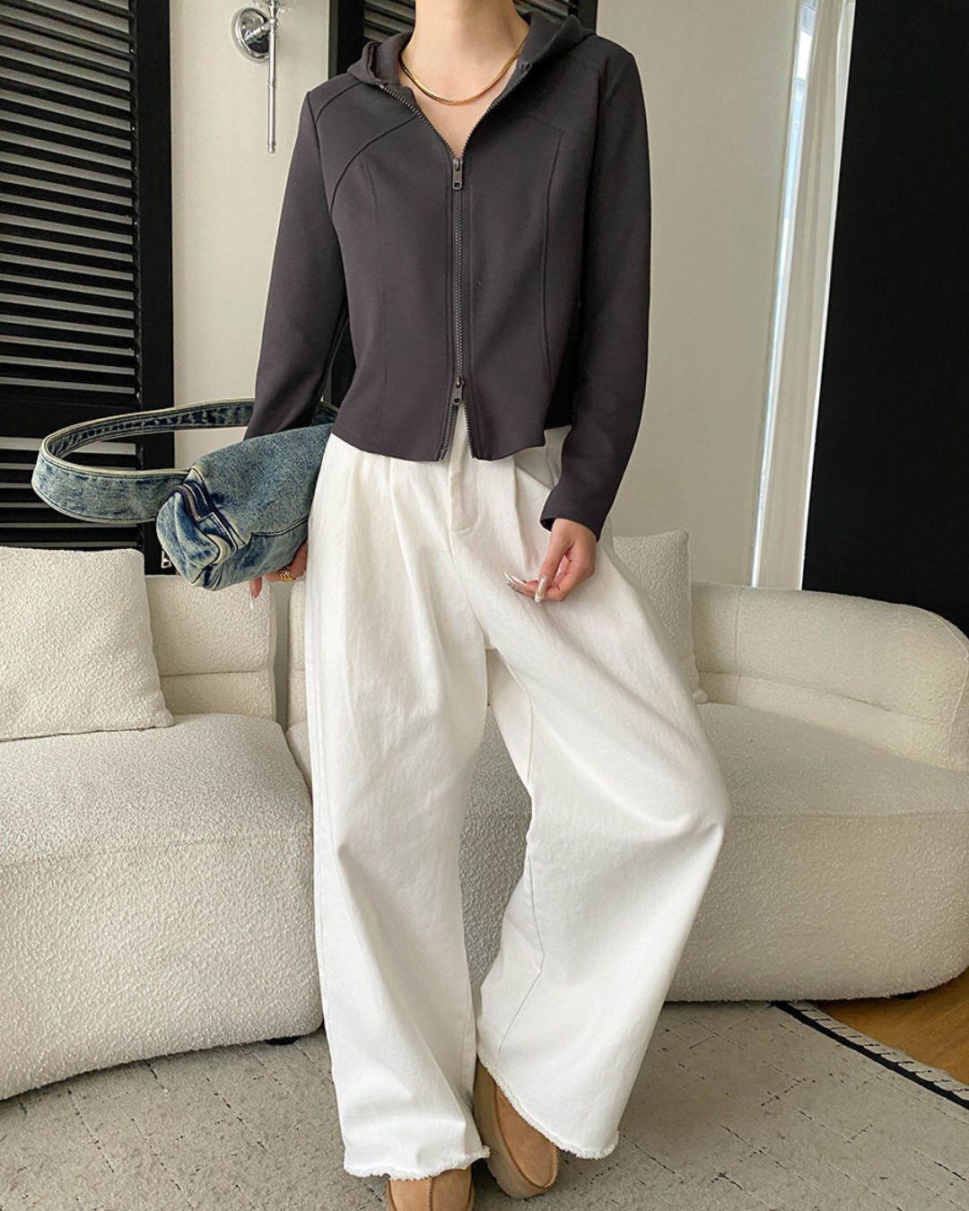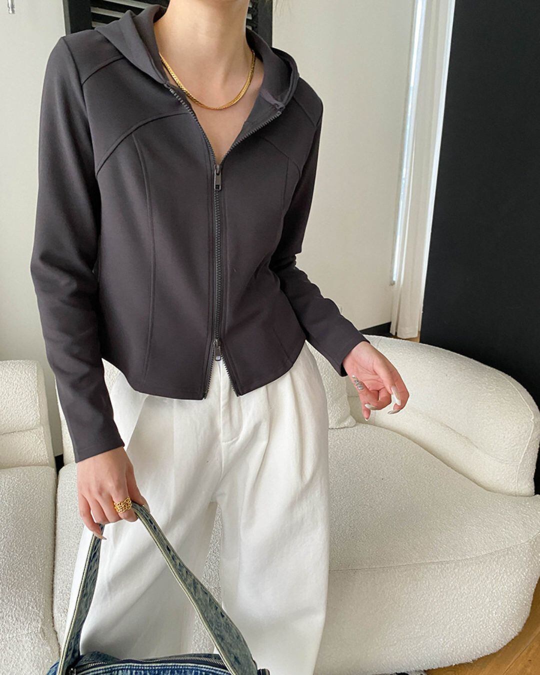 クロップド丈がトレンド感を演出するジップアップパーカーです。