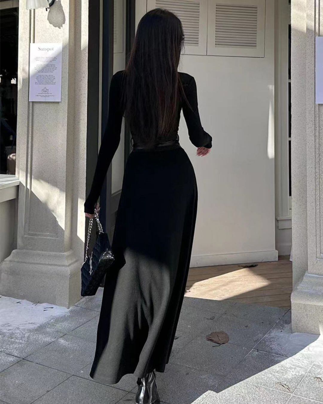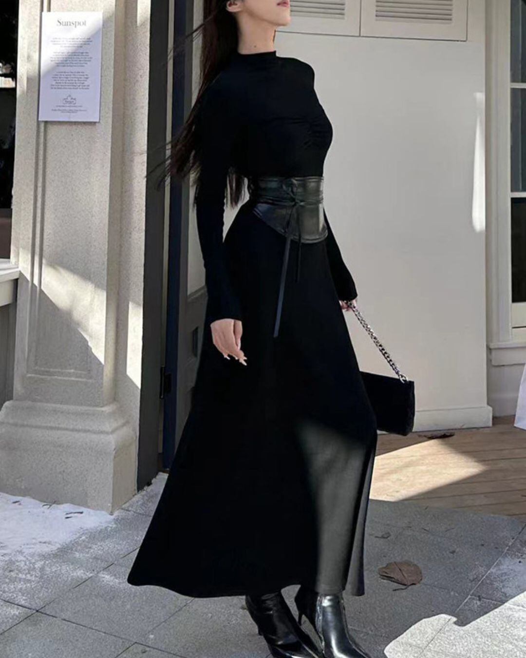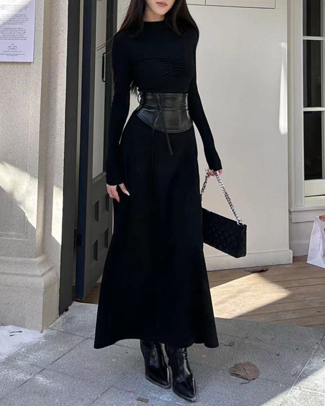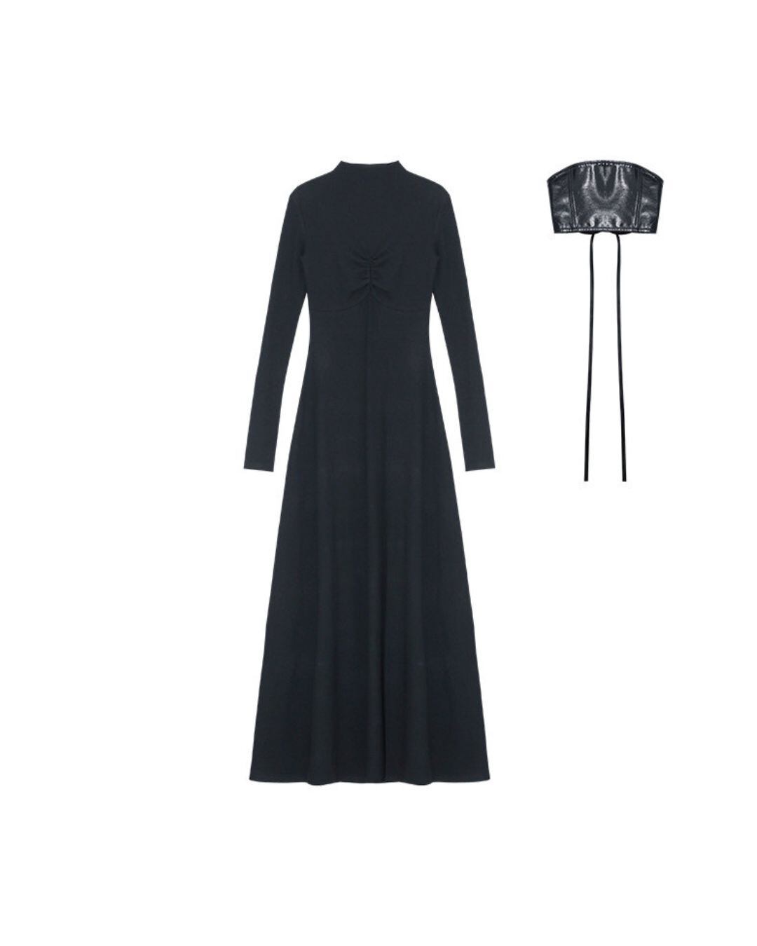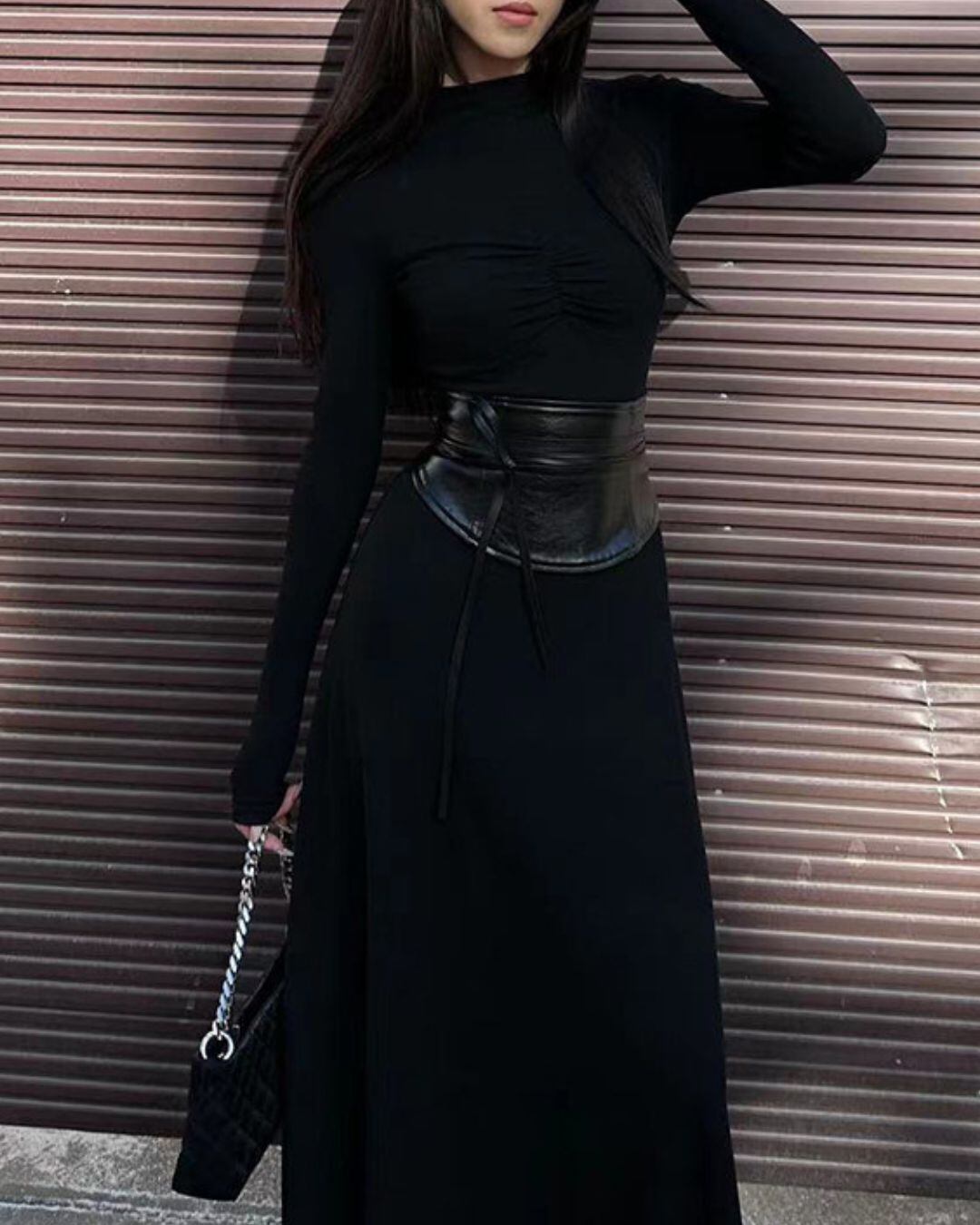 ベルト付きデザインが目を引く、Aラインシルエットのワンピースです。