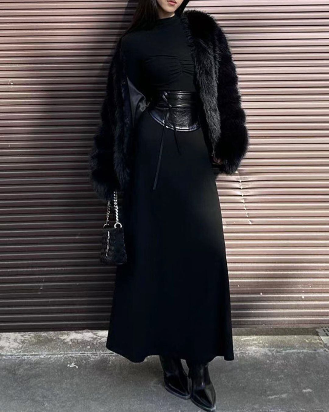 上品なAラインシルエットは、女性らしさを引き立てつつ、体型カバーも叶えます。