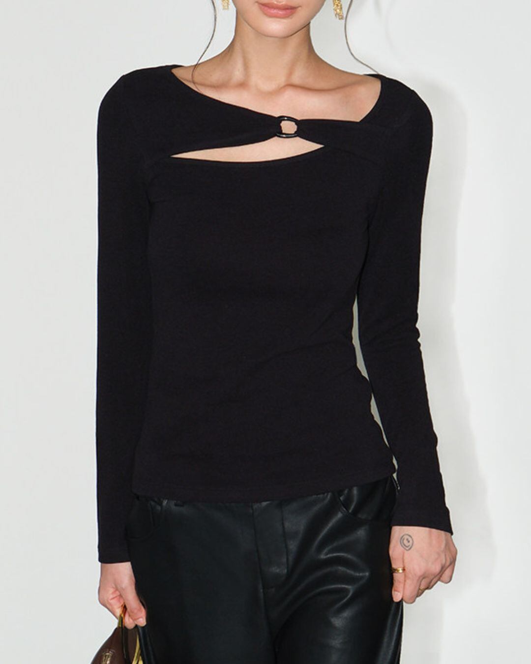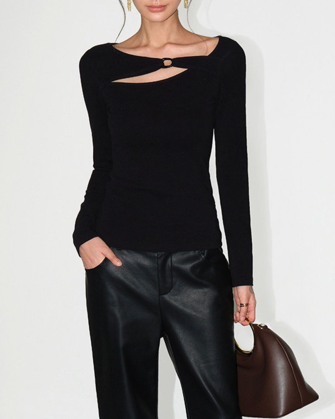 カットアウトデザインが目を引く長袖トップスです。