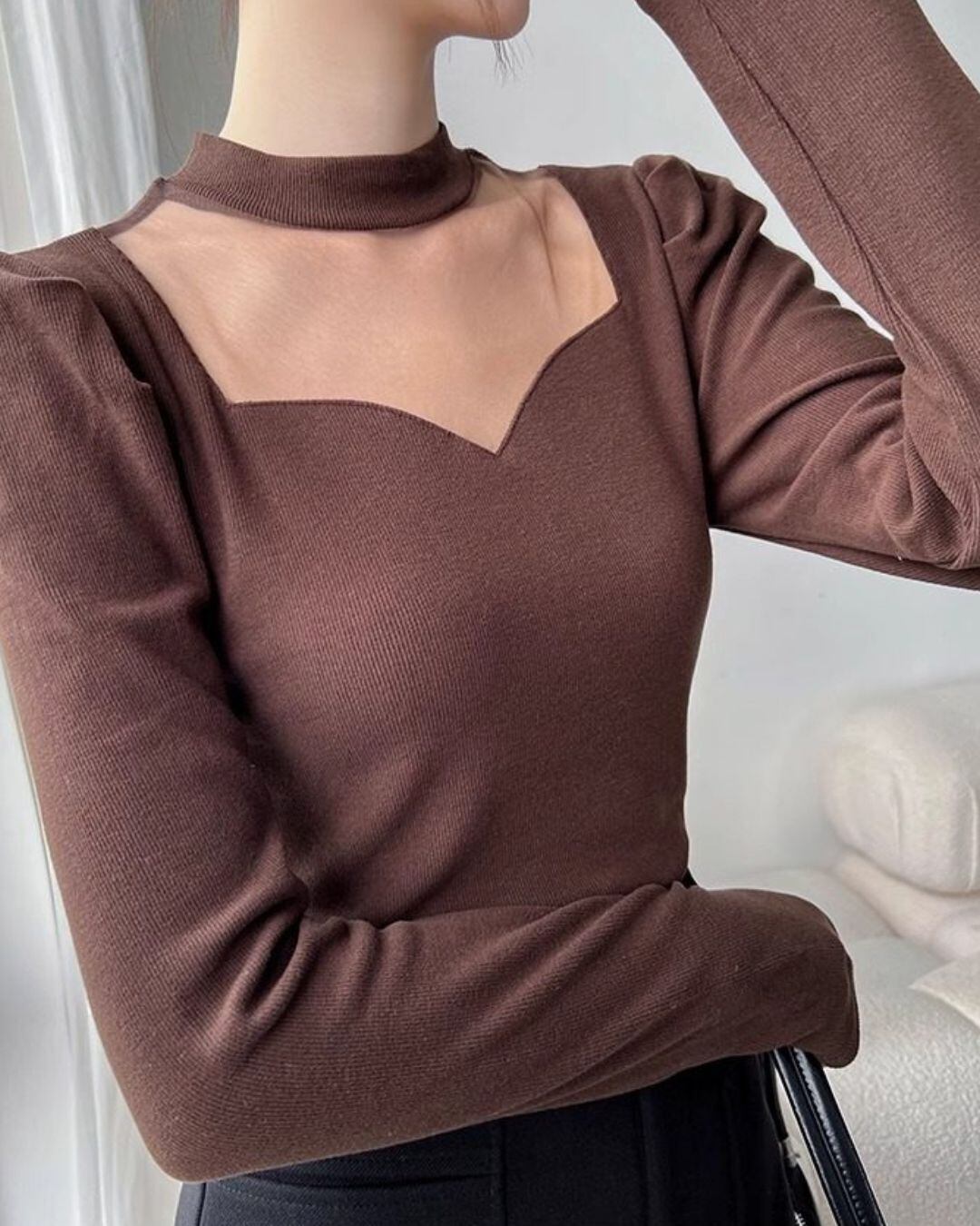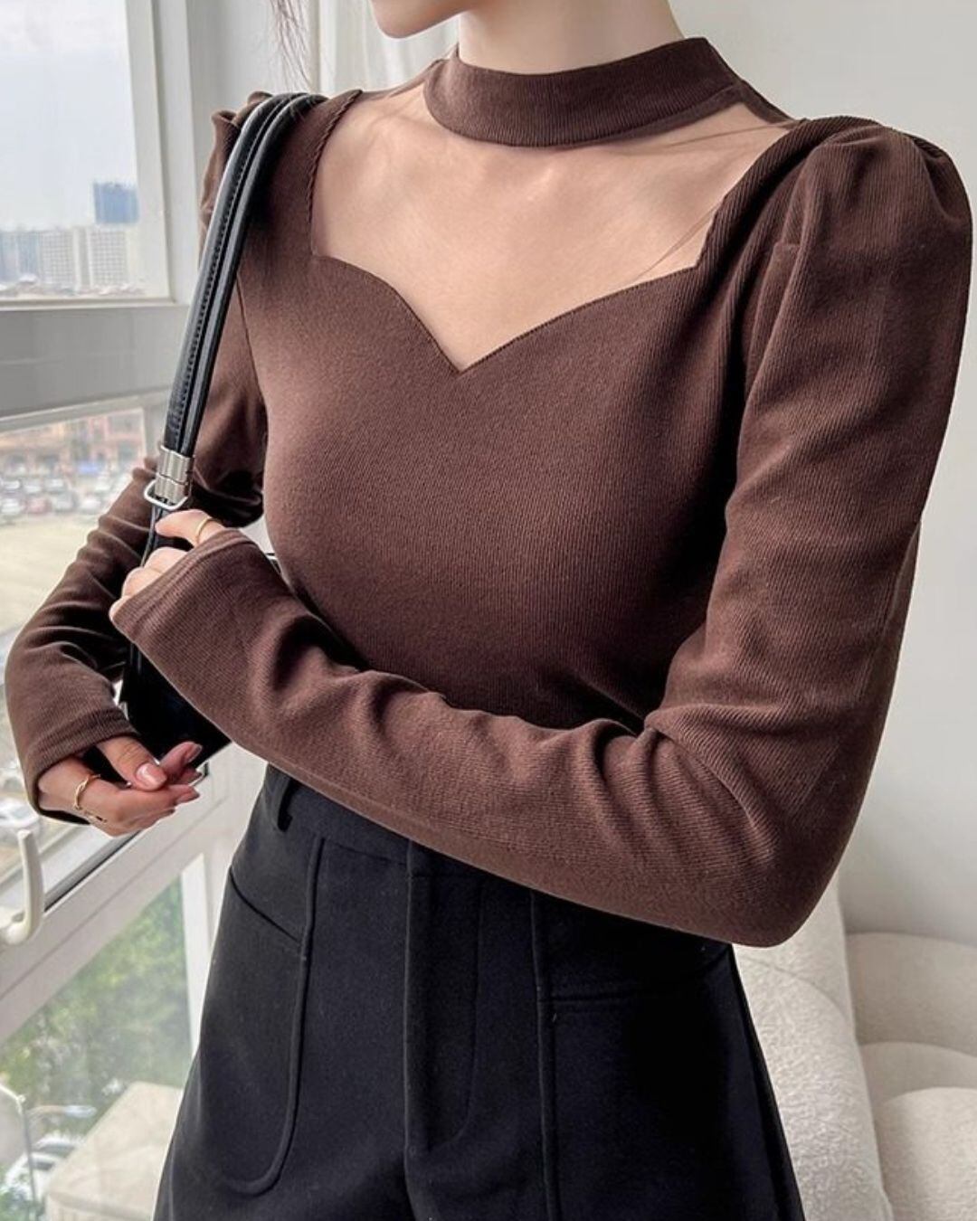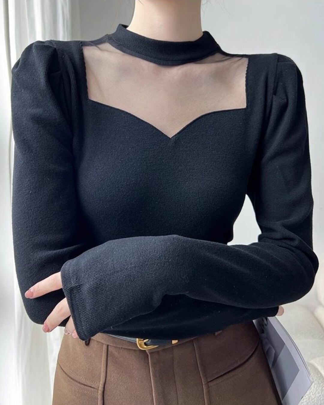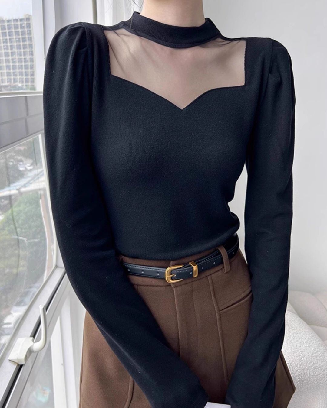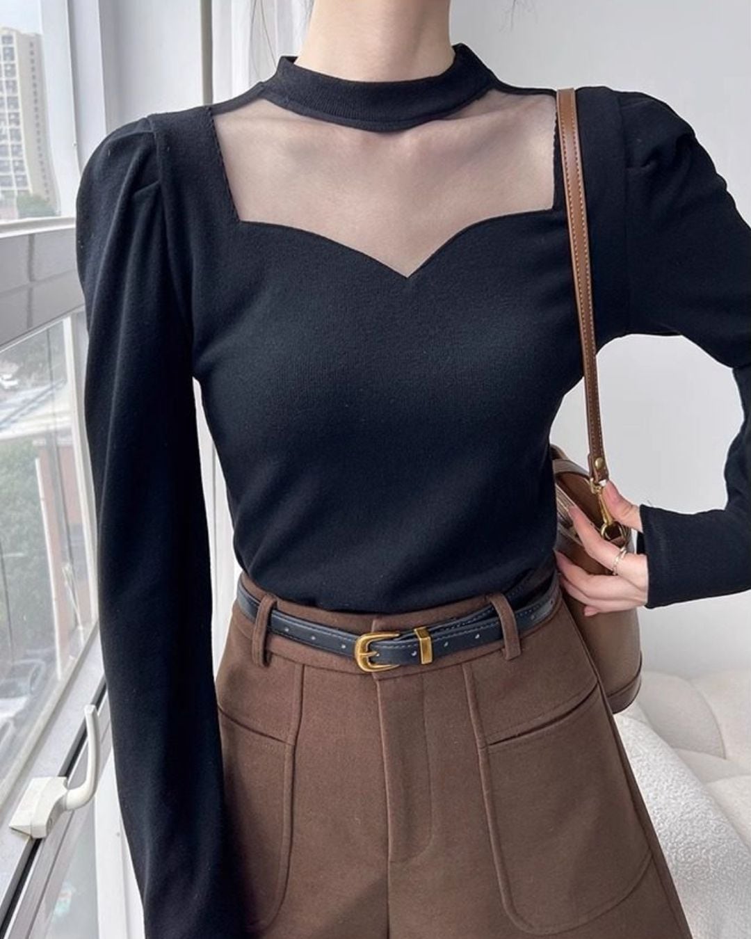シースルーの切り替えが特徴的な長袖カットソーです。