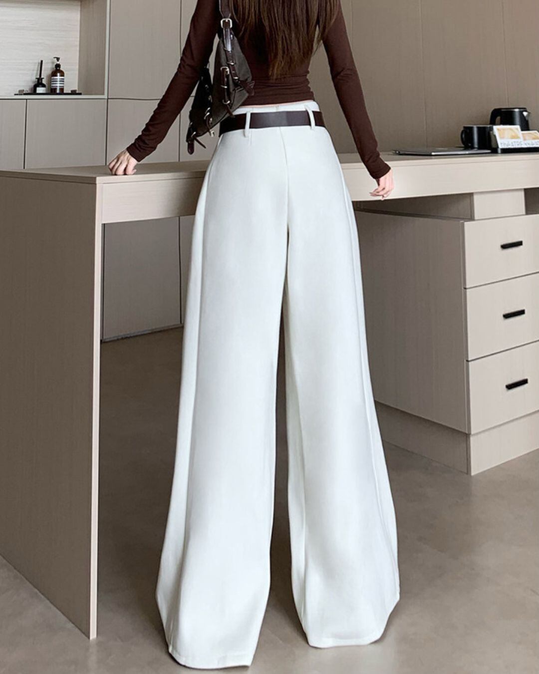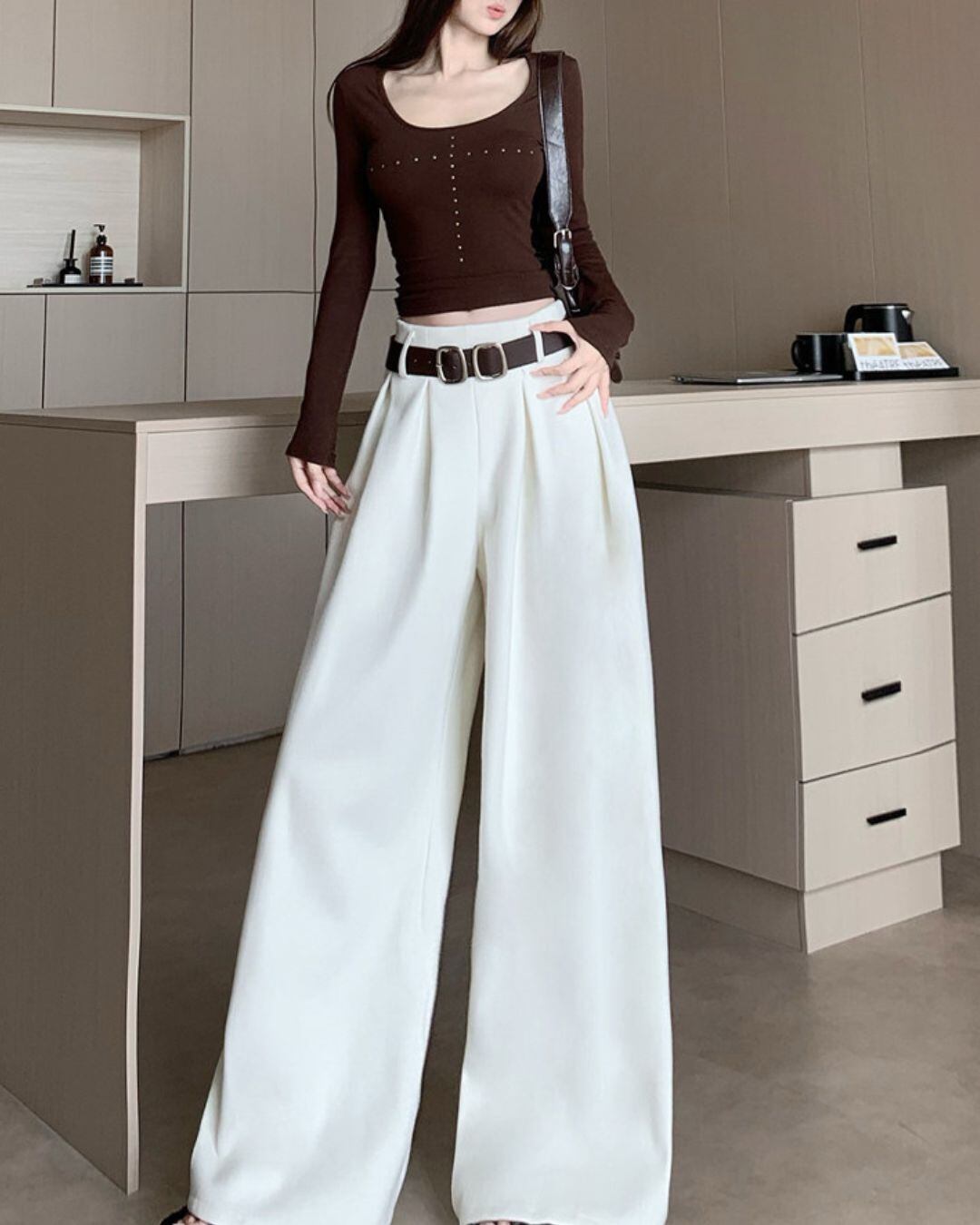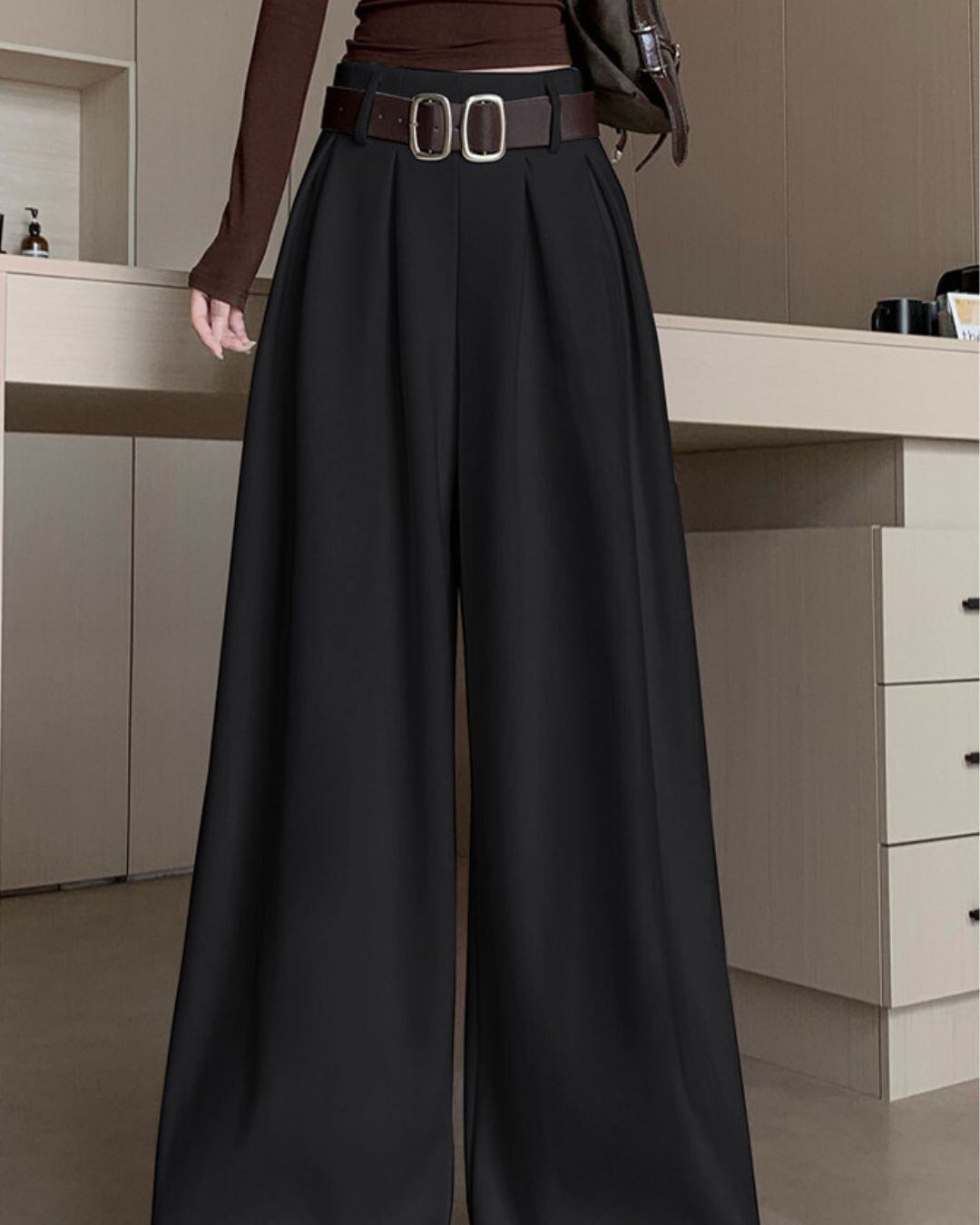 ベルトがアクセントになったワイドレッグパンツです。