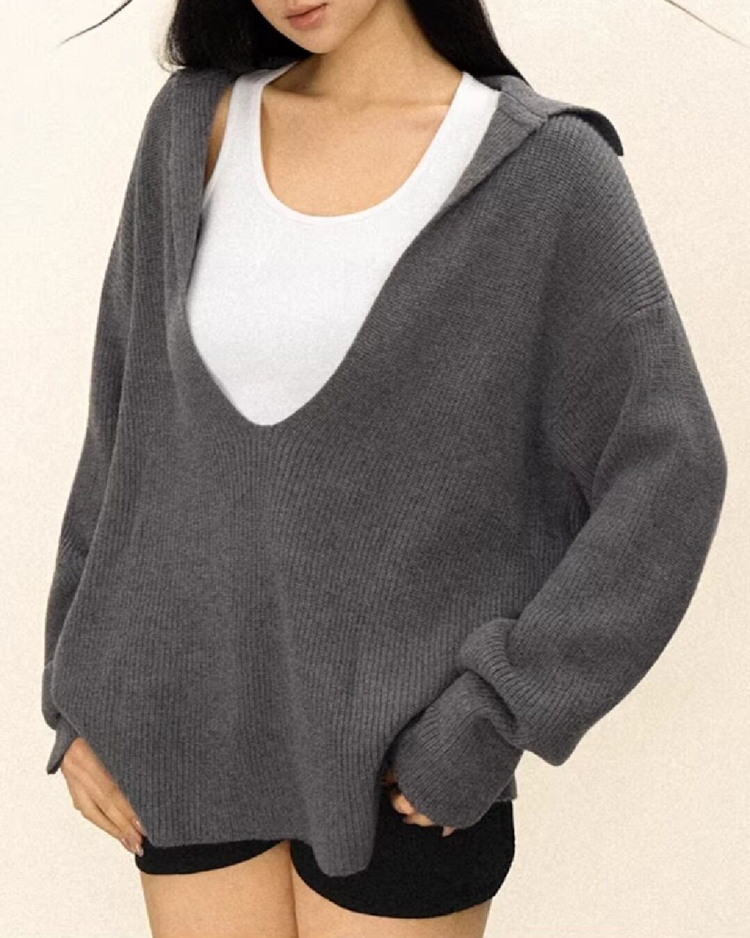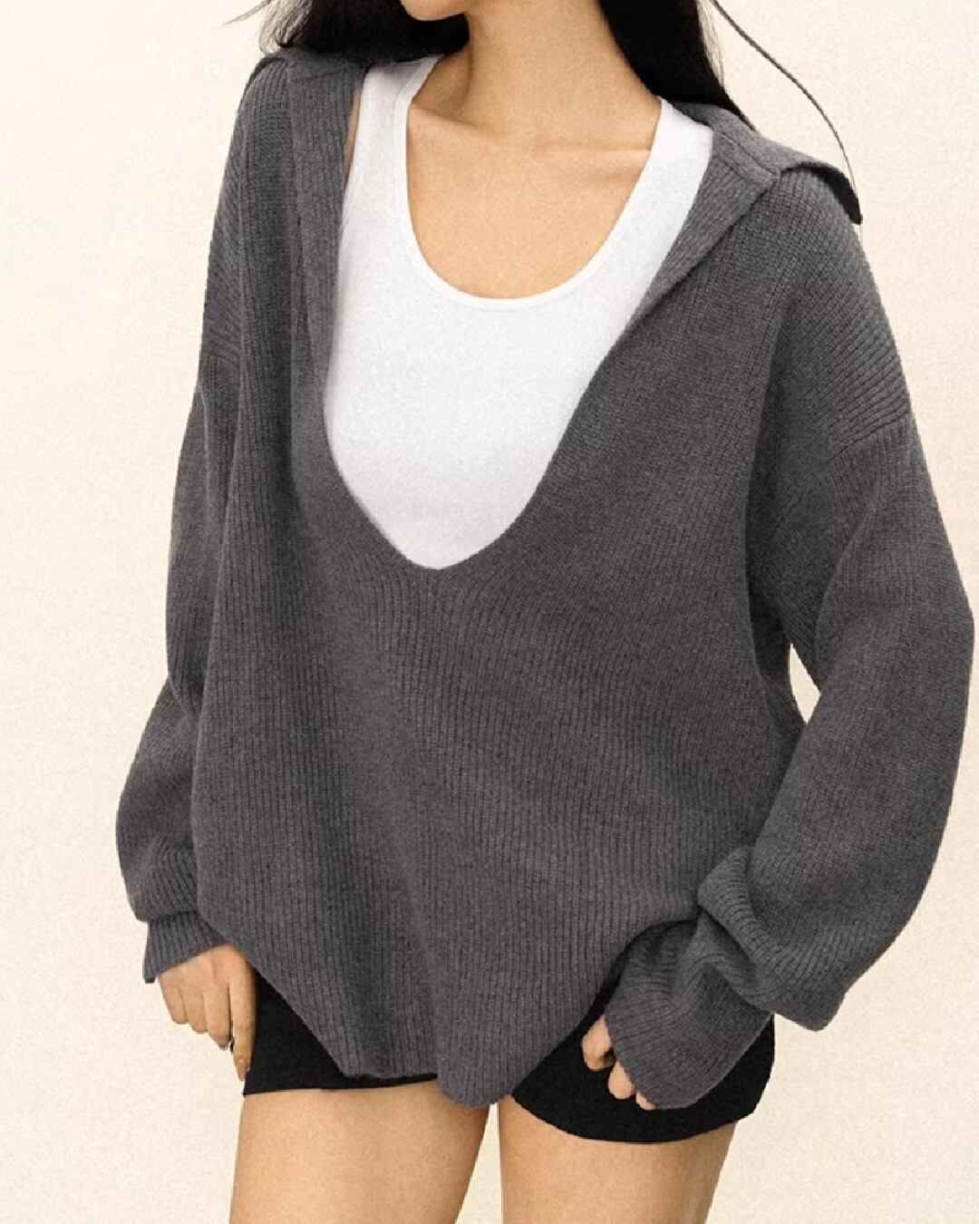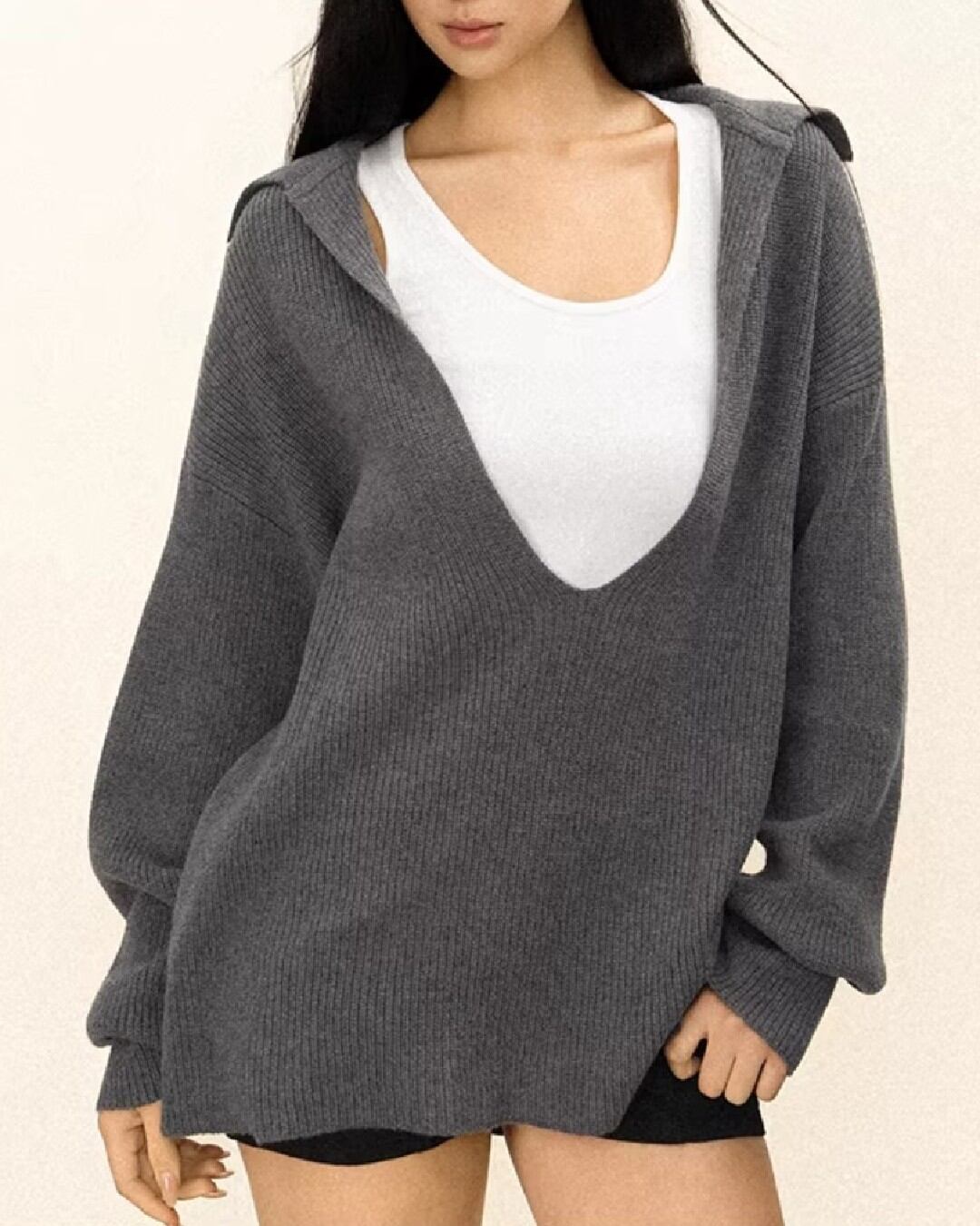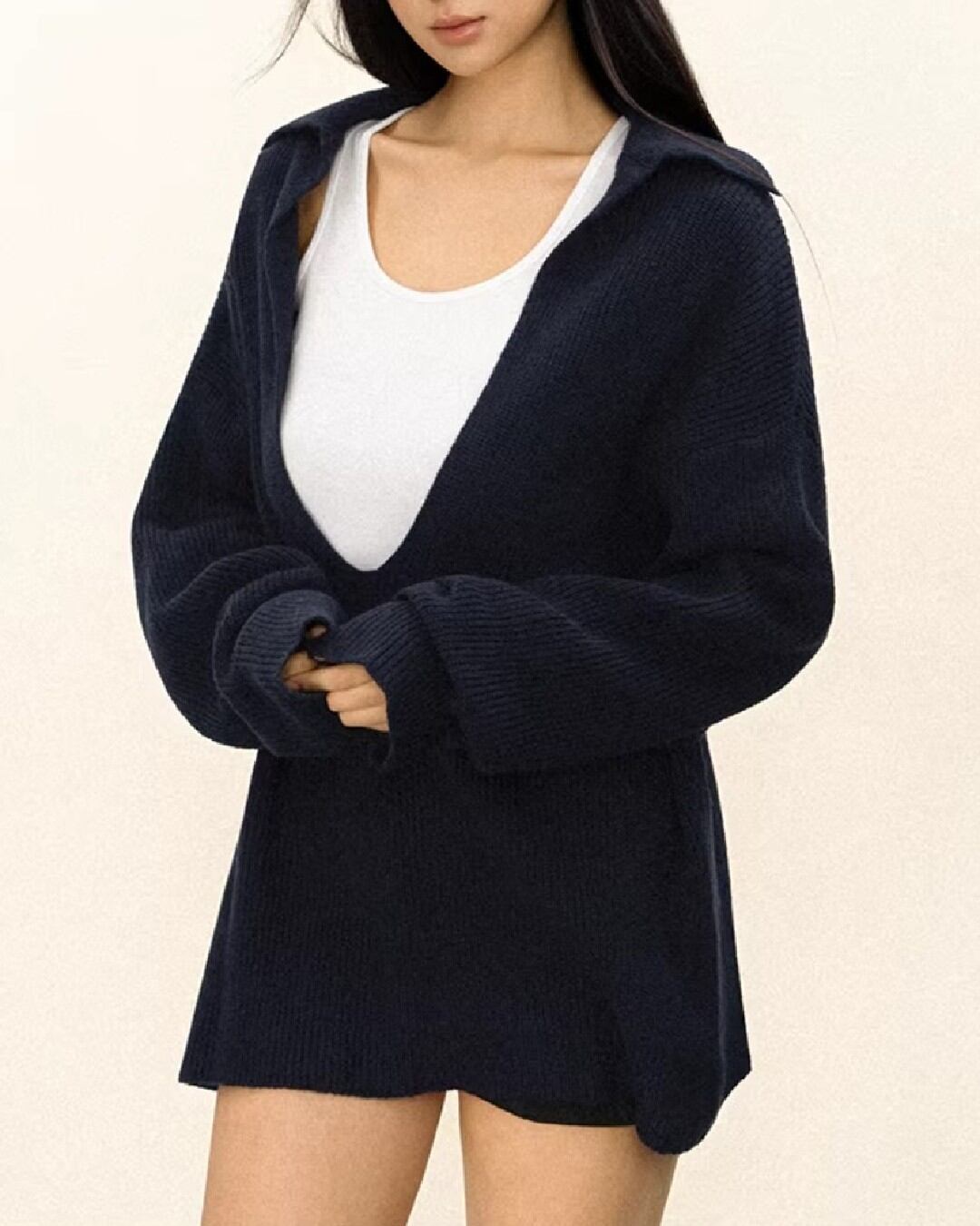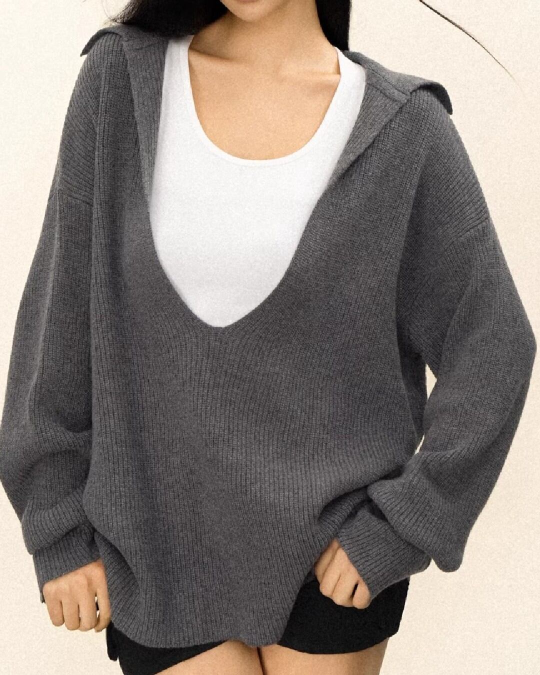 ドロップショルダーと長袖のデザインが抜け感を演出し、リラックスした印象を与えます。