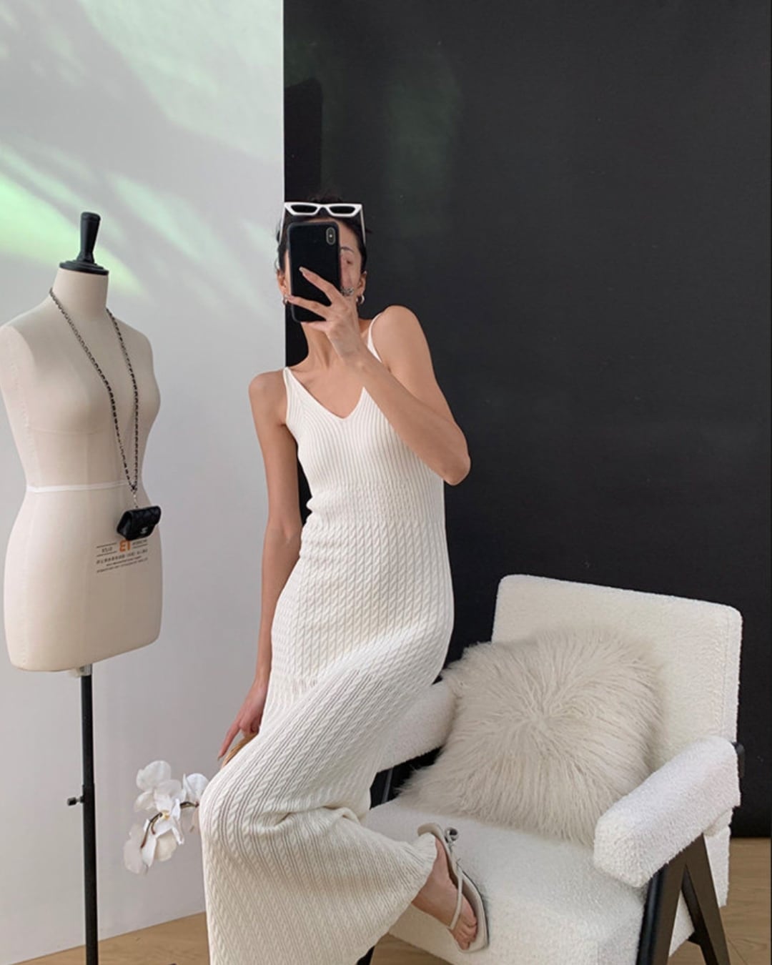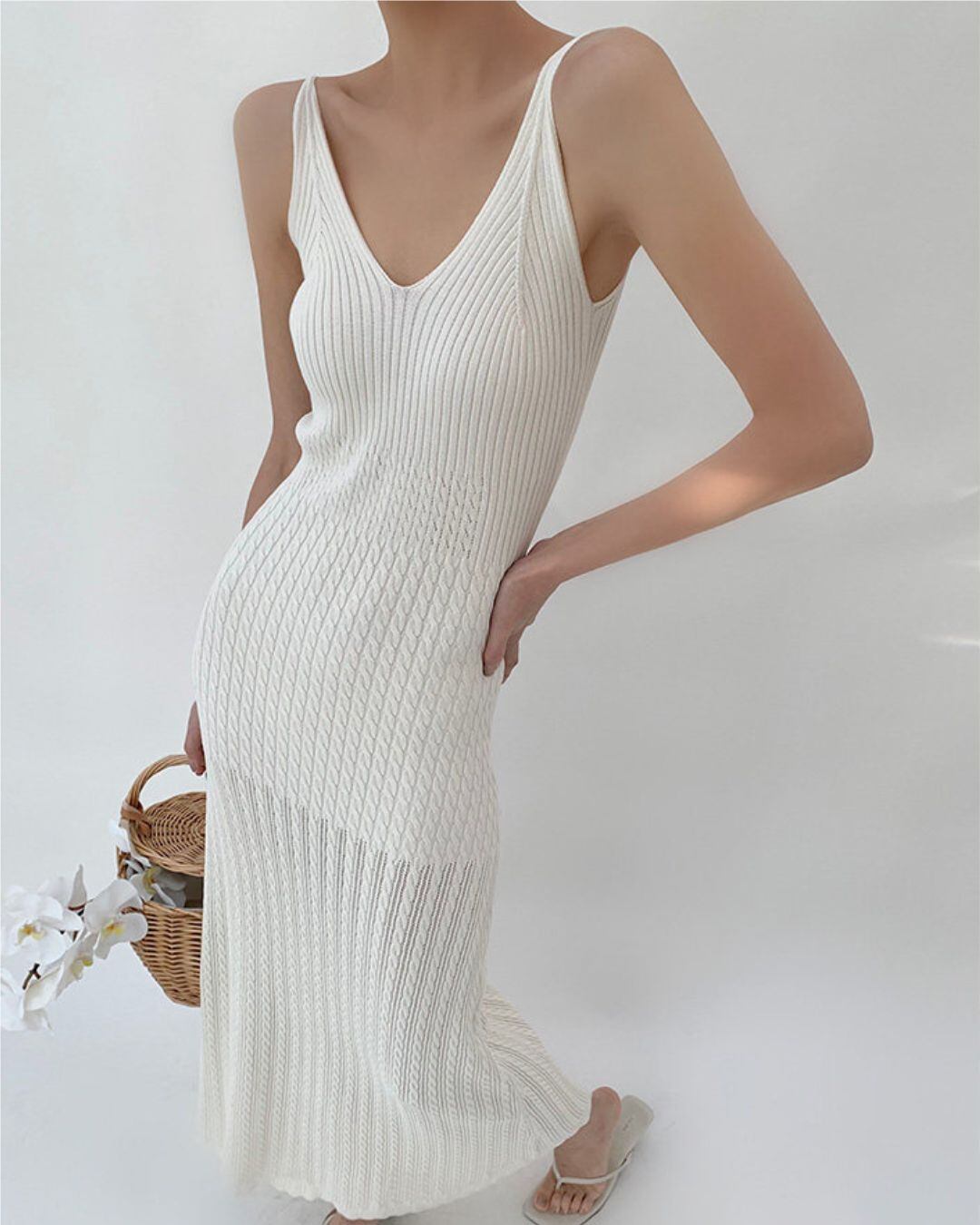 ノースリーブなので、カーディガンやジャケットを羽織って、様々な着こなしを楽しめます。