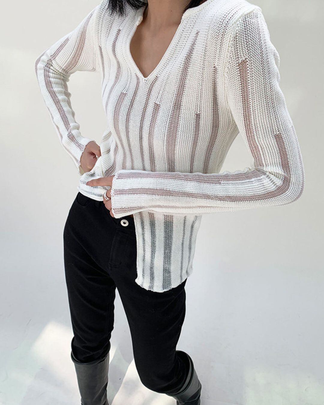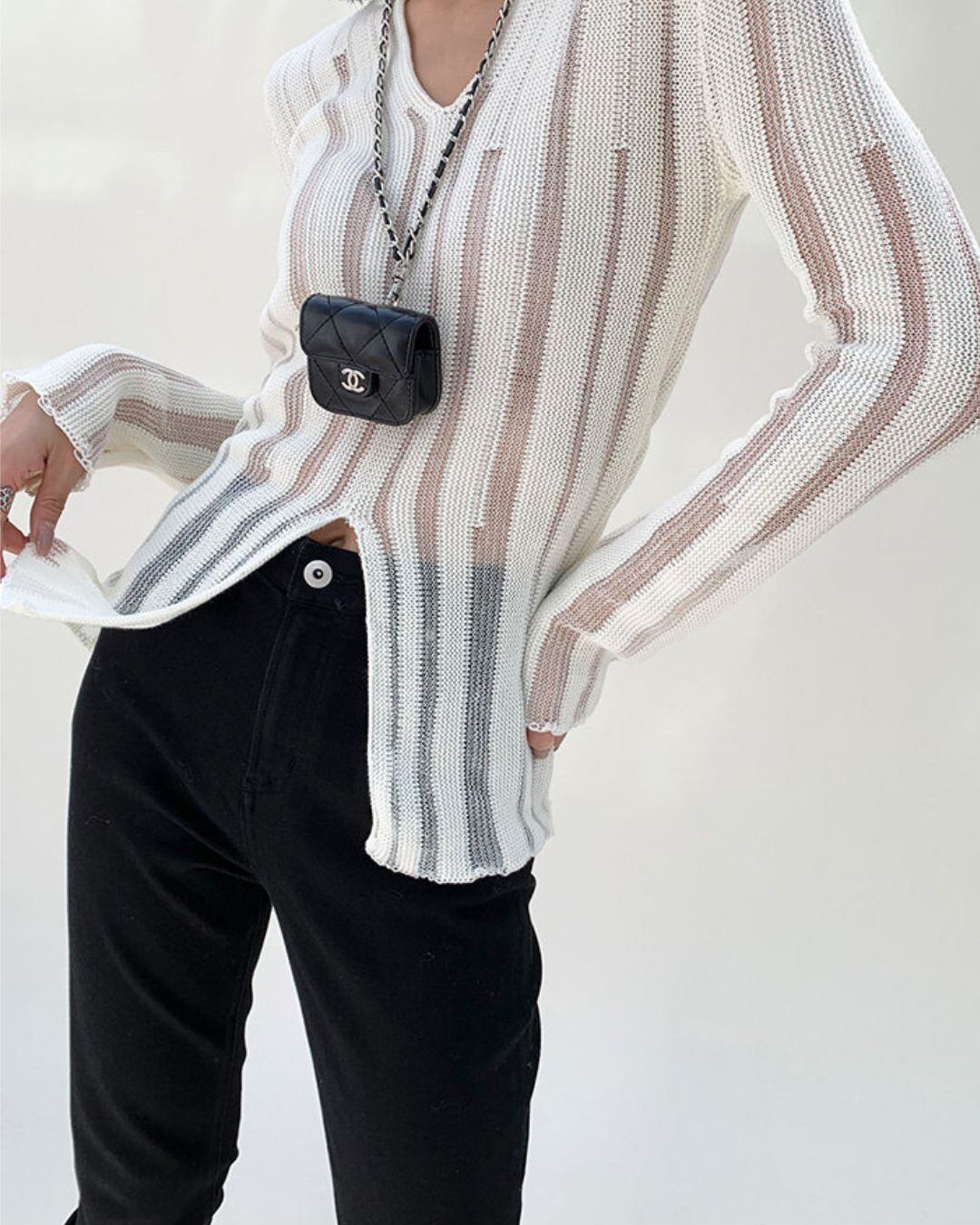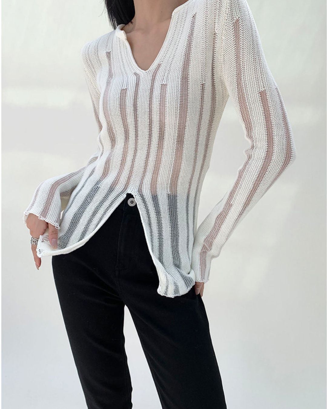 透かし編みが特徴的なニットトップスです。