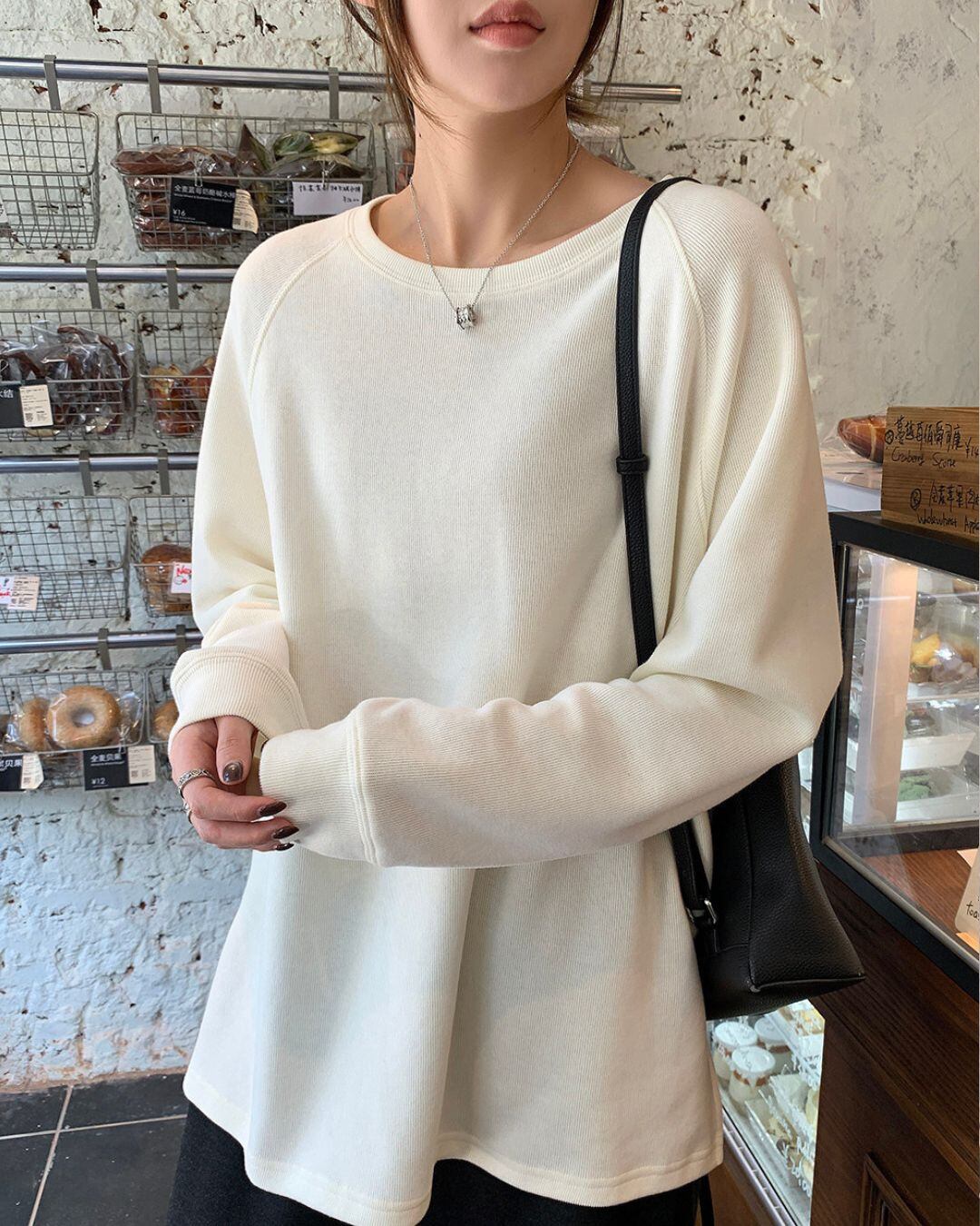シンプルなデザインで着回し力抜群の長袖カットソーです。ヒップが隠れる丈感で体型カバーも期待できます。ラウンドネックが女性らしい柔らかな雰囲気を演出し、カジュアルながらも上品な印象を与えます。デイリーユースに最適な一枚です。