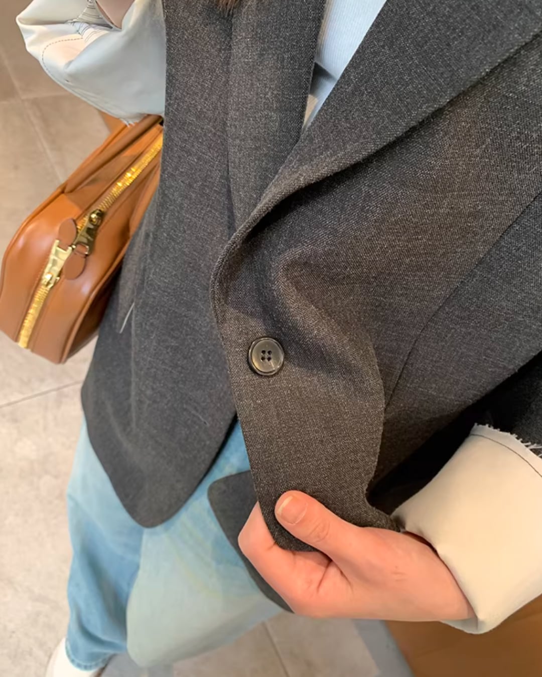 袖口の切っぱなしデザインが特徴的なジャケットです。
