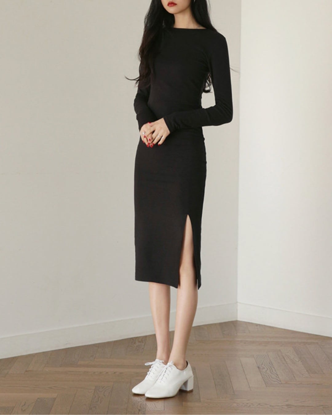 スリット入りで抜け感をプラスし、大人の女性らしさを演出します。