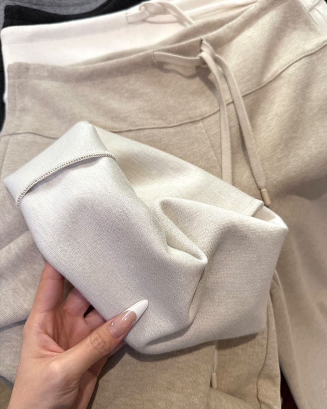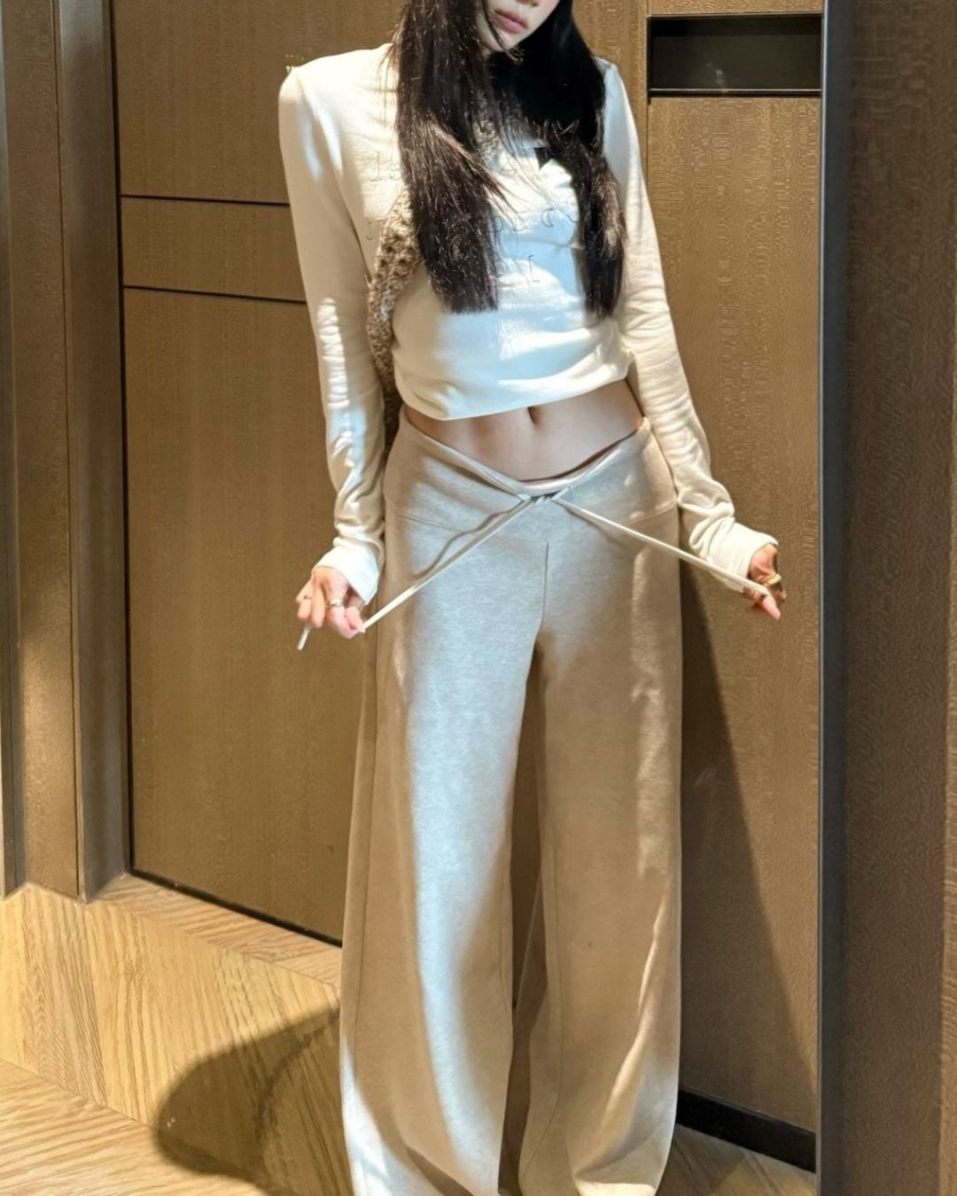 ウエストは紐付きのゴム仕様で、どんな体型でもリラックスして調整可能です。