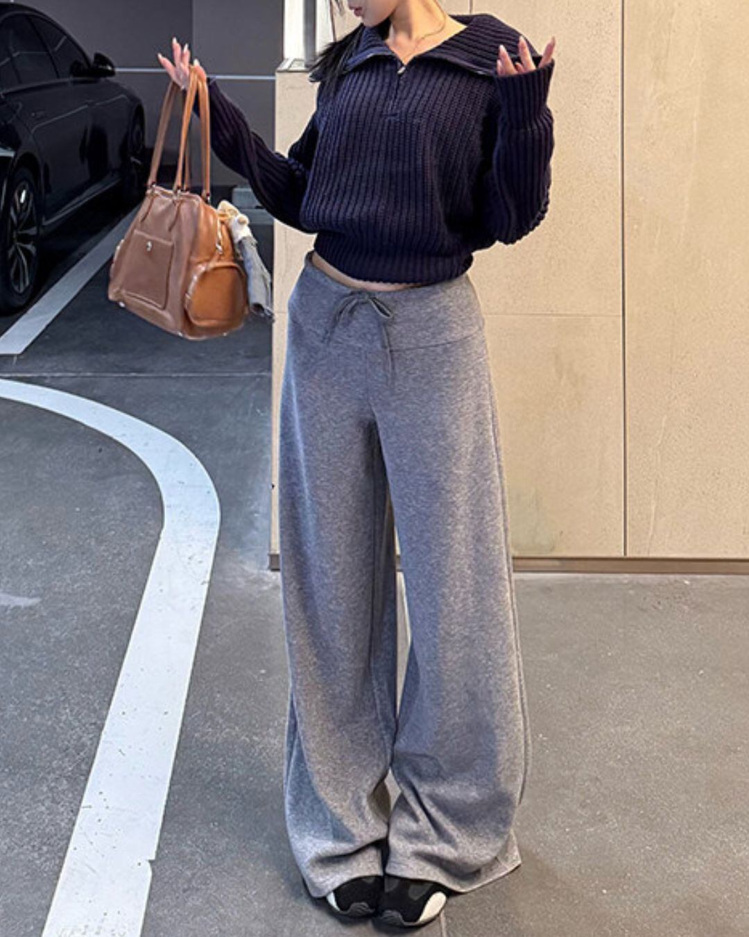 リラックス感漂う、フルレングスのワイドレッグパンツ。