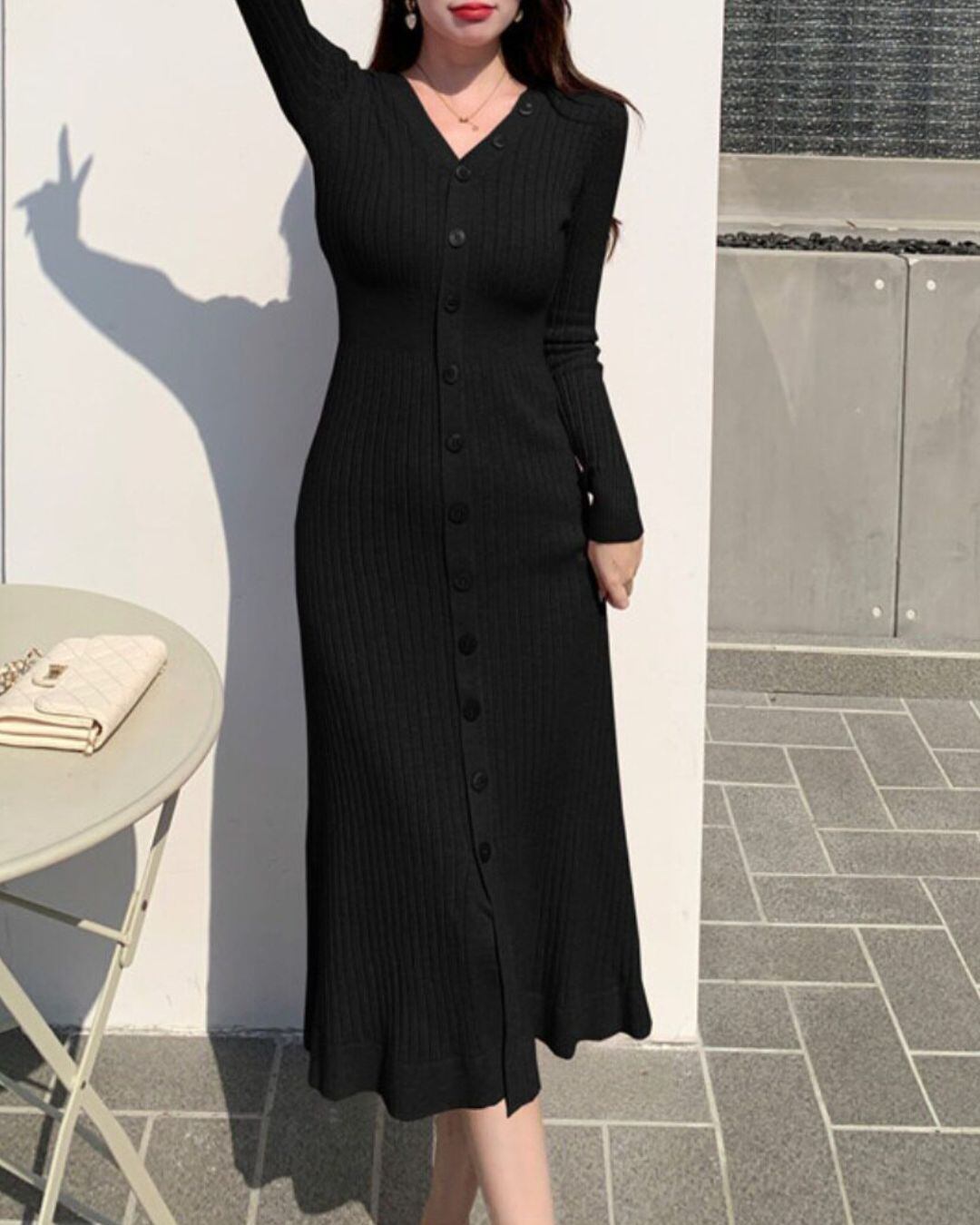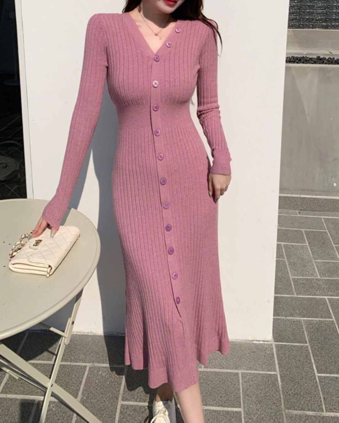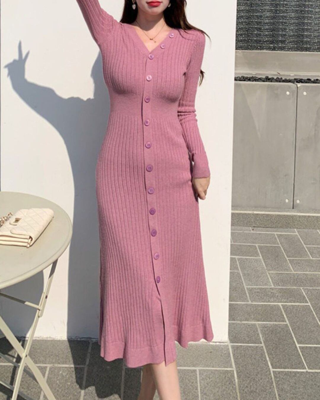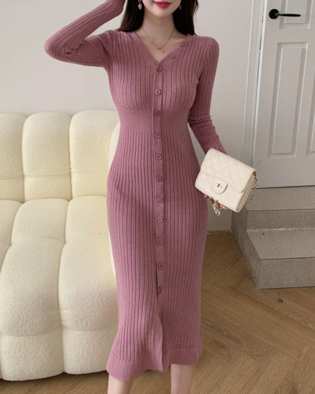 ボタンがアクセントになった、上品なニットワンピースです。縦のラインを強調するデザインで、スタイルアップ効果も期待できます。一枚で着るのはもちろん、アウターを羽織ってもすっきりと着こなせるので、普段使いからちょっとしたお出かけにも活躍します。