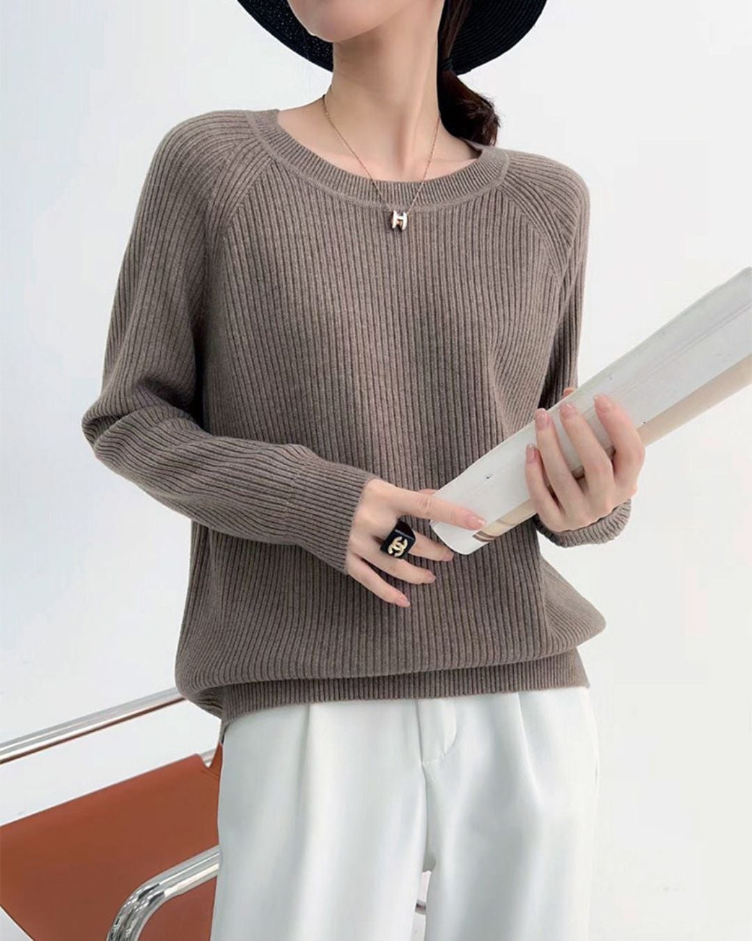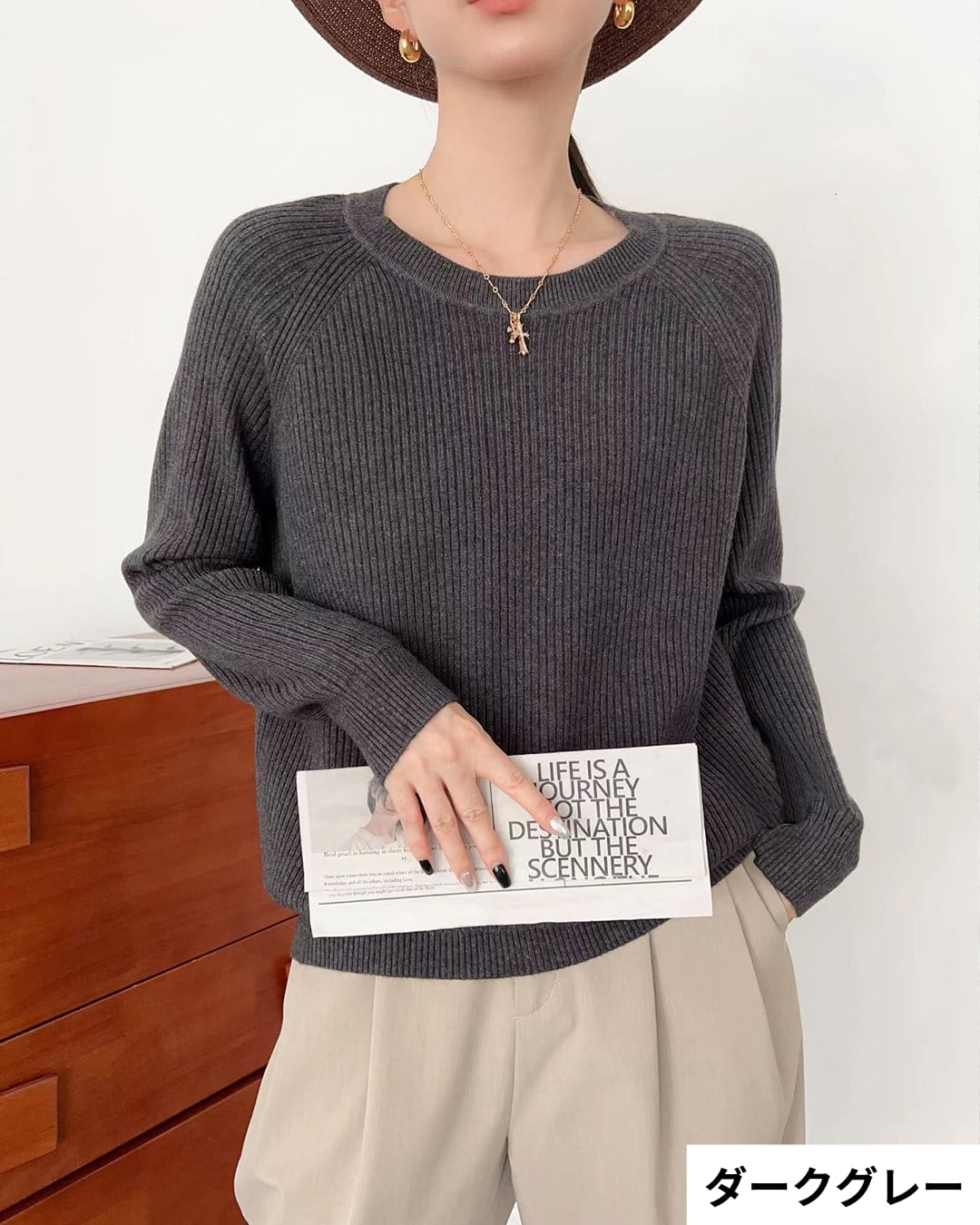 シンプルなデザインで着回し力抜群のニットプルオーバー。