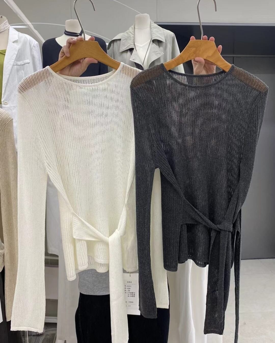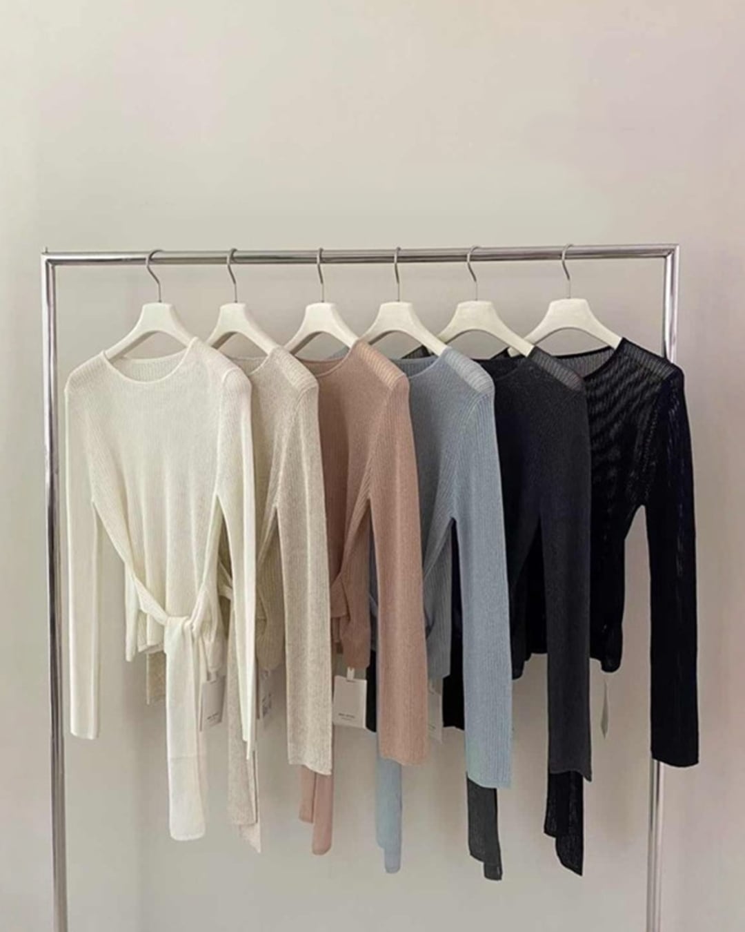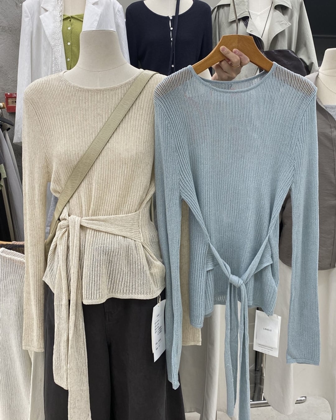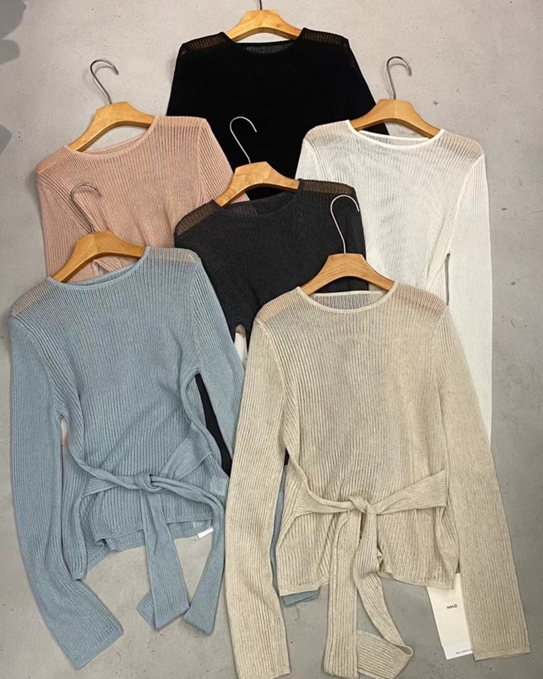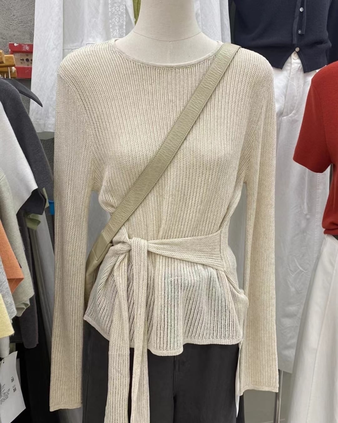 ウエストリボンデザインがアクセントのニットトップスです。