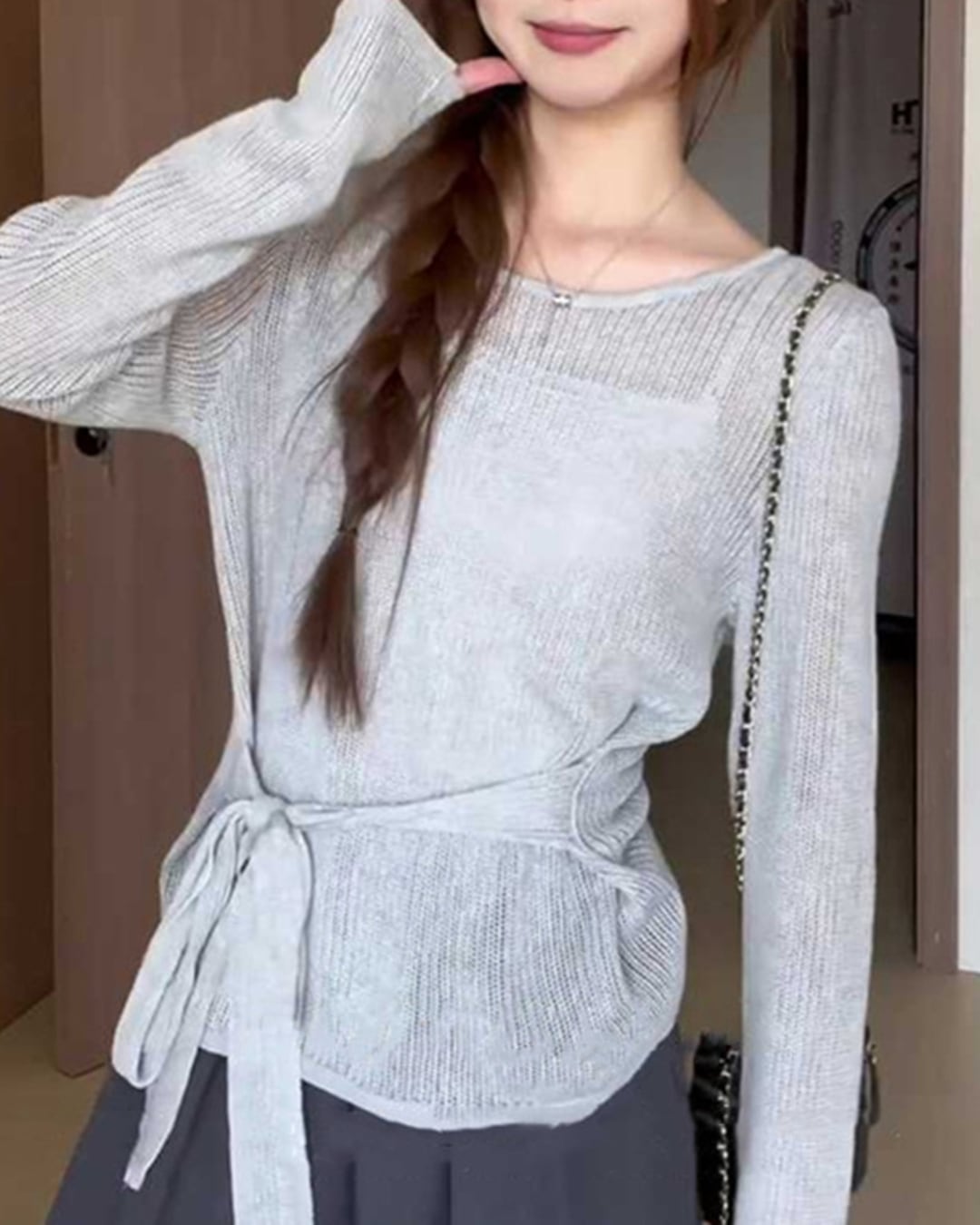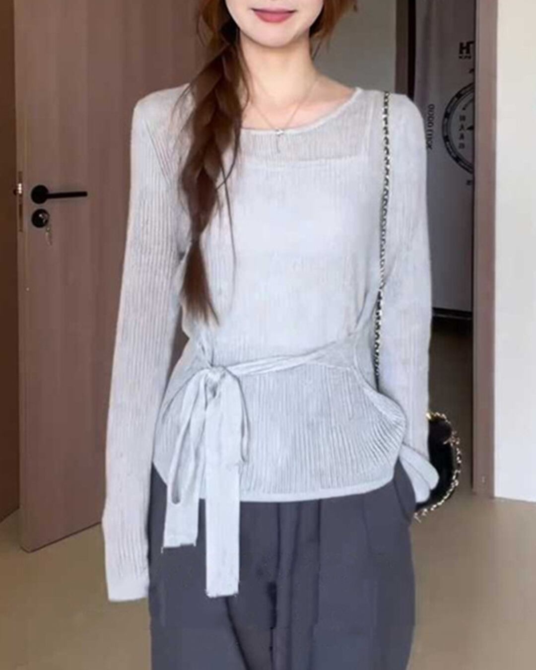 ウエストをマークすることで、メリハリのあるシルエットを作り出し、スタイルアップ効果も期待できます。